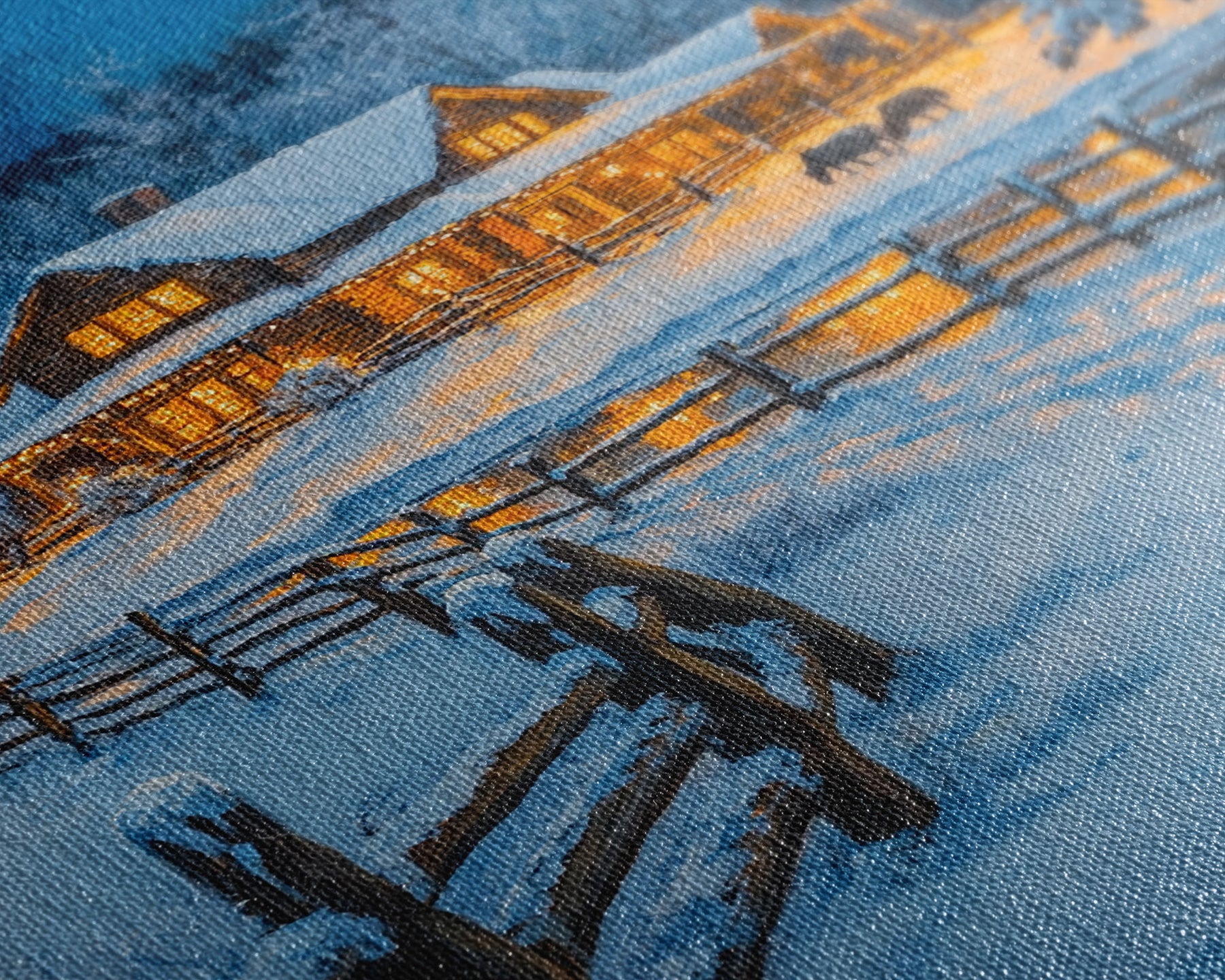 Most of our canvases are made in the USA, with the exception of canvases ordered with the light oak unstained frames, and any large canvases (24x48, 30x60, 16x48 and 20x60) ordered WITH a frame. These are temporarily made in and shipped from Europe, while we try to find a more consistent supplier in the USA.