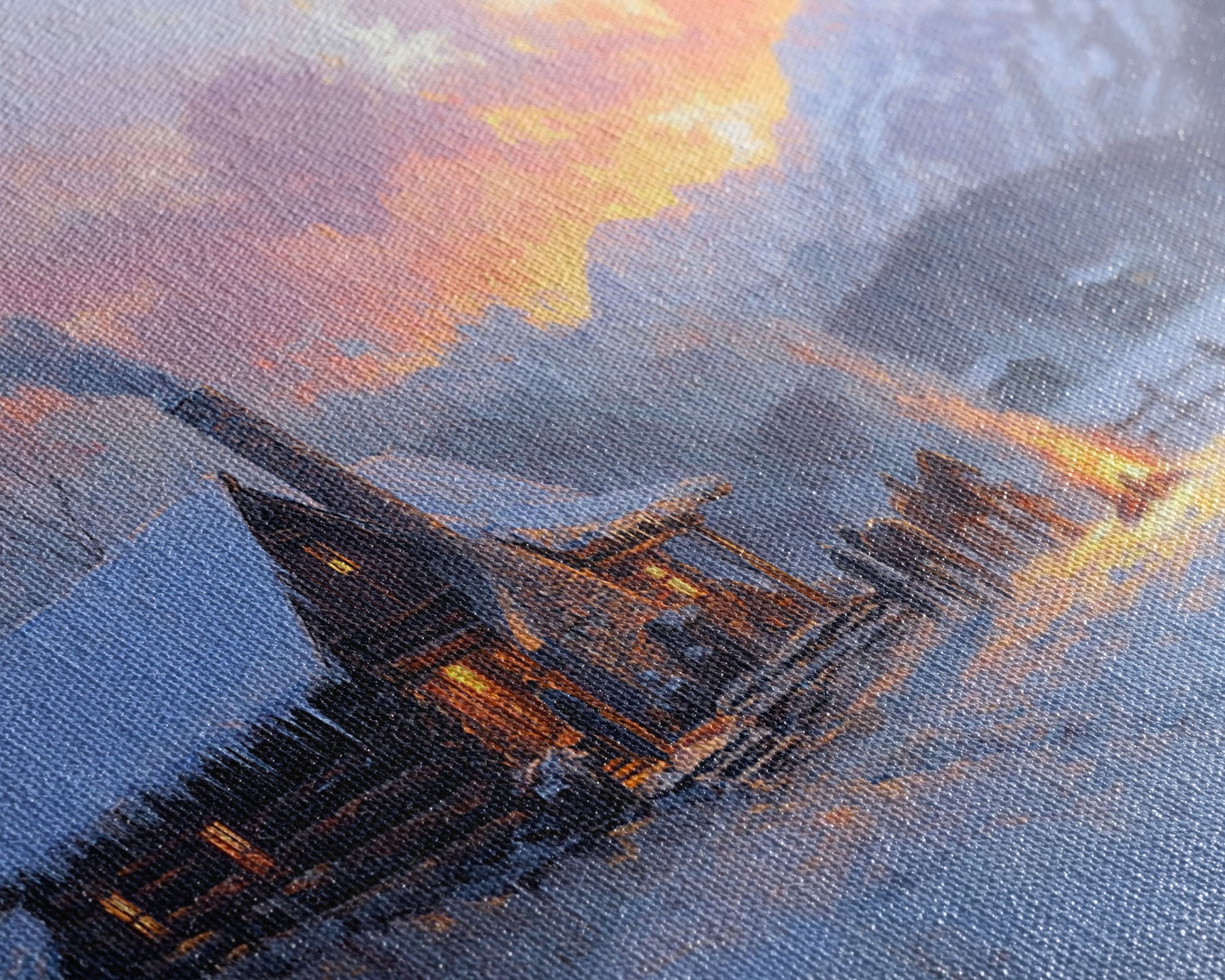 Most of our canvases are made in the USA, with the exception of canvases ordered with the light oak unstained frames, and any large canvases (24x48, 30x60, 16x48 and 20x60) ordered WITH a frame. These are temporarily made in and shipped from Europe, while we try to find a more consistent supplier in the USA.