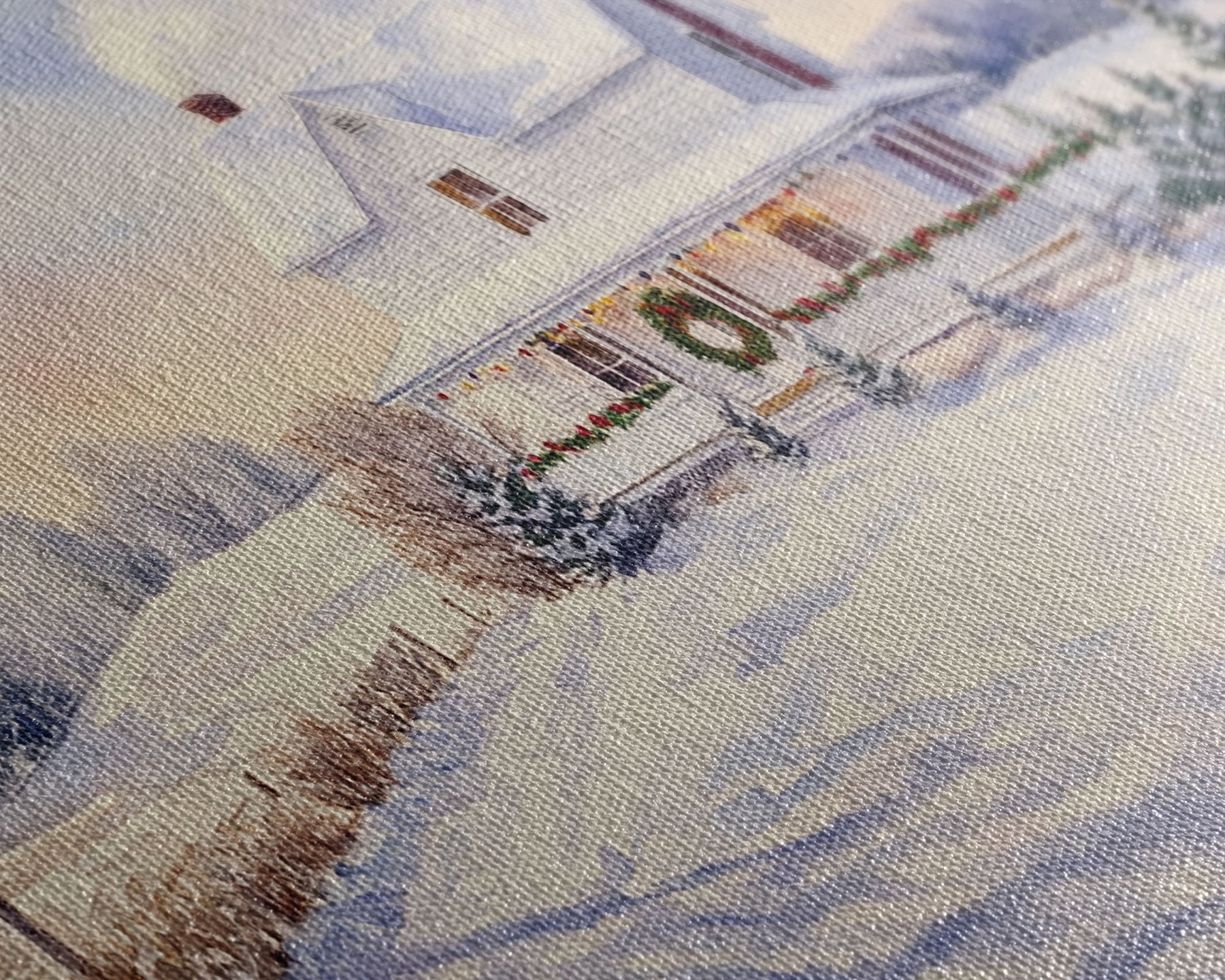 Farmhouse Christmas decor Framed Canvas Print snowy white farmhouse with wreath winter wonderland holiday decor best gift Christmas wall art