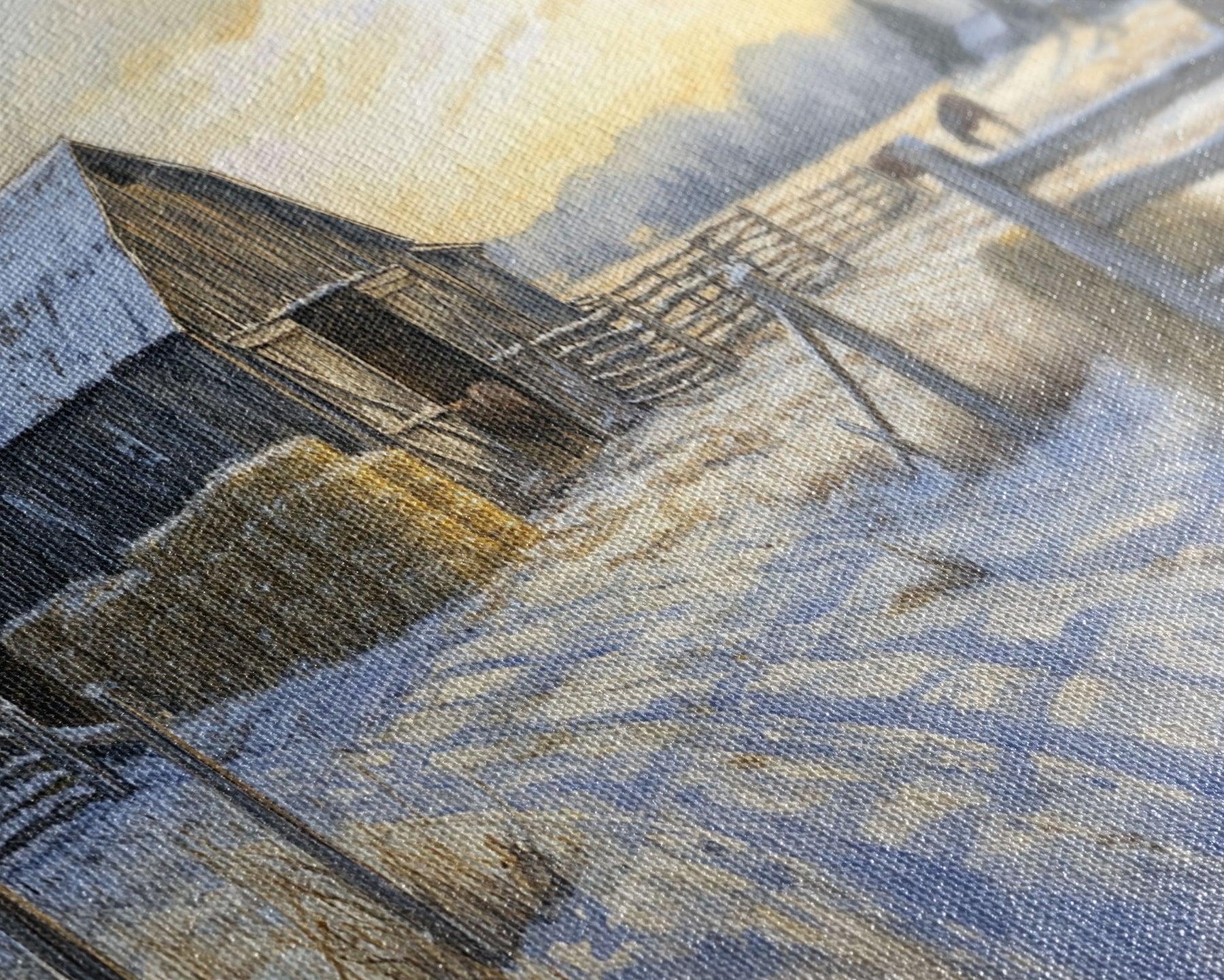 Most of our canvases are made in the USA, with the exception of canvases ordered with the light oak unstained frames, and any large canvases (24x48, 30x60, 16x48 and 20x60) ordered WITH a frame. These are temporarily made in and shipped from Europe, while we try to find a more consistent supplier in the USA.