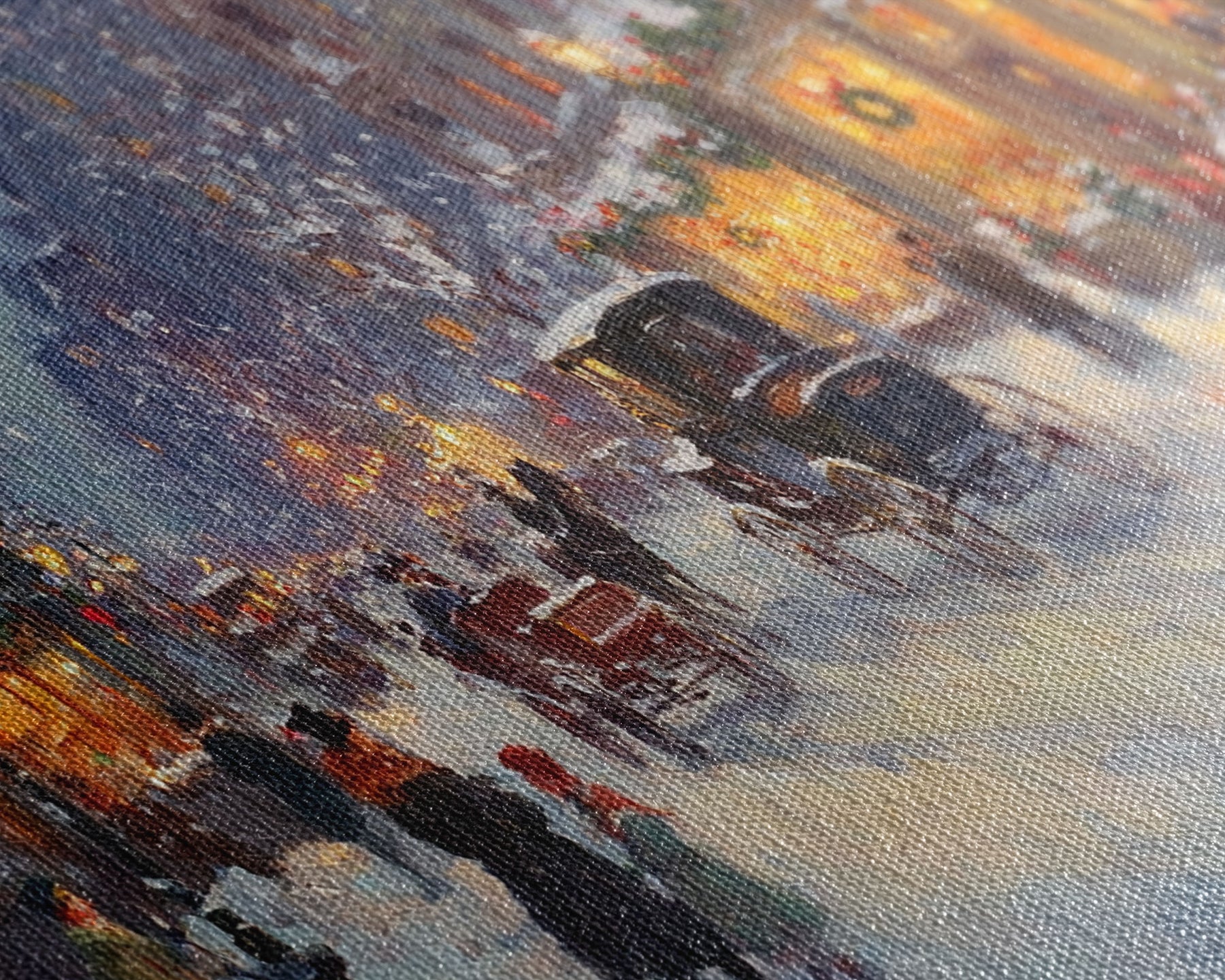 Most of our canvases are made in the USA, with the exception of canvases ordered with the light oak unstained frames, and any large canvases (24x48, 30x60, 16x48 and 20x60) ordered WITH a frame. These are temporarily made in and shipped from Europe, while we try to find a more consistent supplier in the USA.