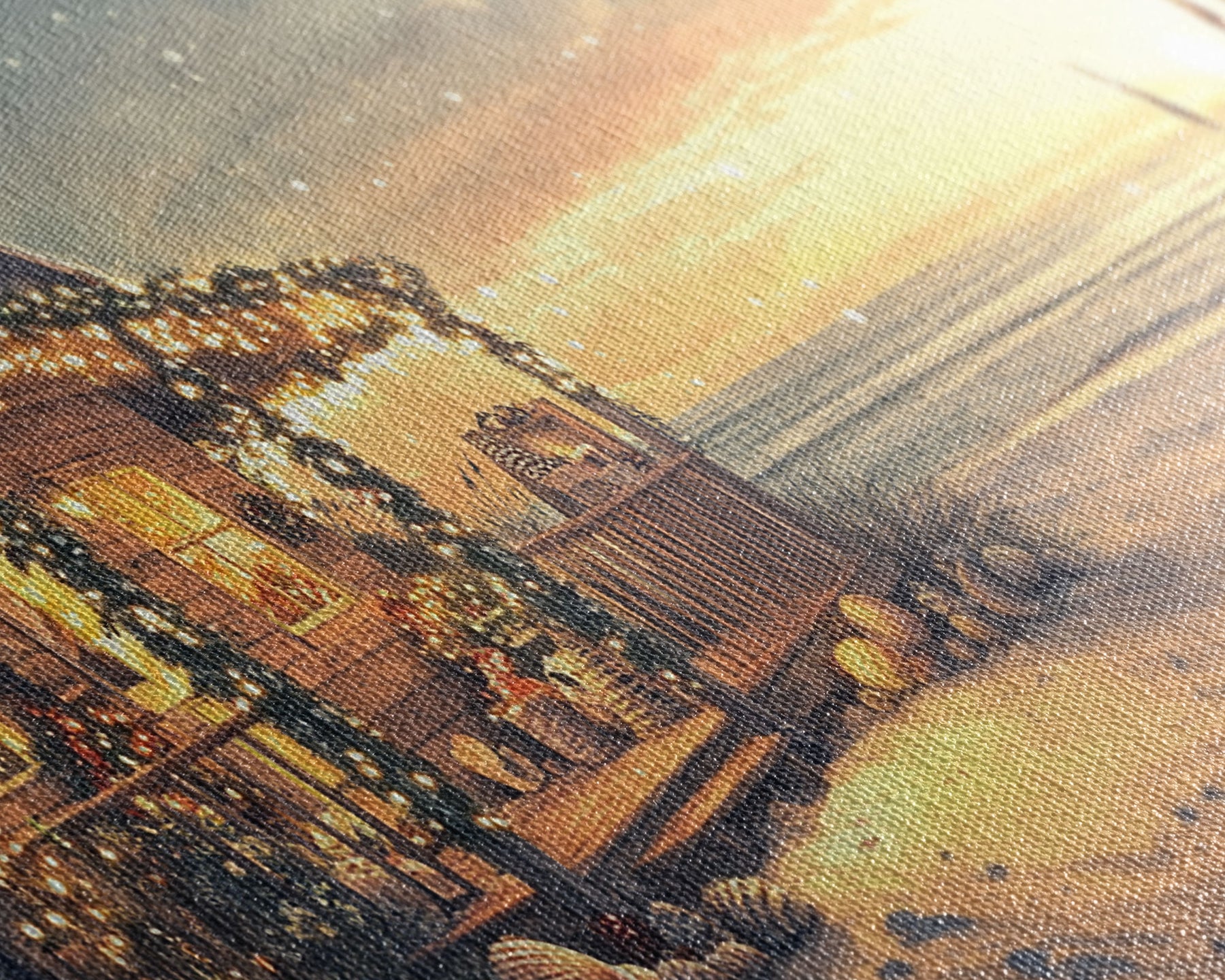Most of our canvases are made in the USA, with the exception of canvases ordered with the light oak unstained frames, and any large canvases (24x48, 30x60, 16x48 and 20x60) ordered WITH a frame. These are temporarily made in and shipped from Europe, while we try to find a more consistent supplier in the USA.