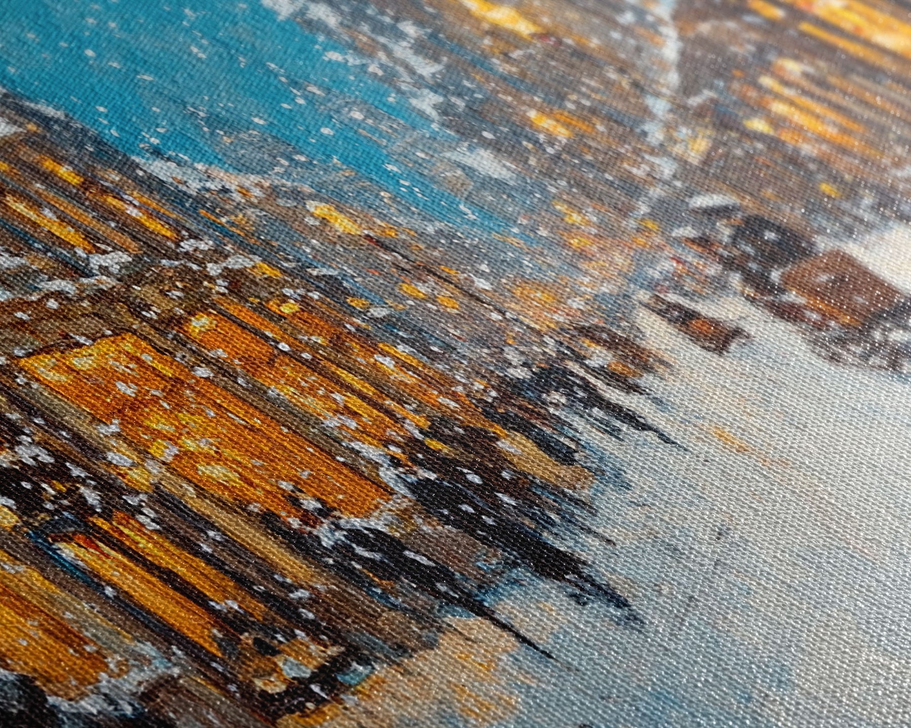 Most of our canvases are made in the USA, with the exception of canvases ordered with the light oak unstained frames, and any large canvases (24x48, 30x60, 16x48 and 20x60) ordered WITH a frame. These are temporarily made in and shipped from Europe, while we try to find a more consistent supplier in the USA.