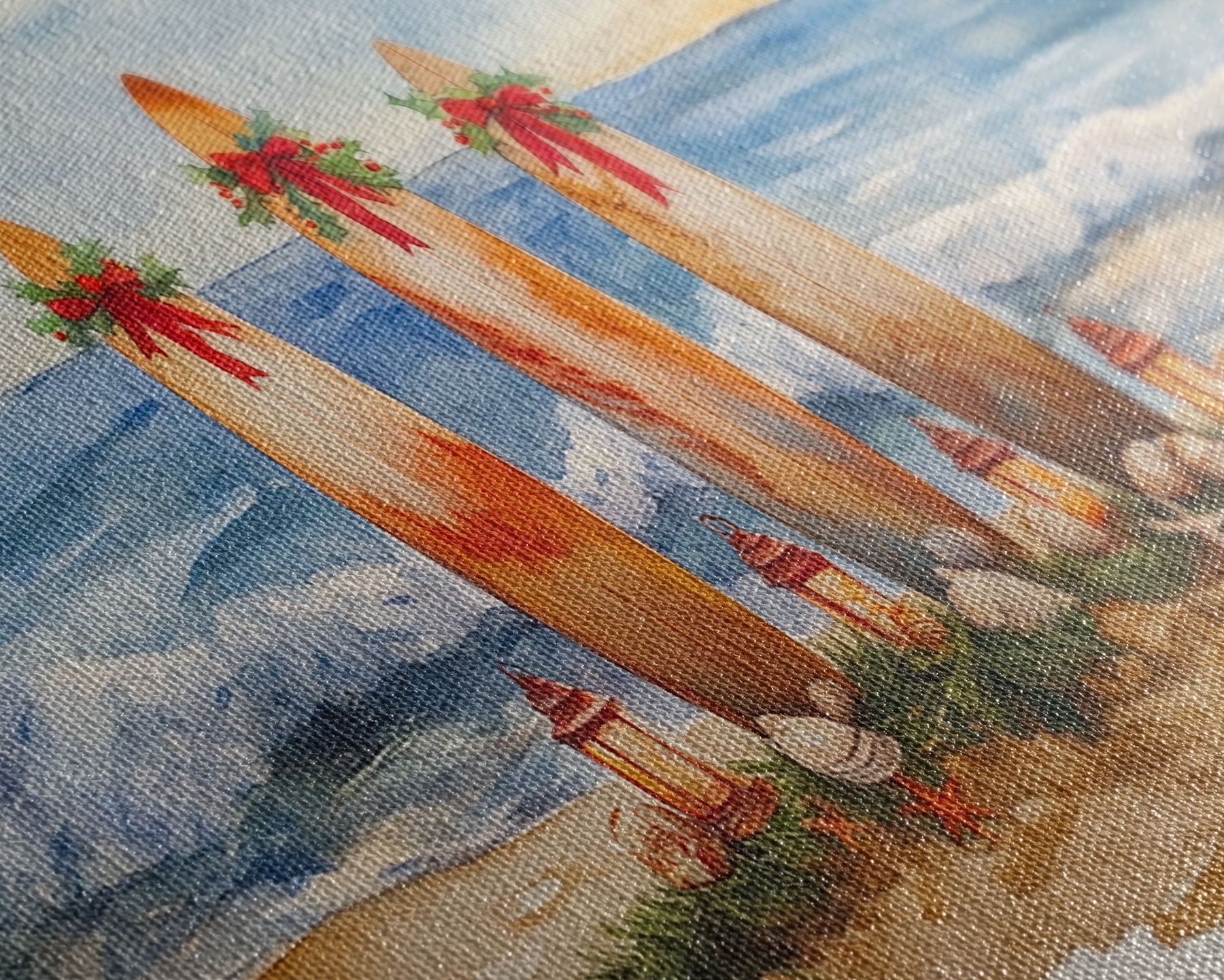 Most of our canvases are made in the USA, with the exception of canvases ordered with the light oak unstained frames, and any large canvases (24x48, 30x60, 16x48 and 20x60) ordered WITH a frame. These are temporarily made in and shipped from Europe, while we try to find a more consistent supplier in the USA.
