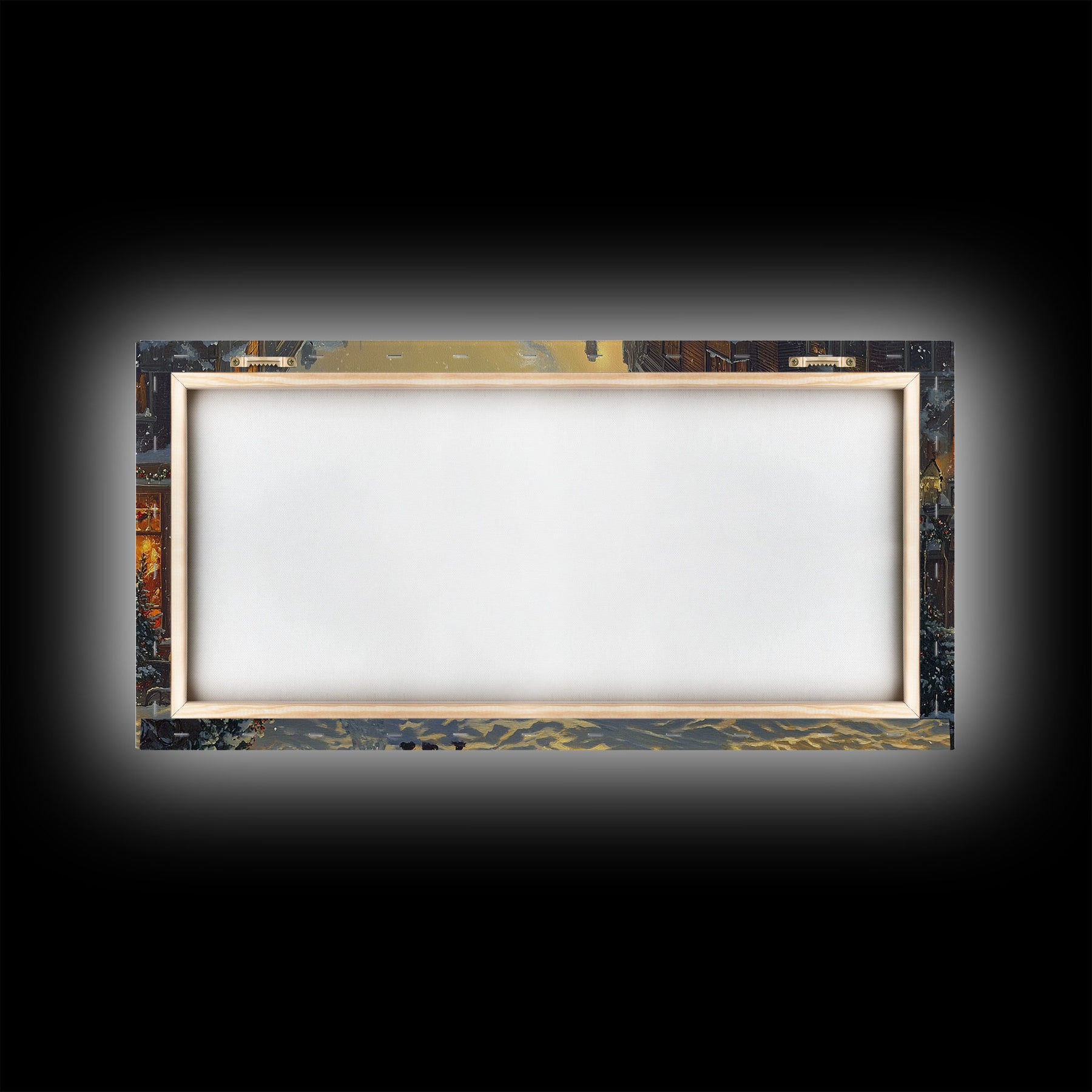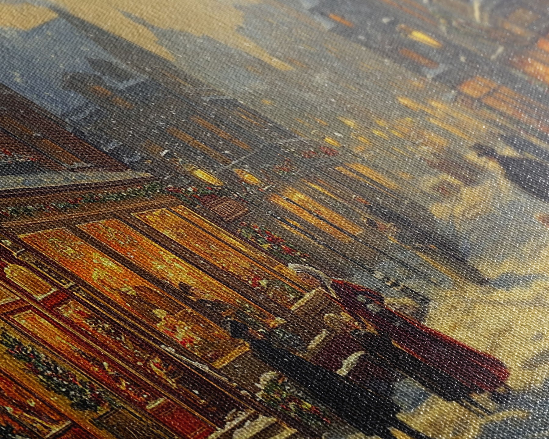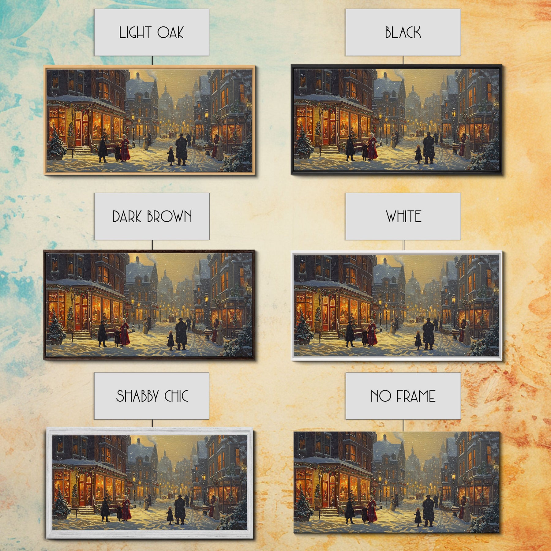Victorian Christmas Street Scene With Families Shopping, Cozy Winter Wonderland Wall Art, Framed Canvas Print, Vintage Christmas Decor