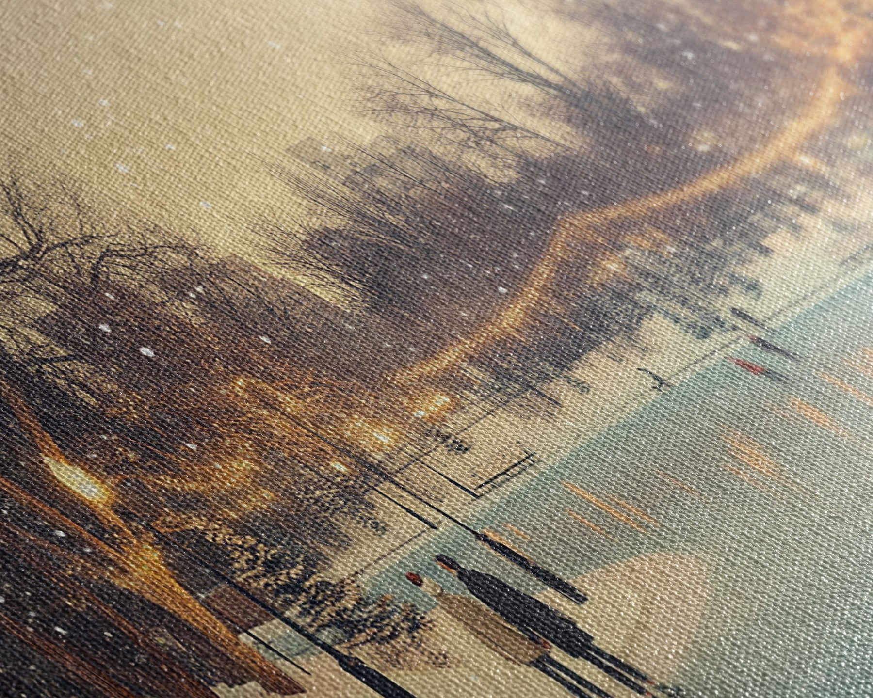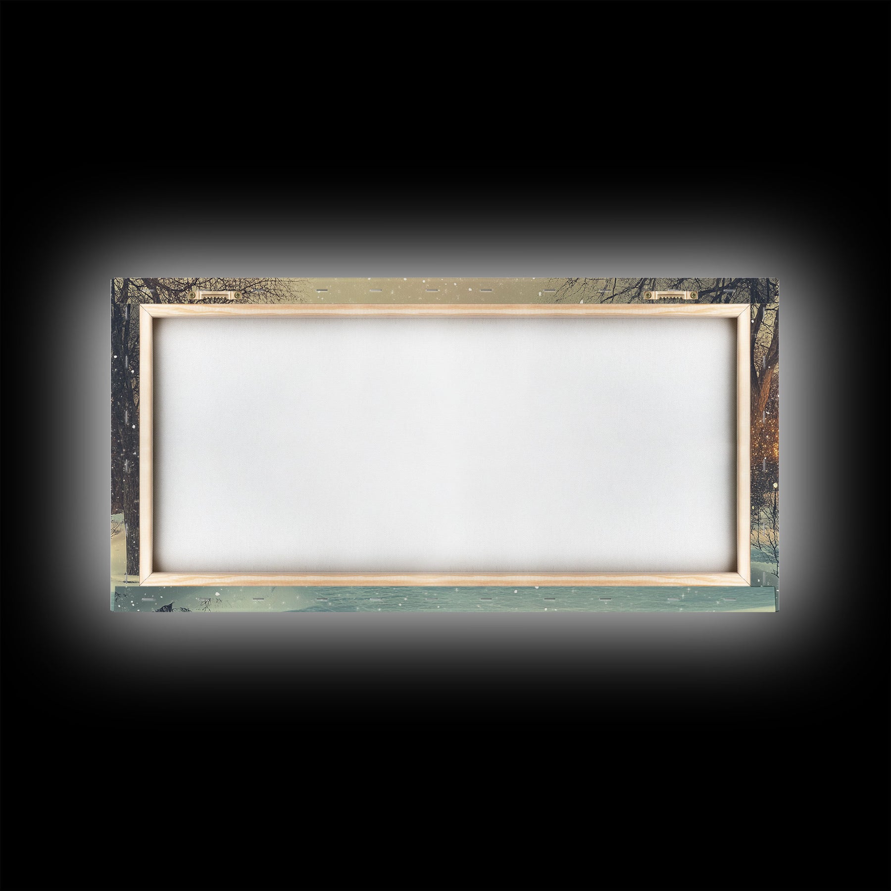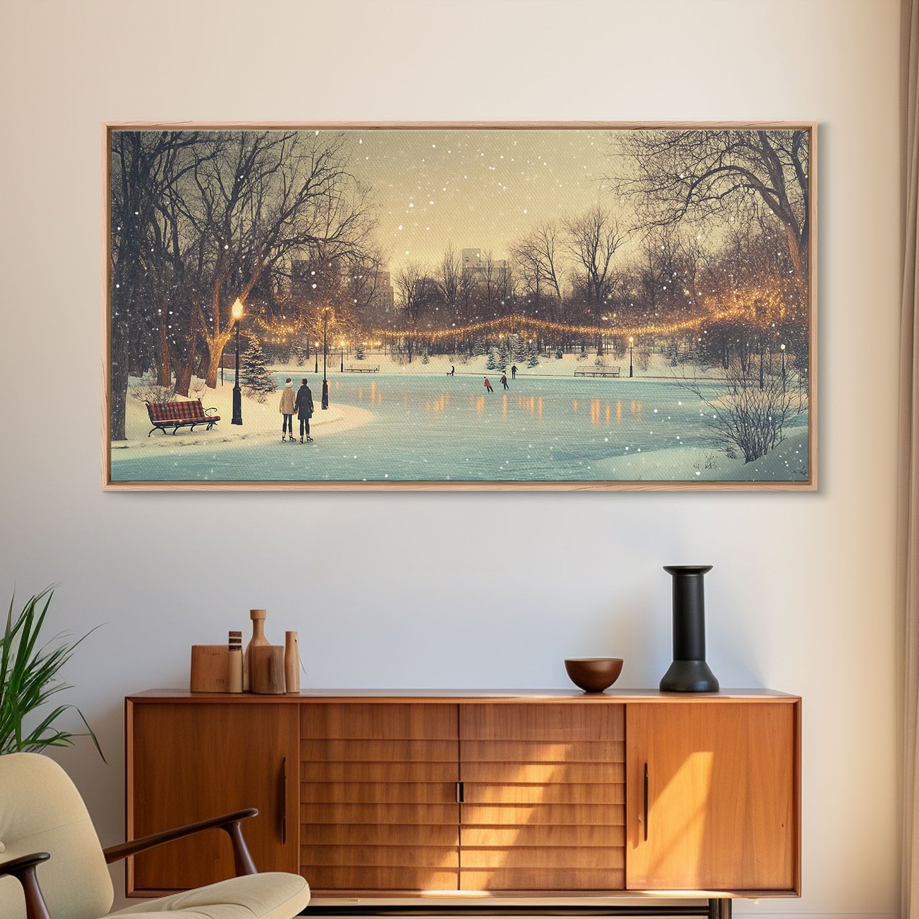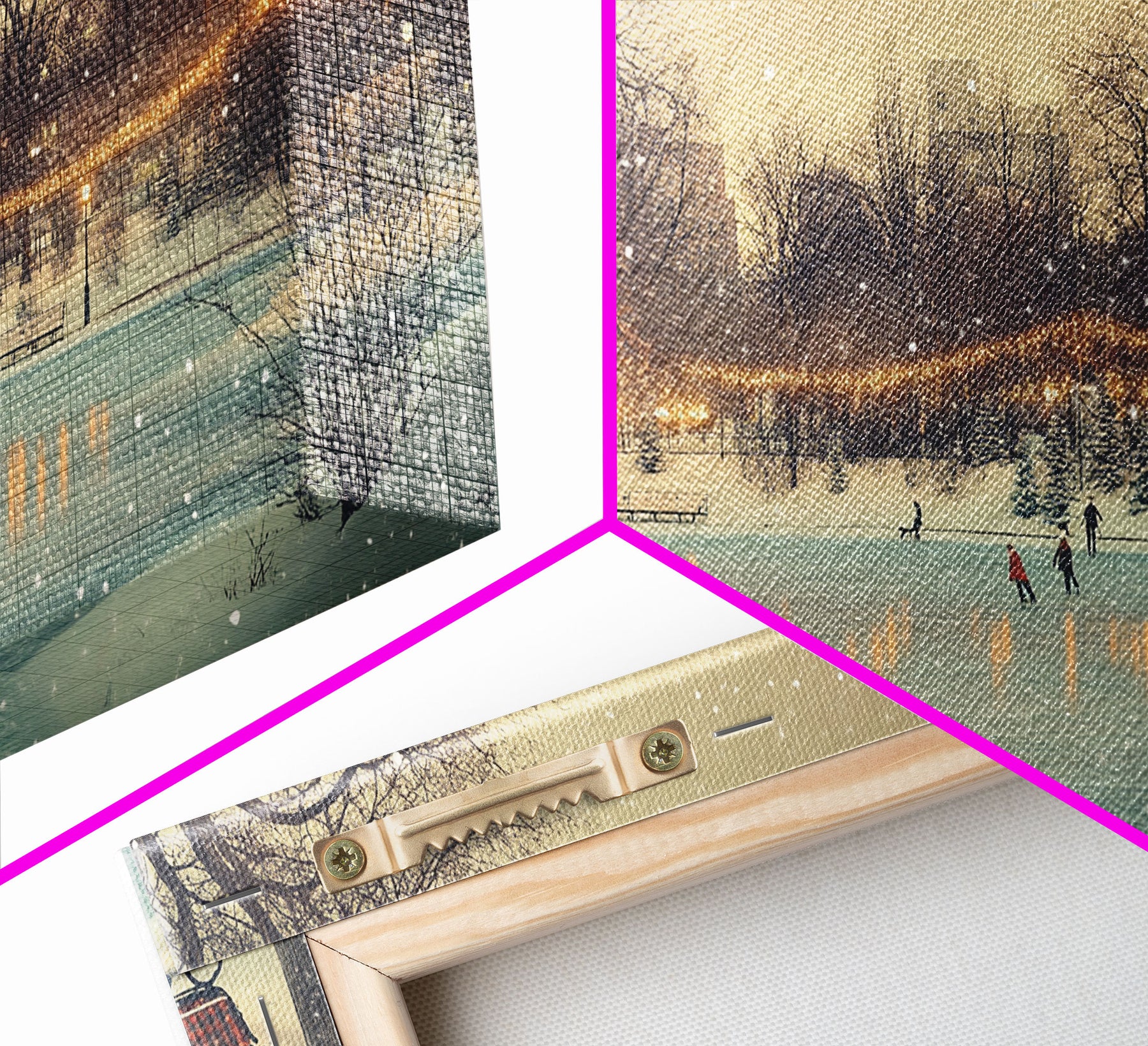 Snowy Ice Skating Framed Canvas Print, Winter Wonderland Scene Art, Vintage Christmas Decor, Christmas Vacation Art, Best Holiday Wall Art