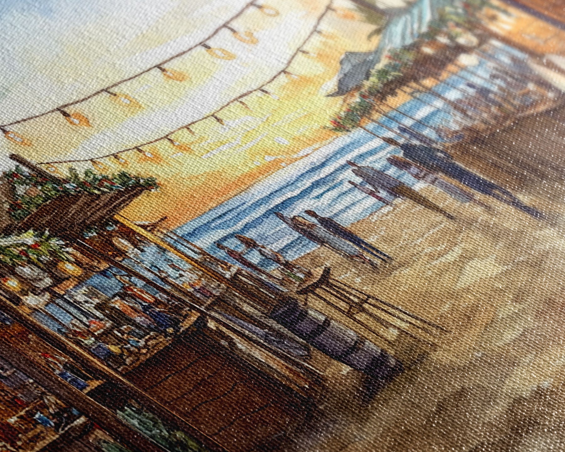Most of our canvases are made in the USA, with the exception of canvases ordered with the light oak unstained frames, and any large canvases (24x48, 30x60, 16x48 and 20x60) ordered WITH a frame. These are temporarily made in and shipped from Europe, while we try to find a more consistent supplier in the USA.