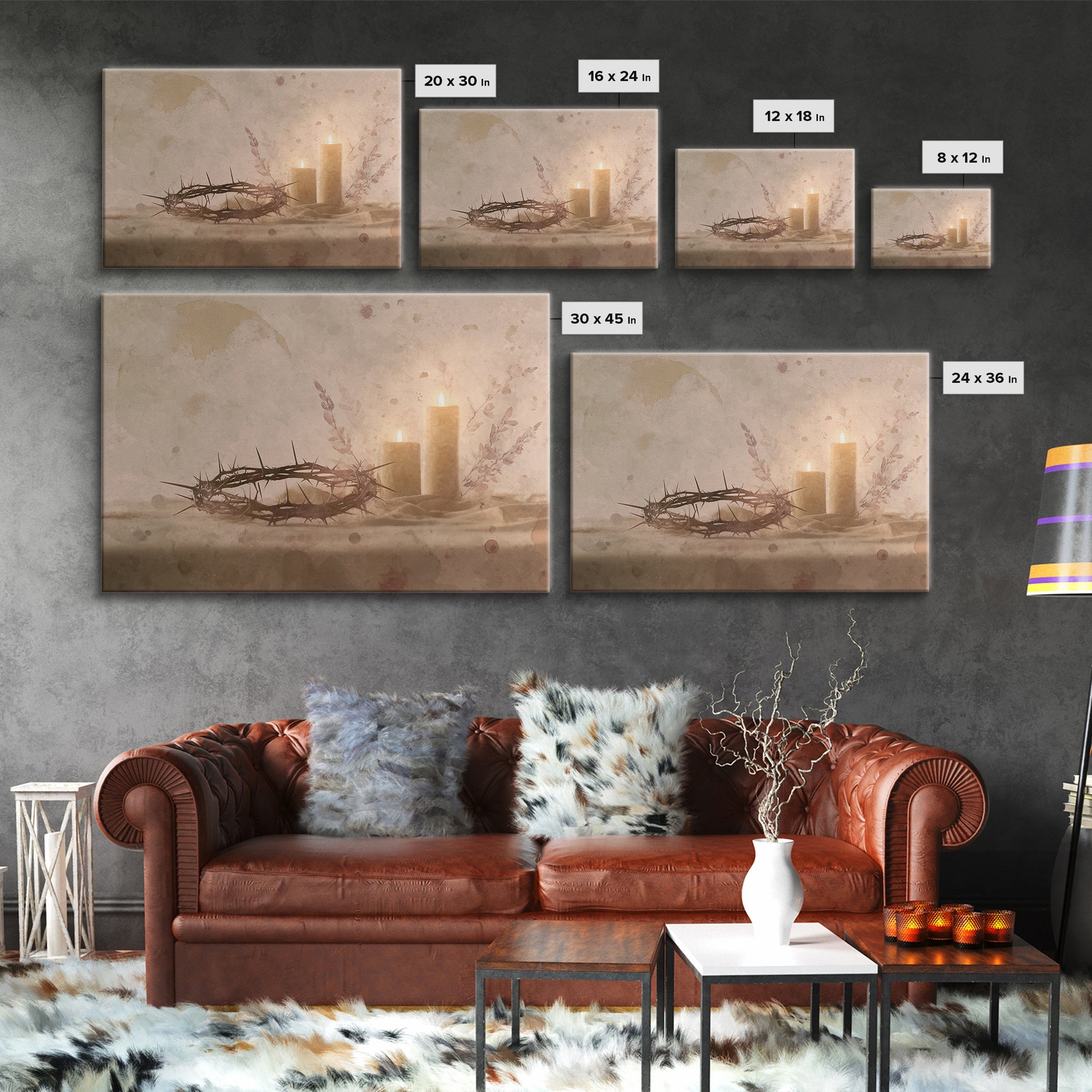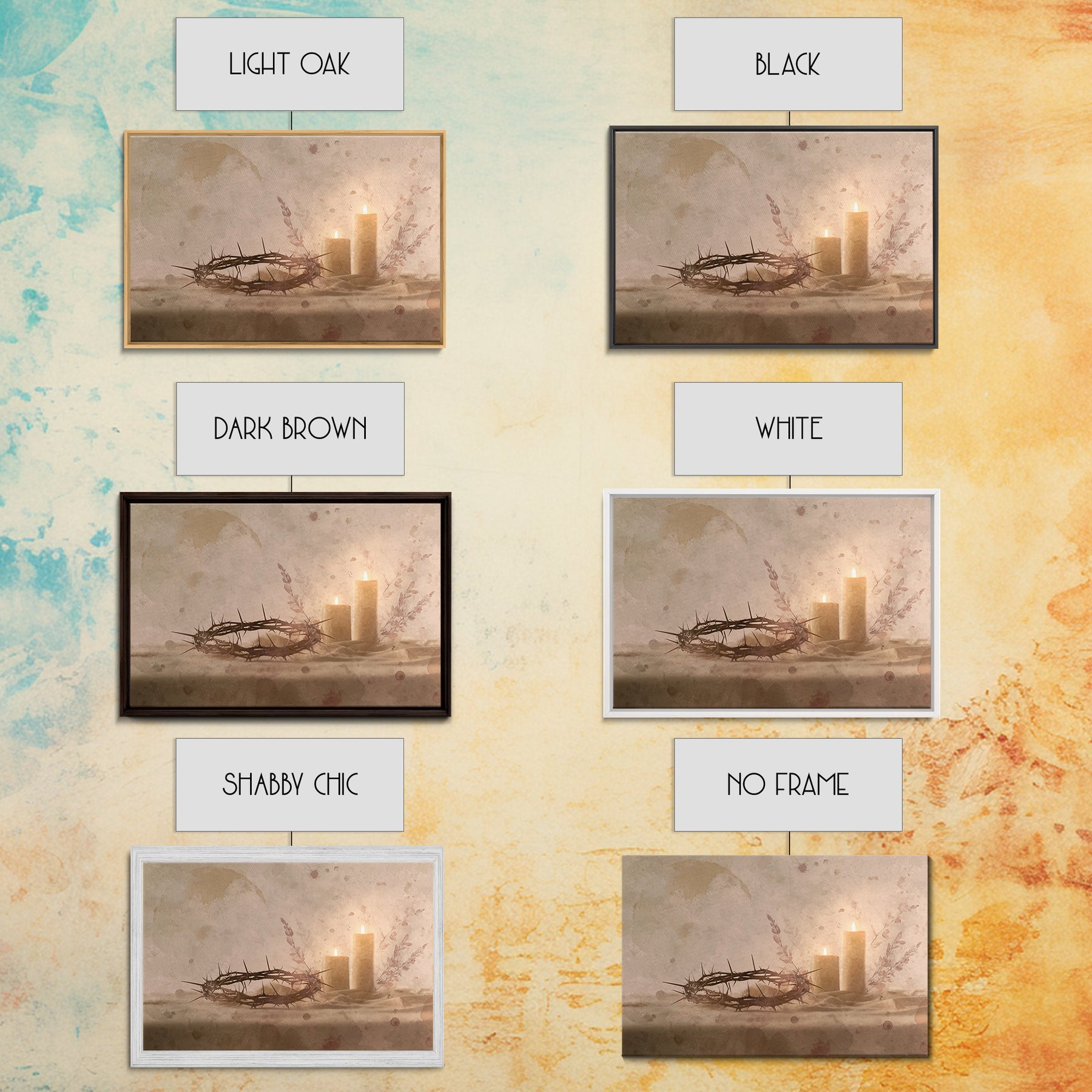 *Optional frames add a total of 1.5 inches to each dimension. For example, a 10x20 canvas with a frame will measure 11.5 x 21.5 inches overall. All framed canvases feature a bold, gallery-style 1.5" total depth.