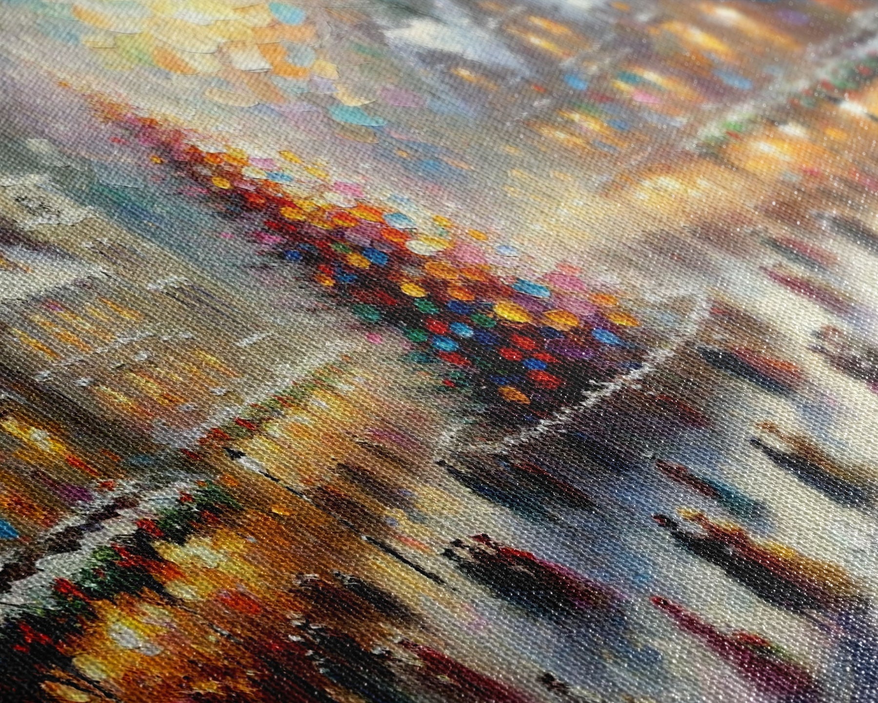 Most of our canvases are made in the USA, with the exception of canvases ordered with the light oak unstained frames, and any large canvases (24x48, 30x60, 16x48 and 20x60) ordered WITH a frame. These are temporarily made in and shipped from Europe, while we try to find a more consistent supplier in the USA.