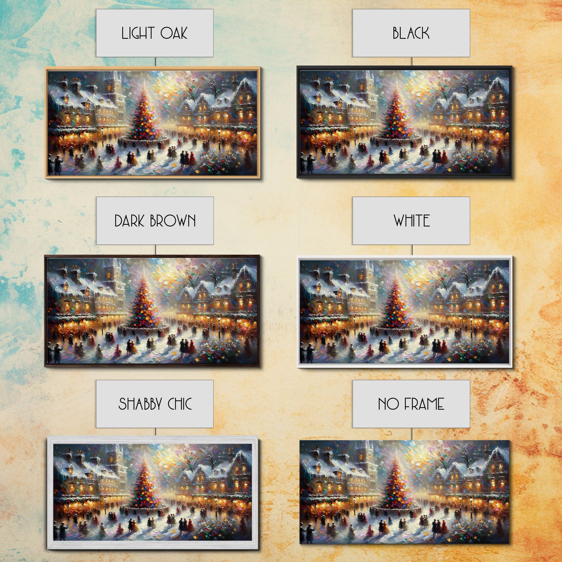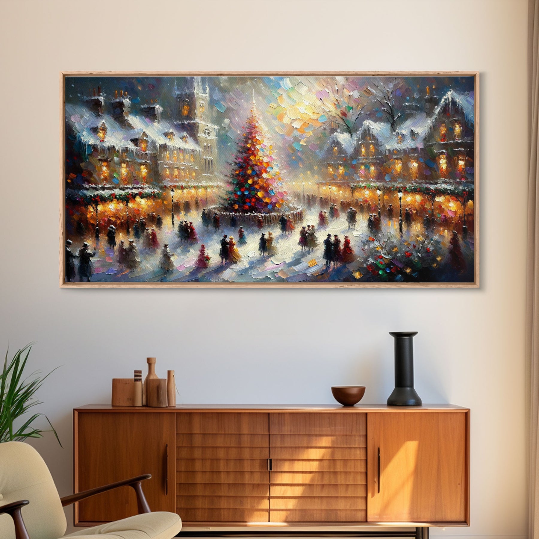 Retro Style Christmas Canvas Print | Framed Canvas Print | Christmas Village | Winter Wonderland | Impasto Style Painting | Seasonal Decor