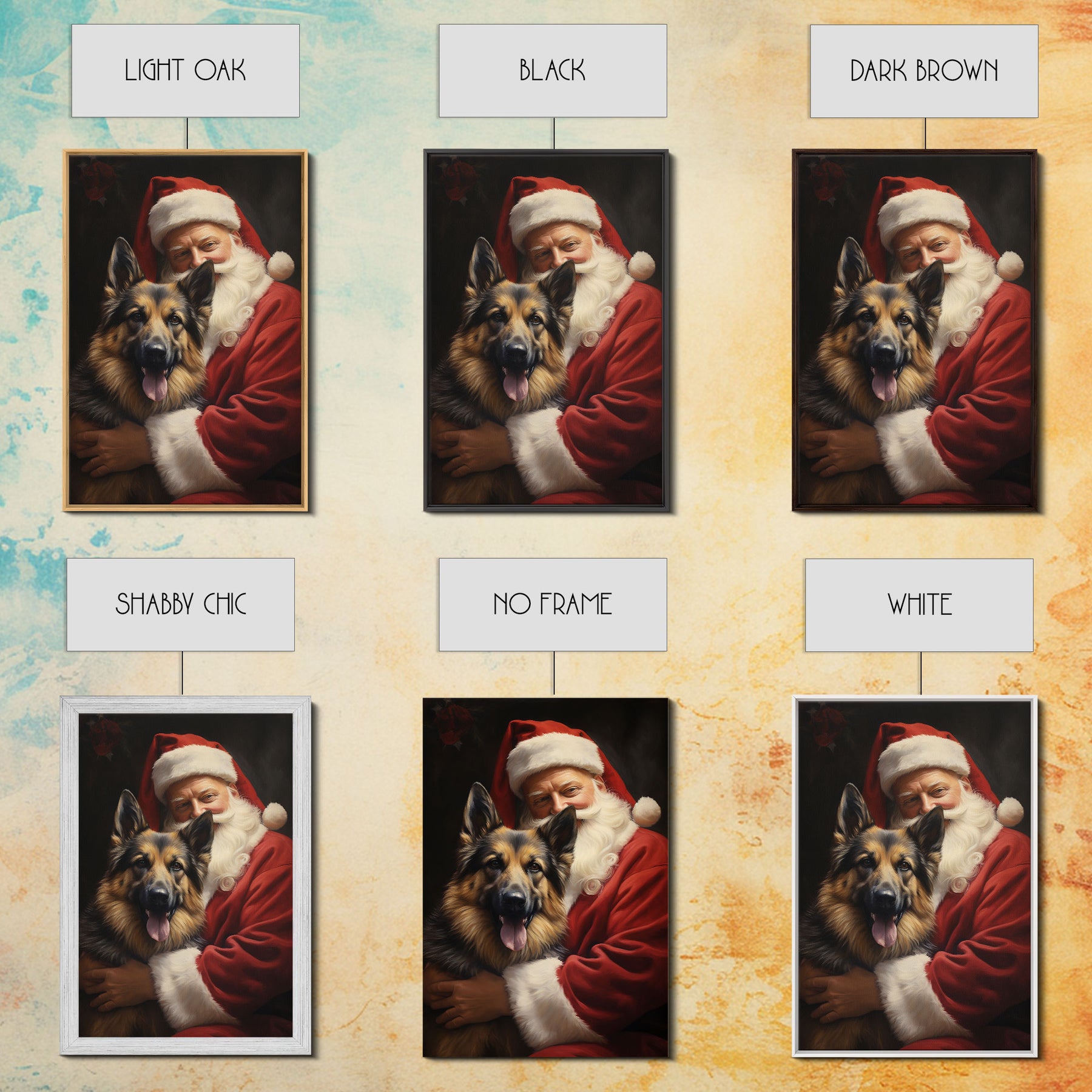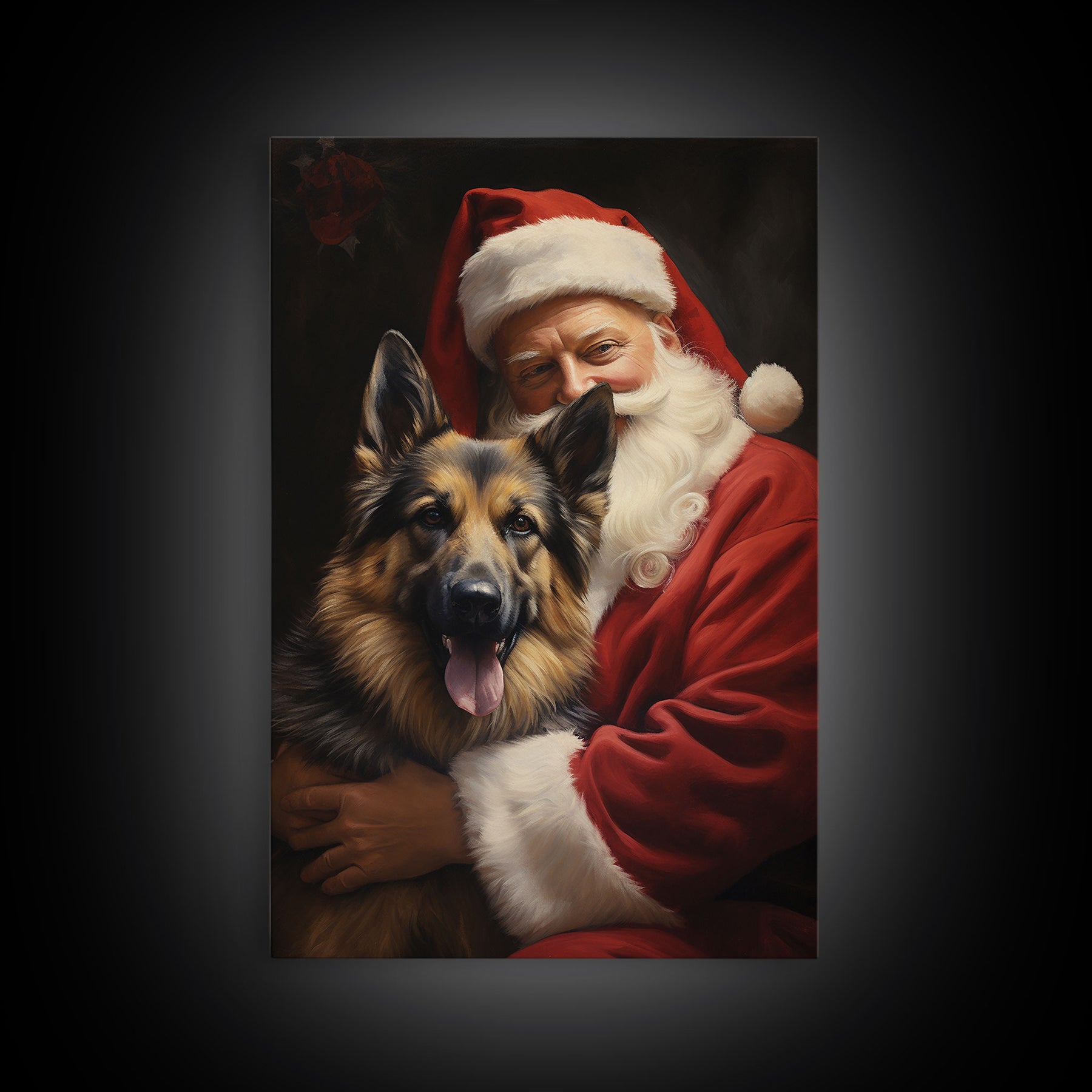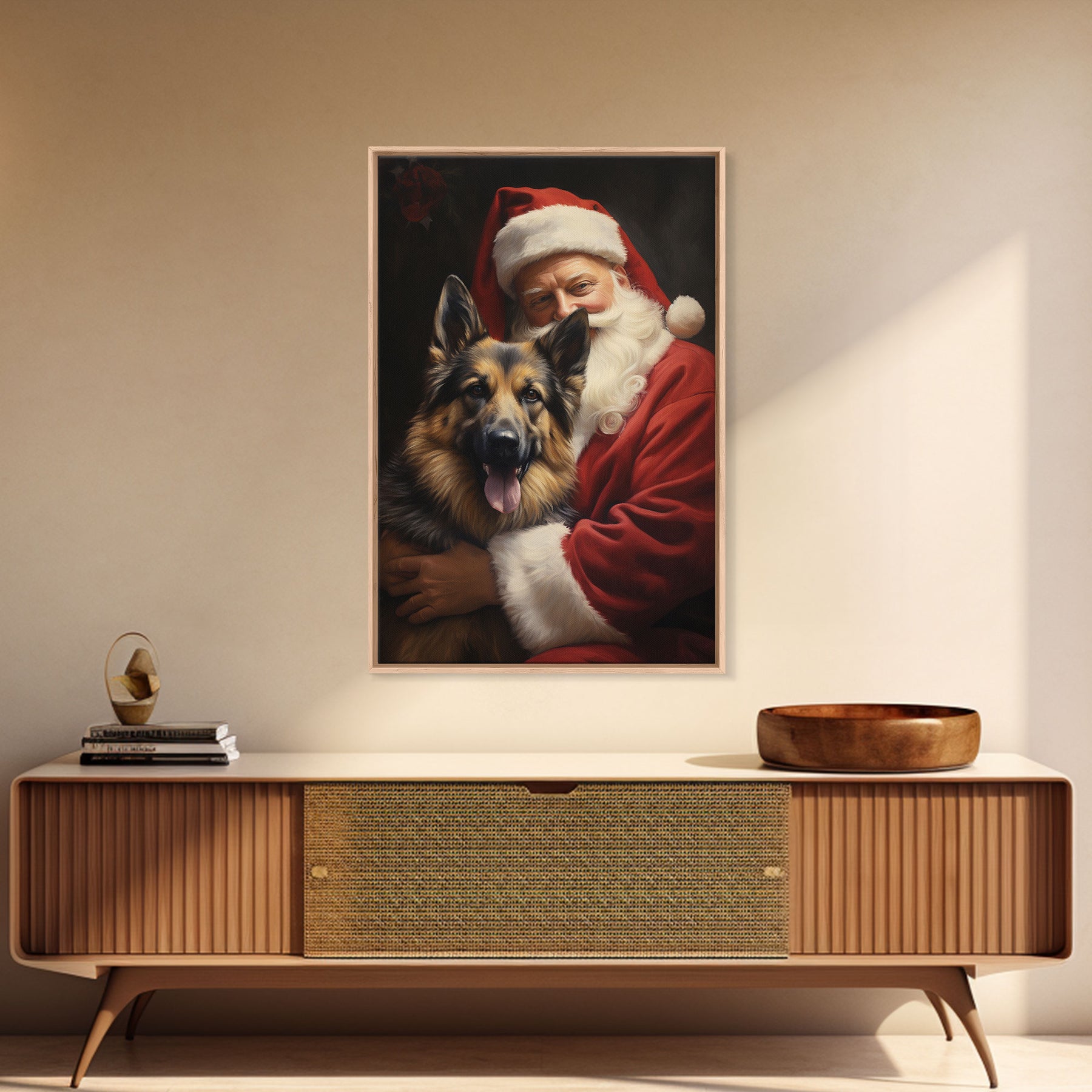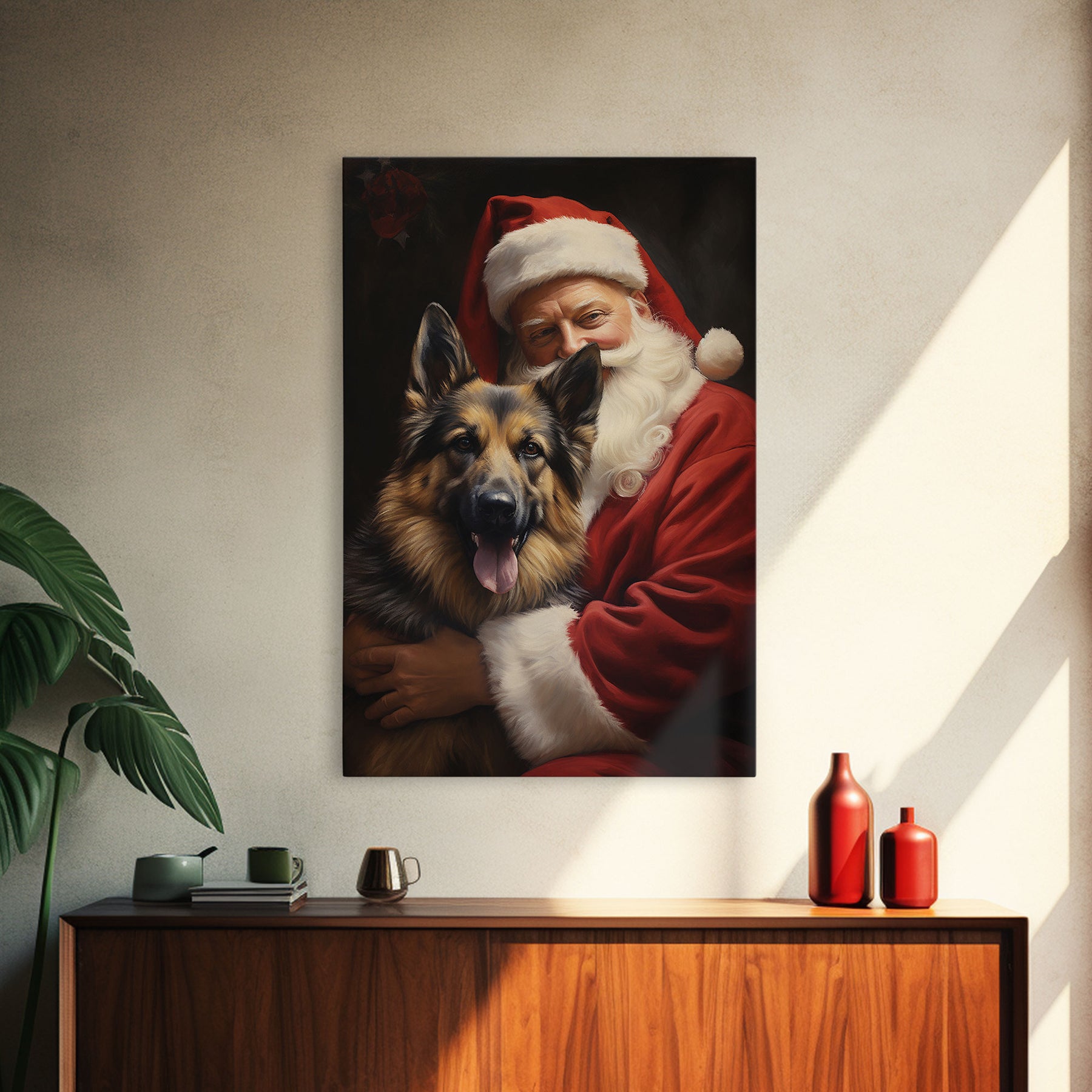 Santa Claus And His German Shepherd, Christmas Wall Art, Dog Gift, Christmas Dog, Winter Wall Art, Santa Decor, Santa Art Print, Cute Dog