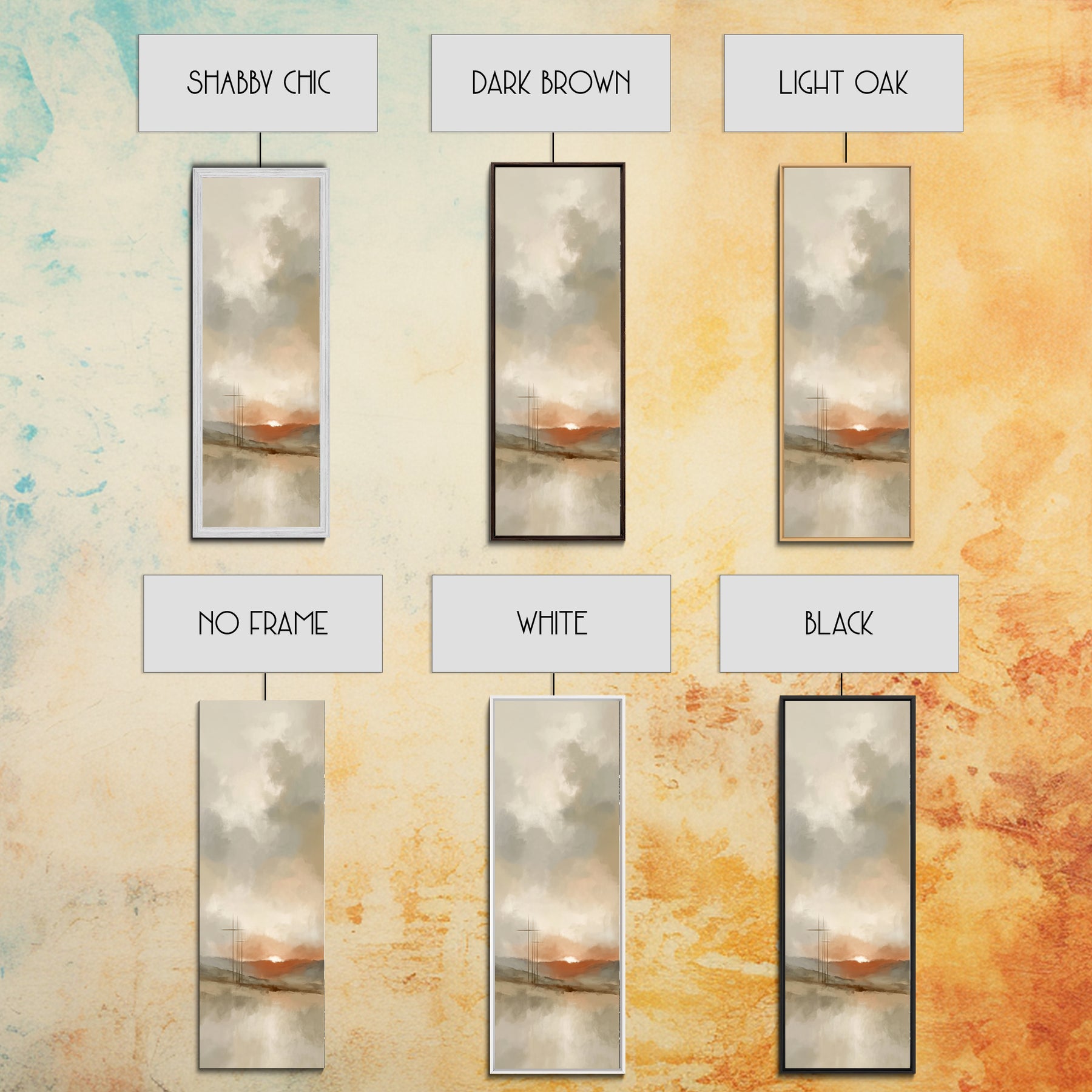 *Optional frames add a total of 1.5 inches to each dimension. For example, a 10x20 canvas with a frame will measure 11.5 x 21.5 inches overall. All framed canvases feature a bold, gallery-style 1.5" total depth.