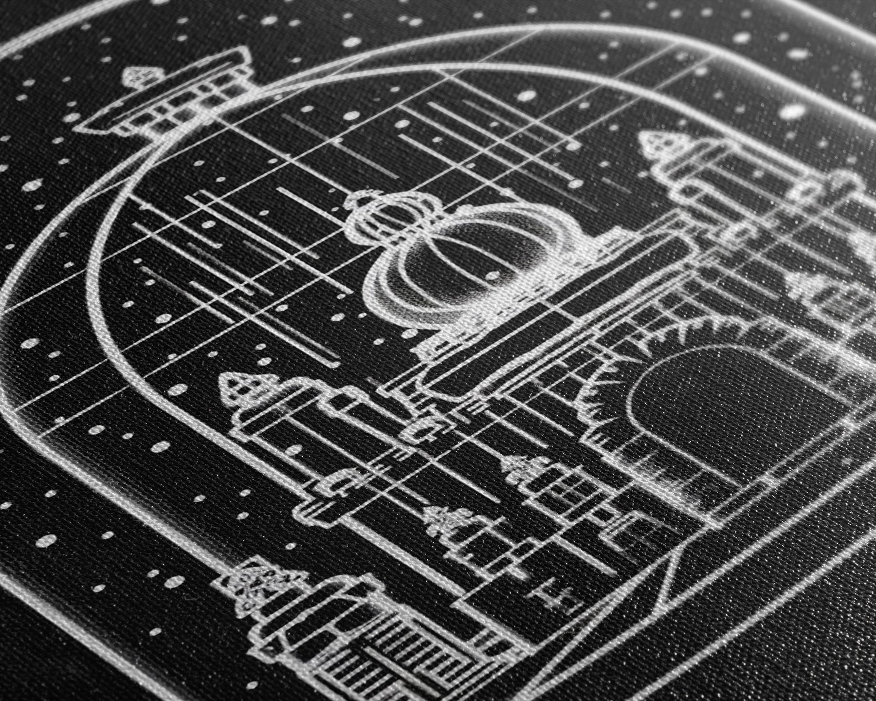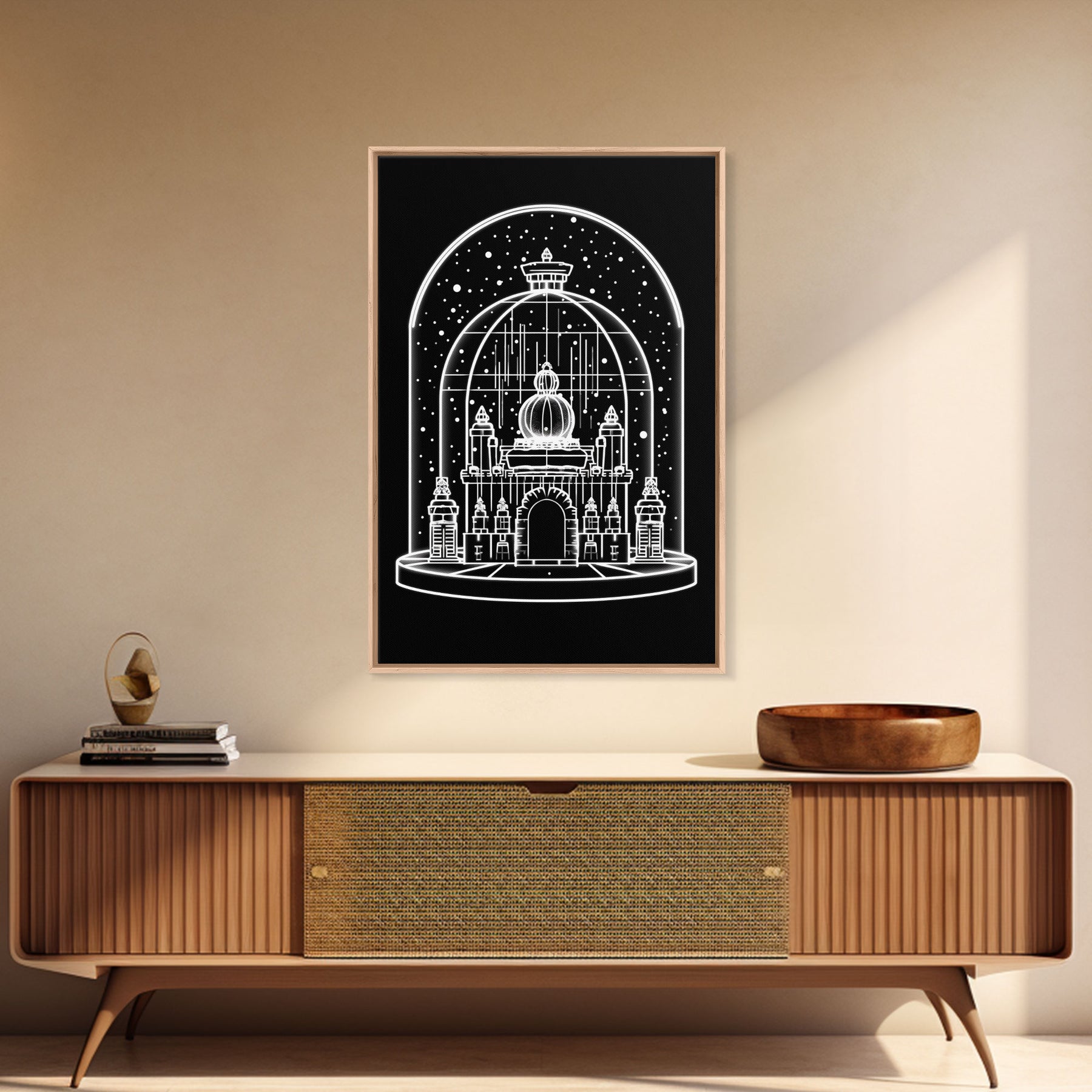 White Temple Wall Art, Snow Art Print, Fantasy Art, Line Art, Minimalist Print, Wall Decor, Canvas Print, Wall Art, Framed Canvas