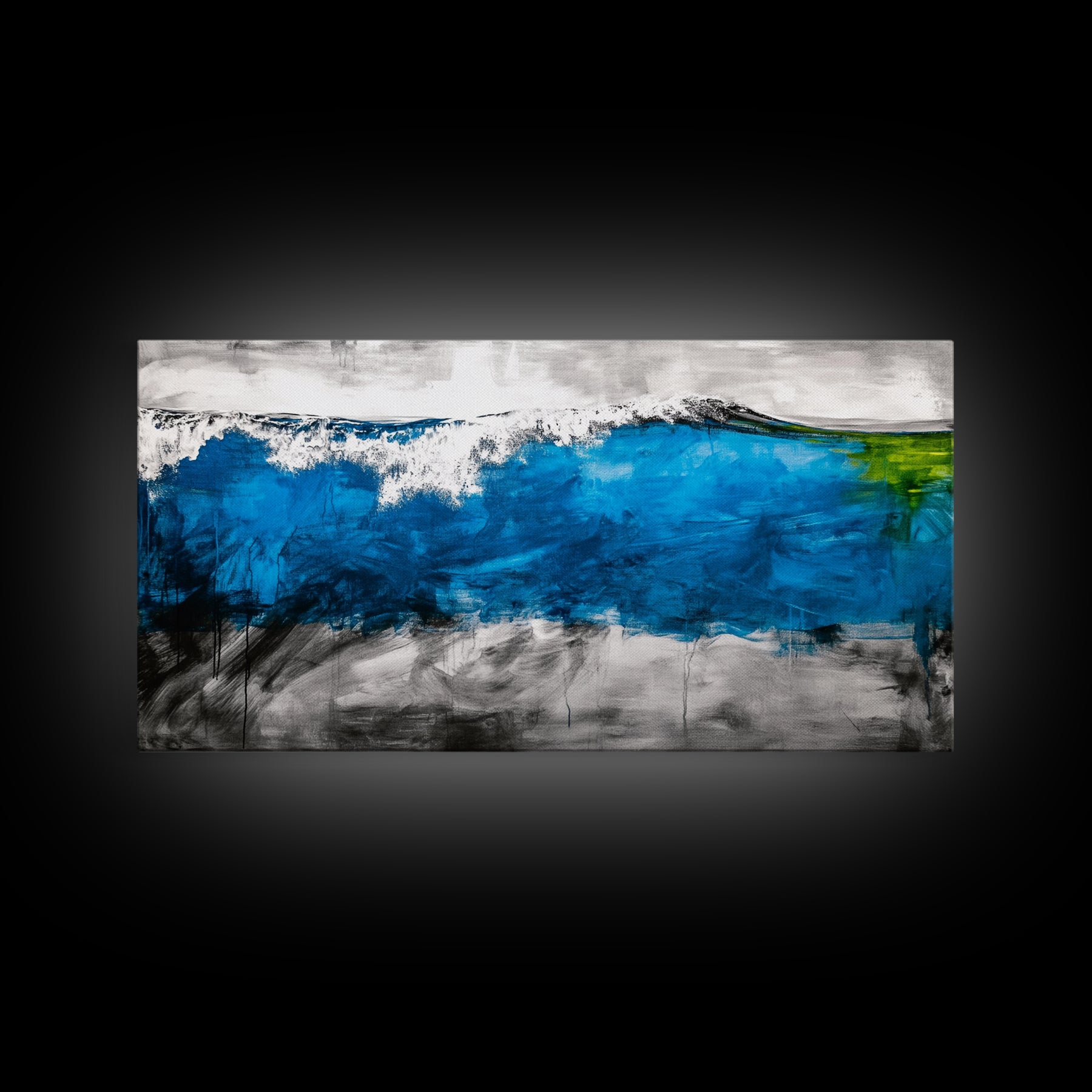 Abstract Ocean, Blue Wave, Coastal Art, Nautical Decor, Living Room Wall Art, Contemporary Seascape, Beach Theme, Framed Canvas Print