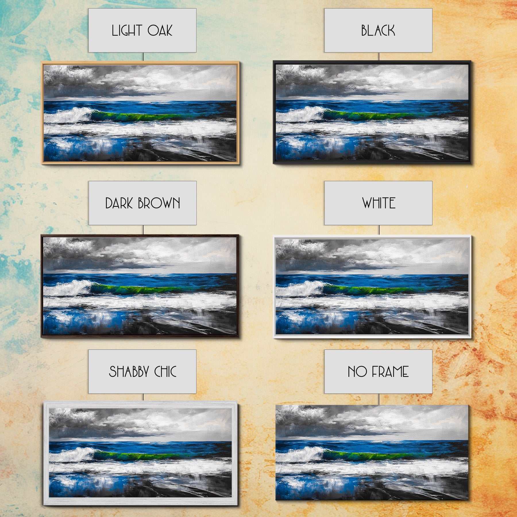 *Optional frames add a total of 1.5 inches to each dimension, for example a 10x20 canvas with a frame will be 11.5 by 21.5 inches total. All framed canvas are 1.5" total depth.
