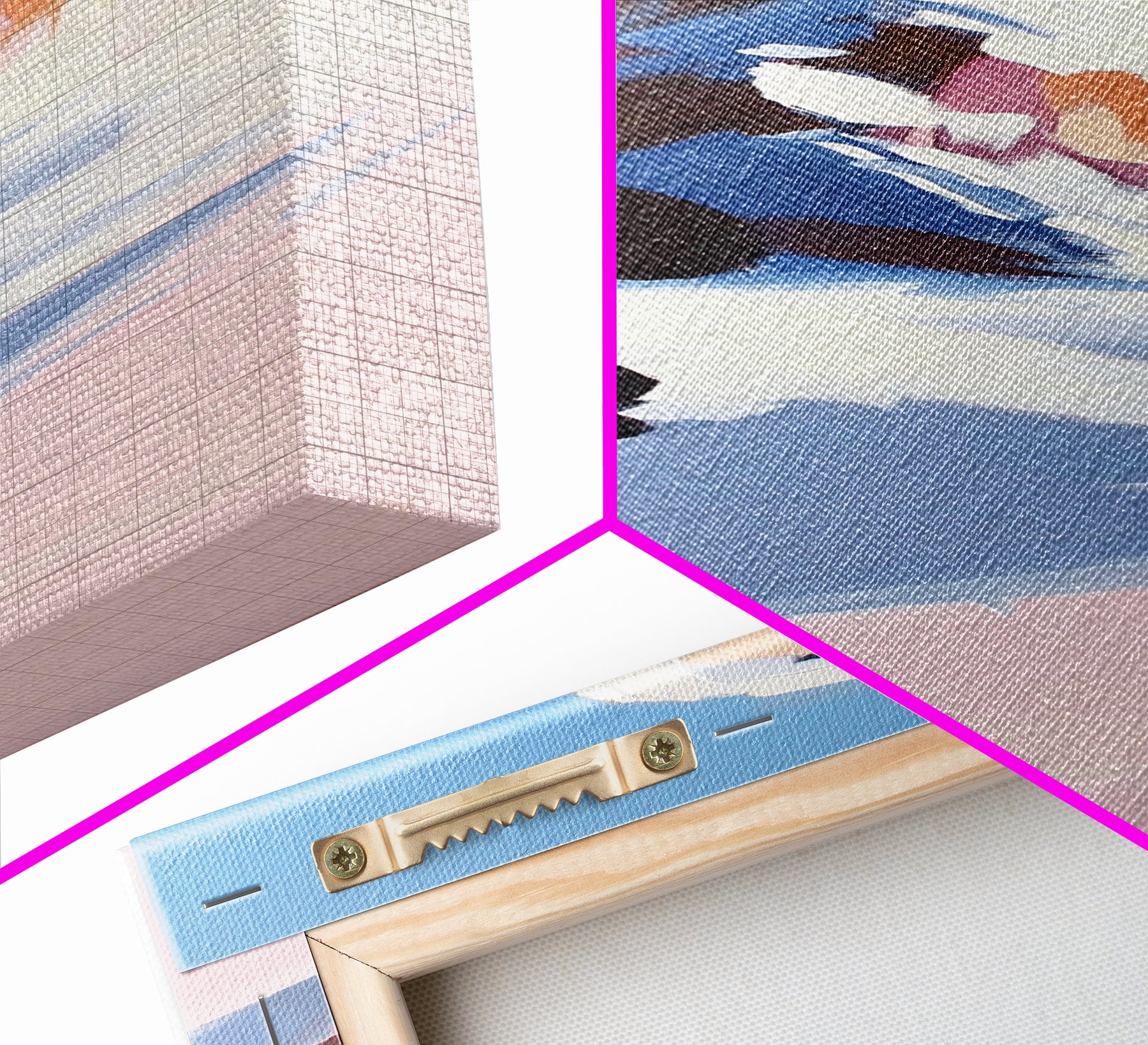 Hello and thank you for taking the time to view our modern high quality giclée artwork! We offer both posters and stretched canvas prints. Our posters are printed on Ultra Matte 60 lb / 230 GSM high quality photo paper, with a thickness of 10 mil. Our canvases are printed on museum grade 350 GSM canvas material with ECO friendly archival grade ink, then hand stretched and stapled over premium, FSC certified and shrink resistant frames. Designed and built to last a lifetime.