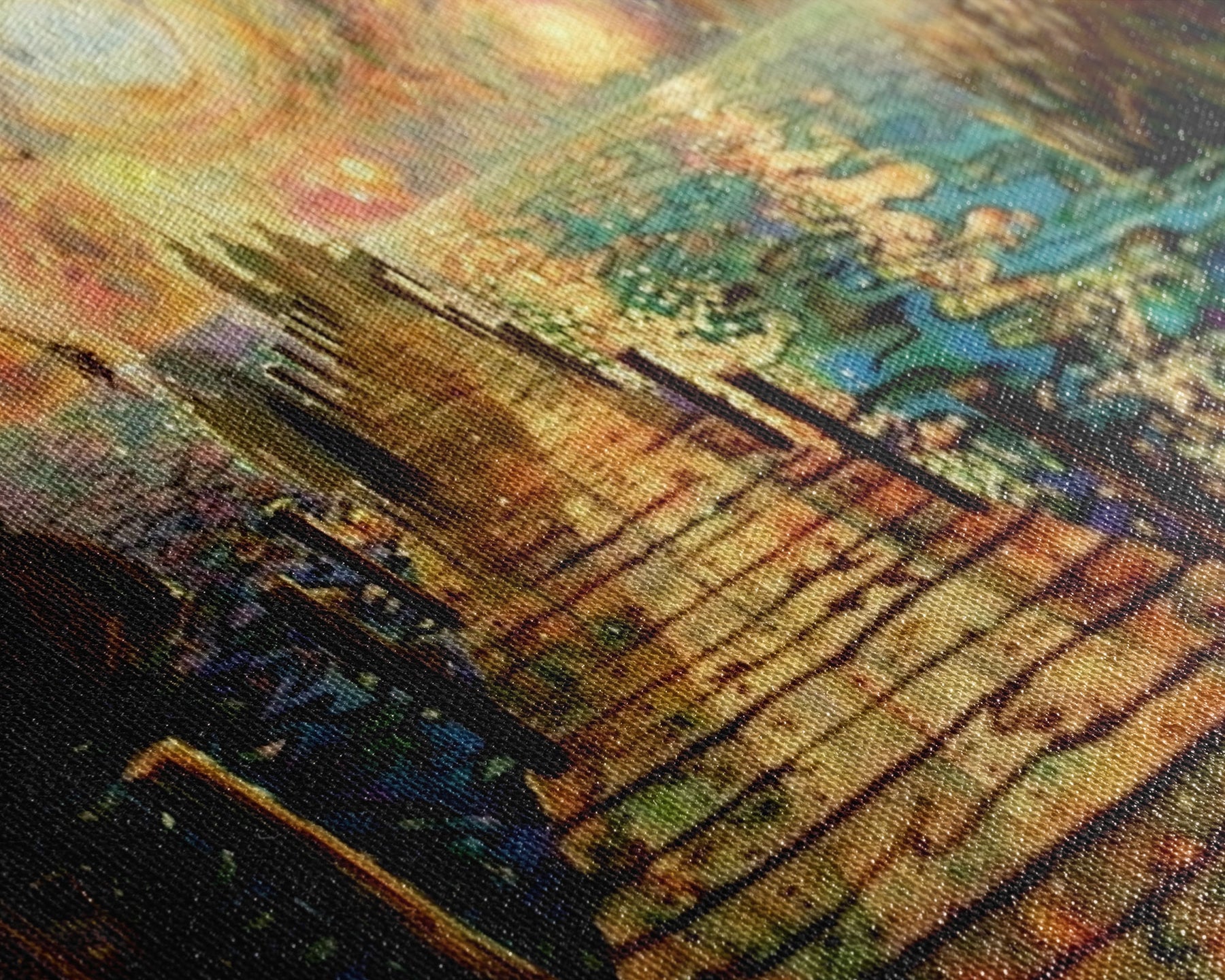 Most of our canvases are made in the USA, with the exception of canvases ordered with the light oak unstained frames, and any large canvases (24x48, 30x60, 16x48 and 20x60) ordered WITH a frame. These are temporarily made in and shipped from Europe, while we try to find a more consistent supplier in the USA.