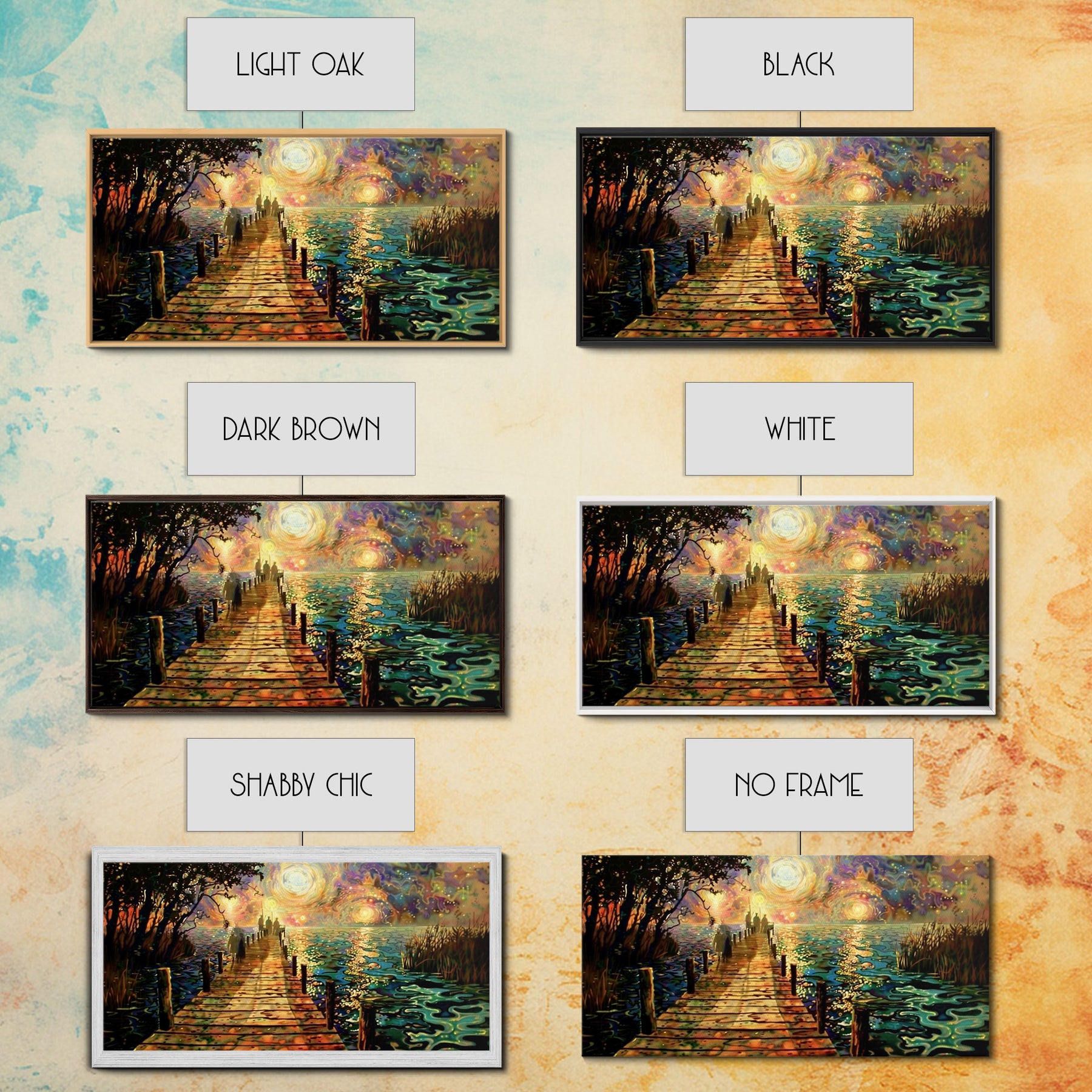 *Optional frames add a total of 1.5 inches to each dimension, for example a 10x20 canvas with a frame will be 11.5 by 21.5 inches total. All framed canvas are 1.5" total depth.