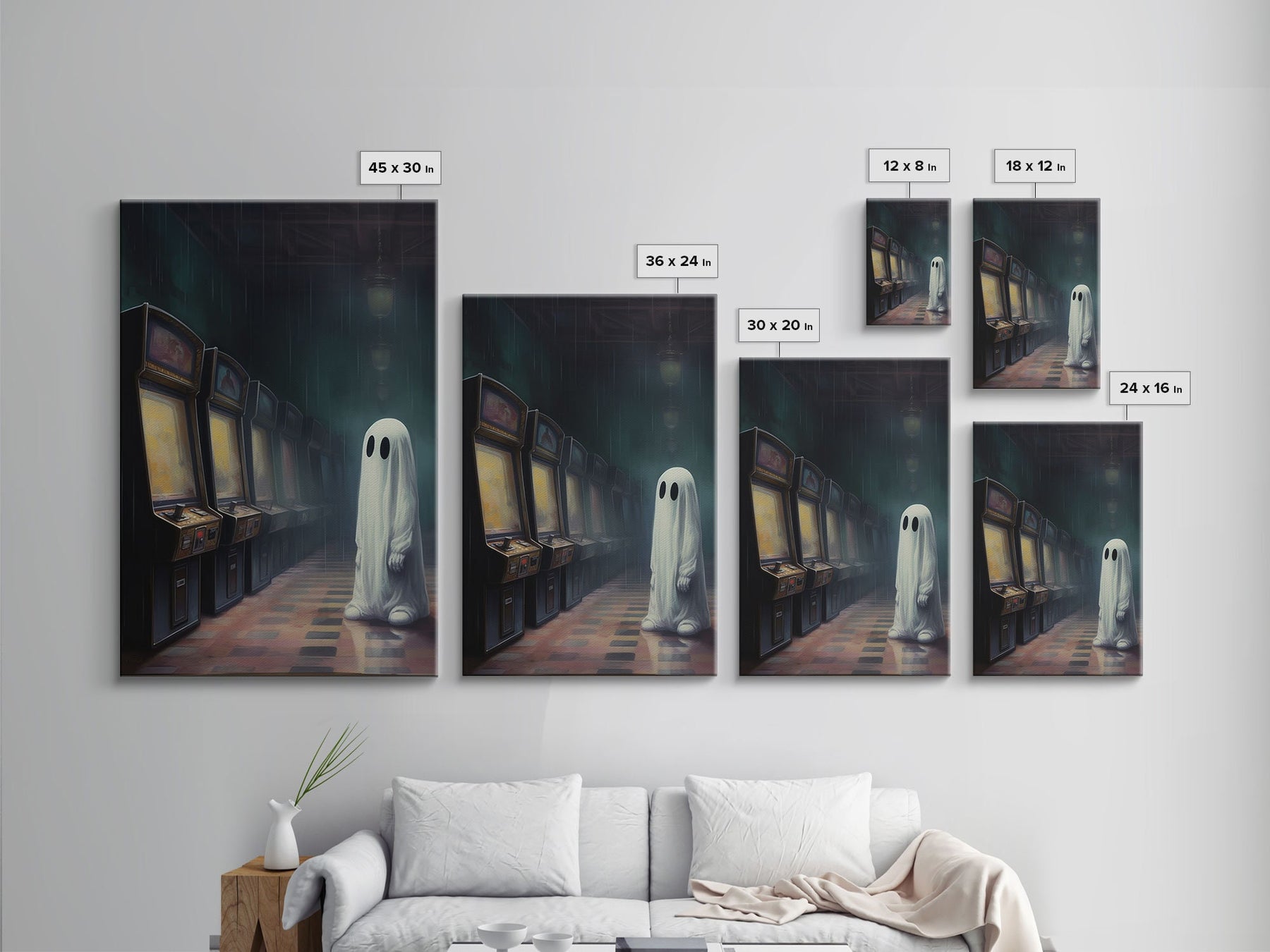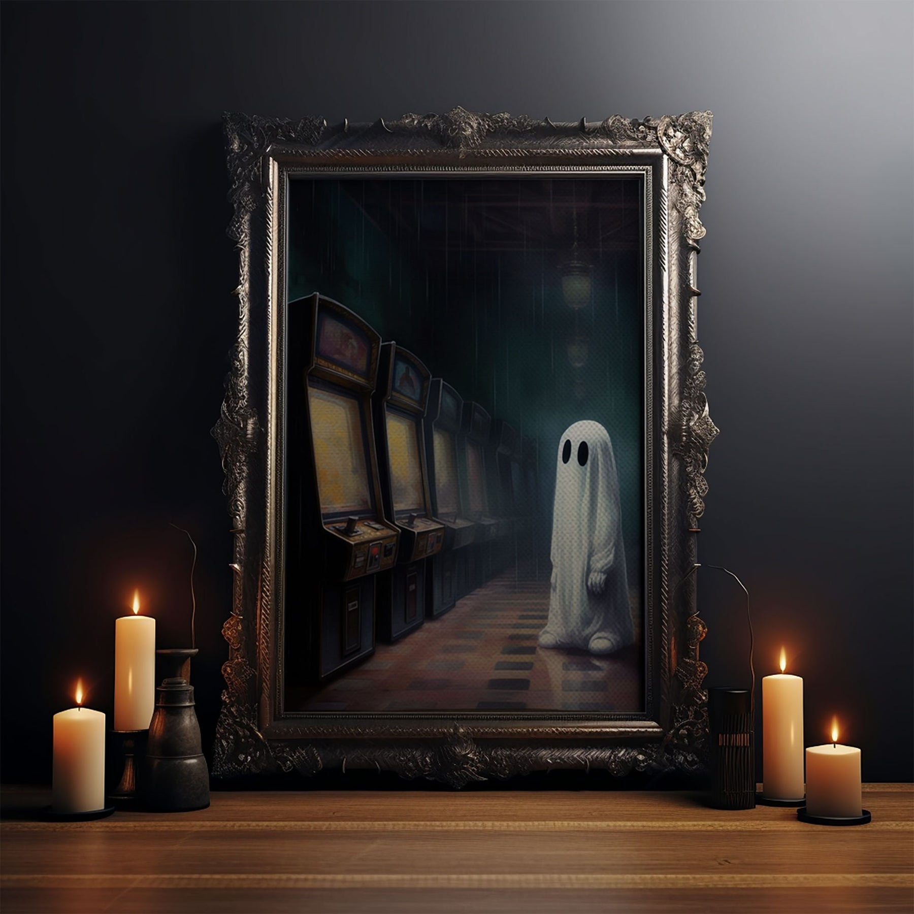 Ghost in an Abandoned Arcade, Nostalgia Canvas, Art Canvas Print, Dark Academia, Gothic Retro, Game Room Art, Halloween Decoration