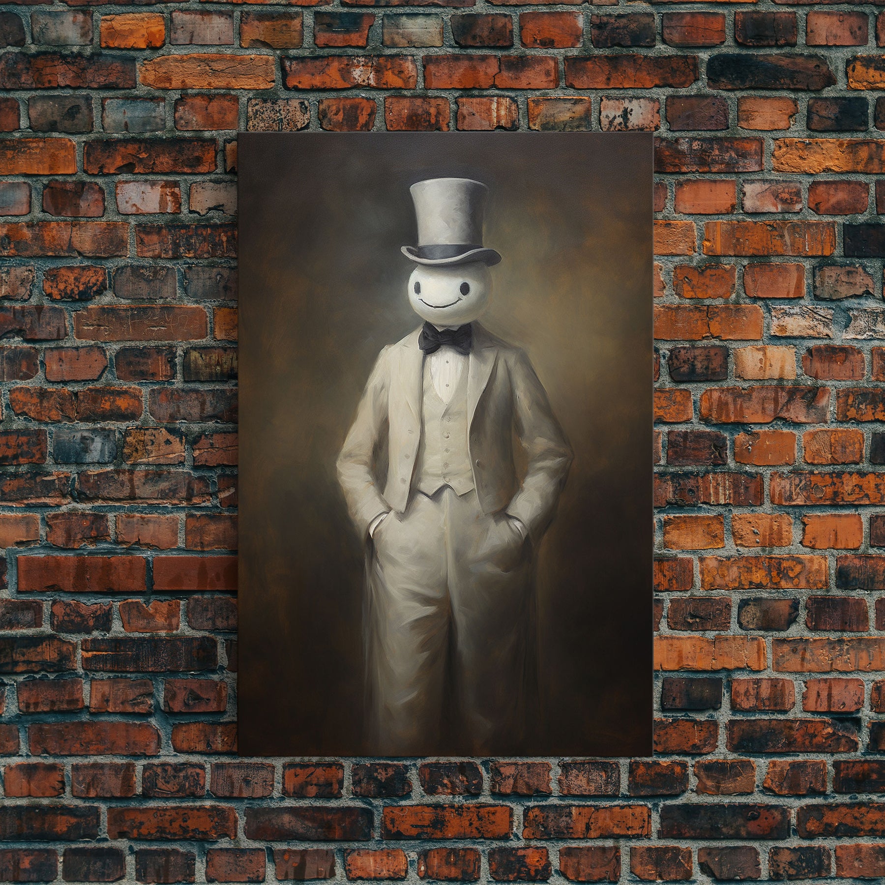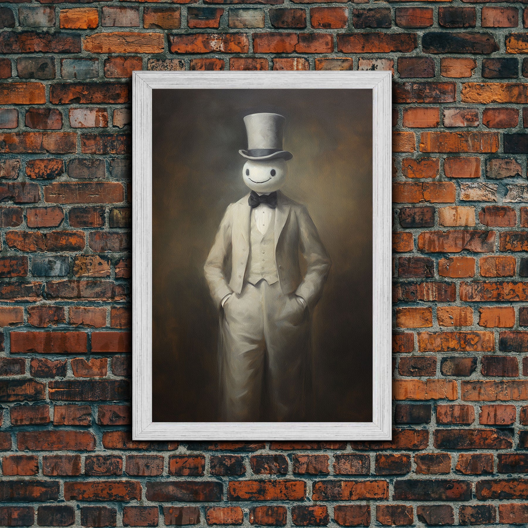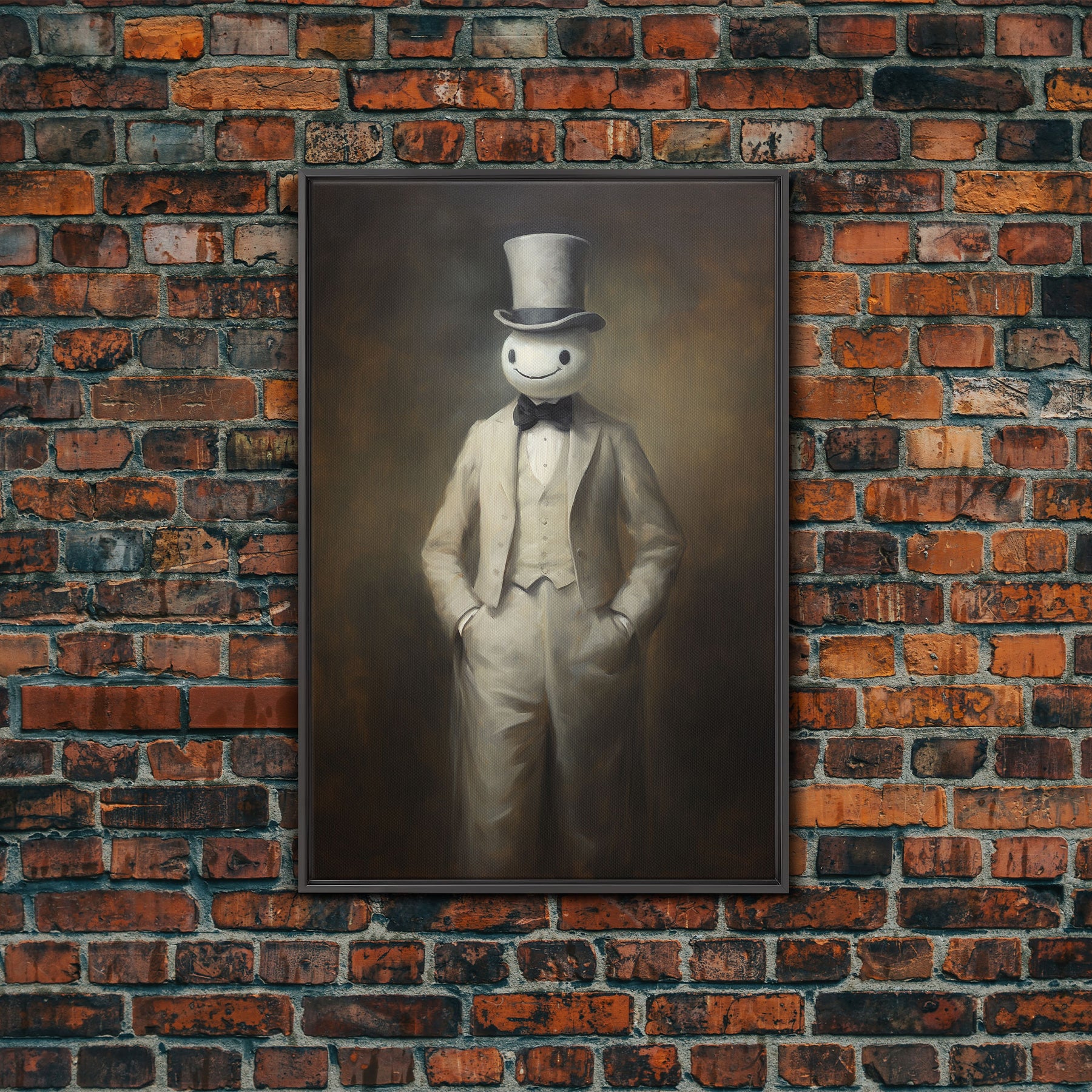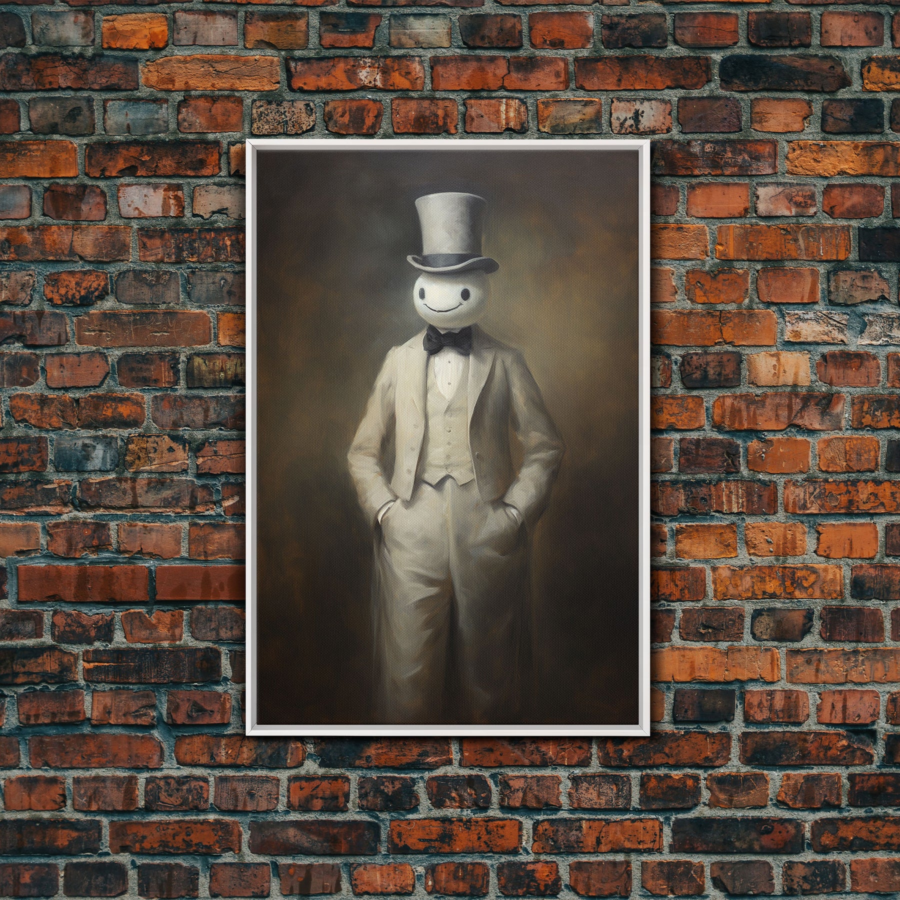 Ghost Wearing A Top Hat, Victorian Gentleman Ghost, Framed Canvas Print, Halloween Canvas Art, Unique Spooky Decor, Gothic Dark Academia Art
