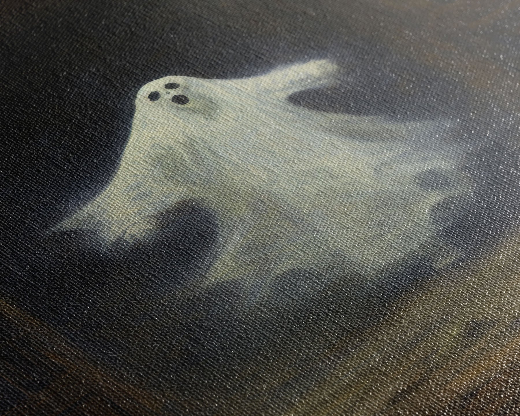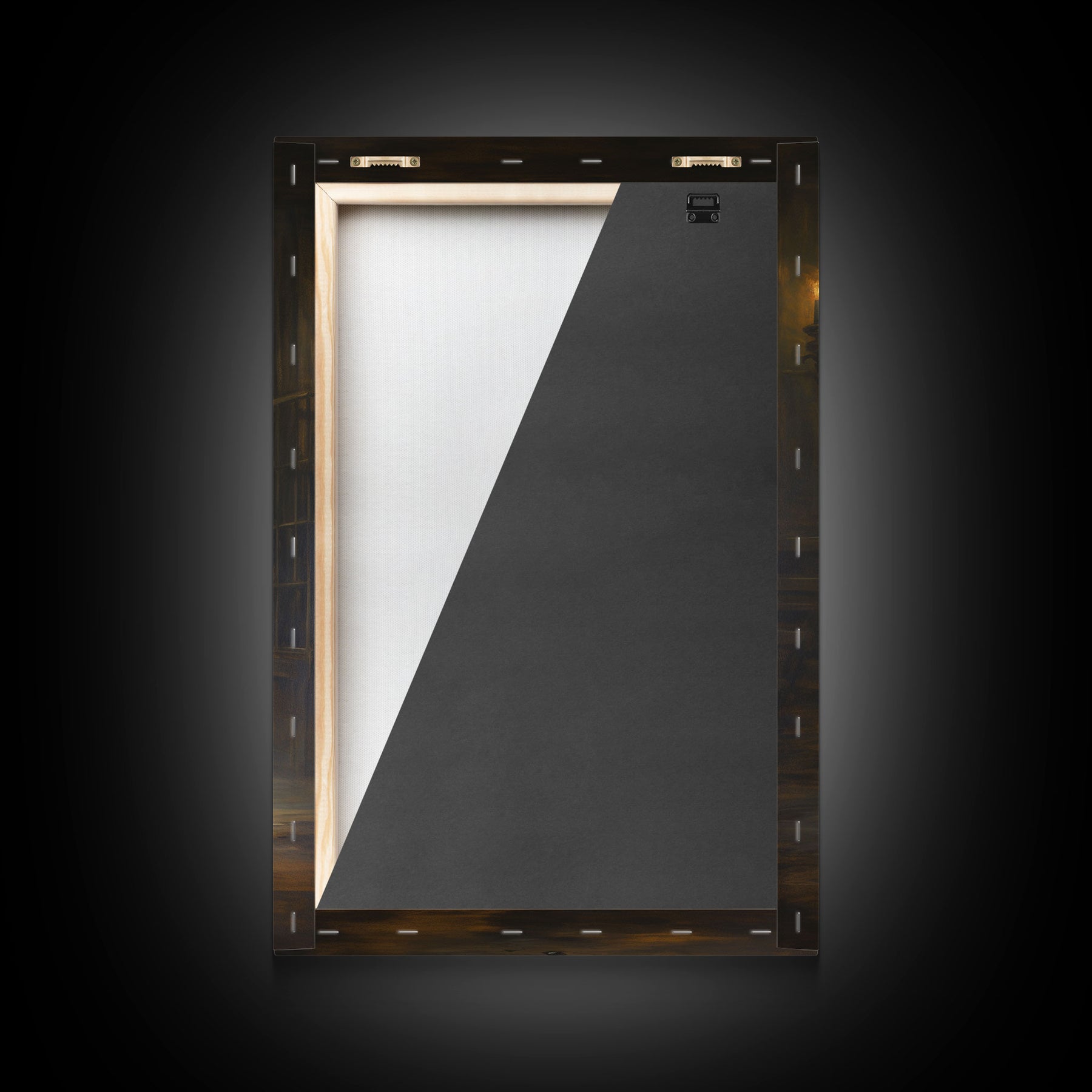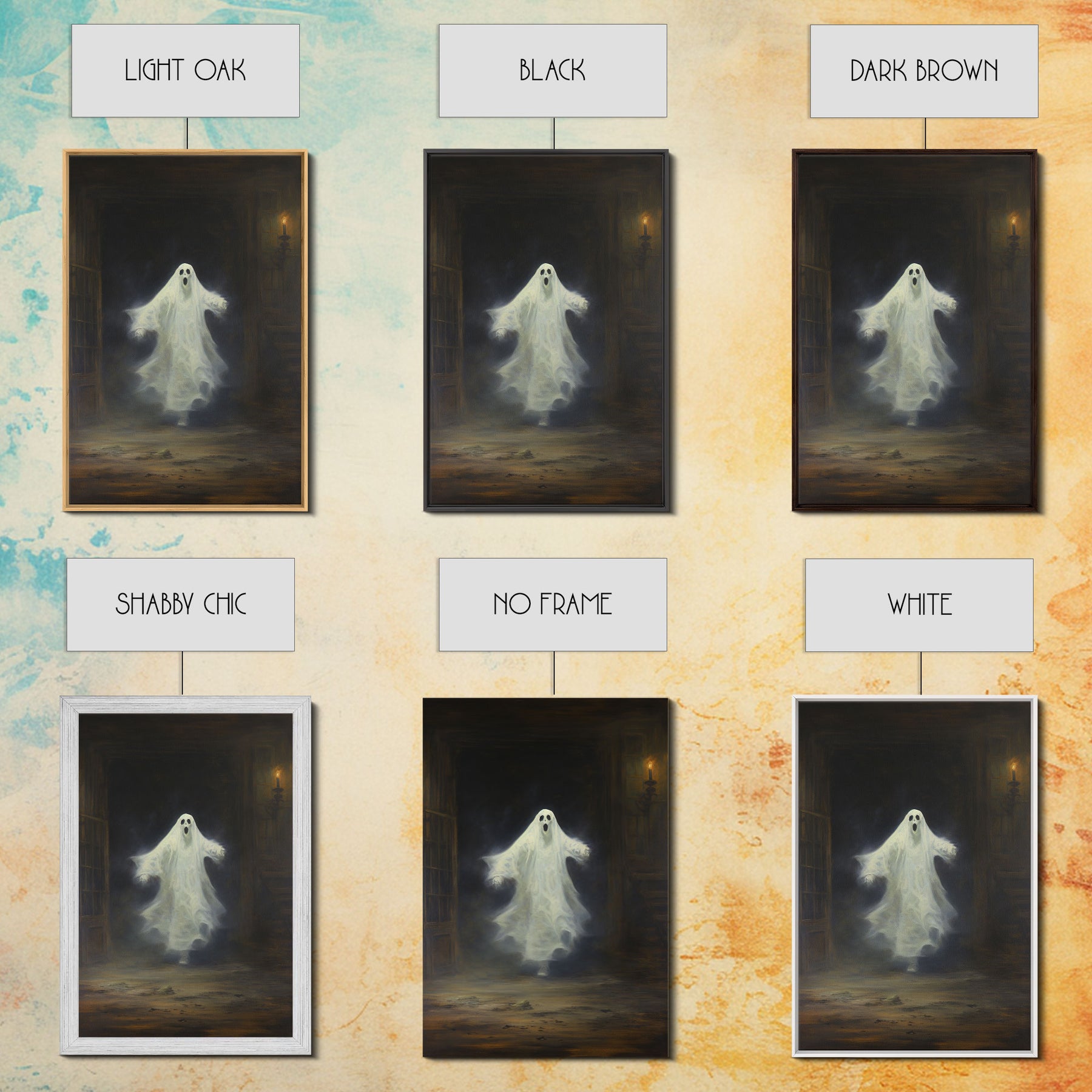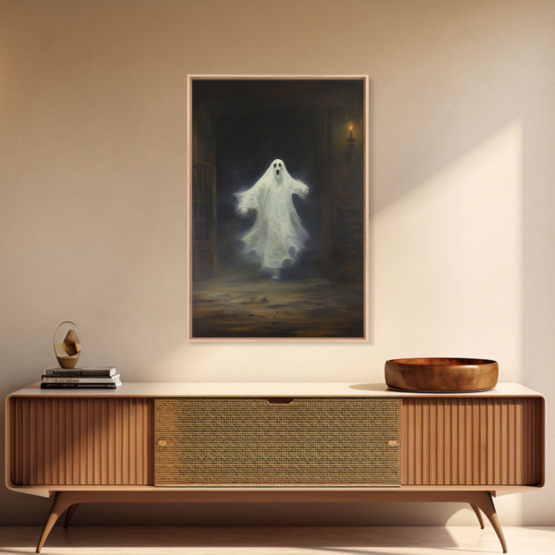 The Haunted Library, Spooky Gothic Victorian Ghost, Halloween Decor, Framed Canvas Print, Halloween Canvas Art