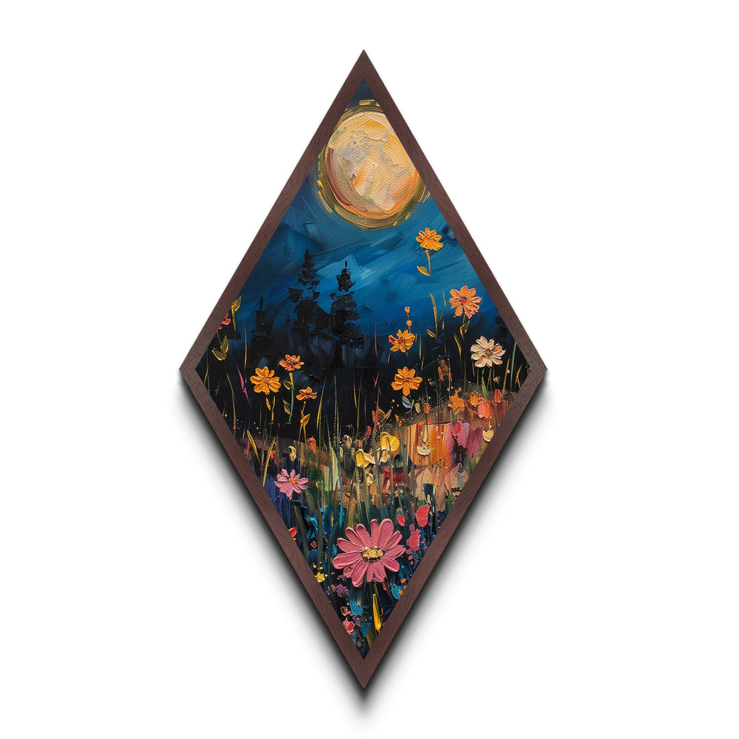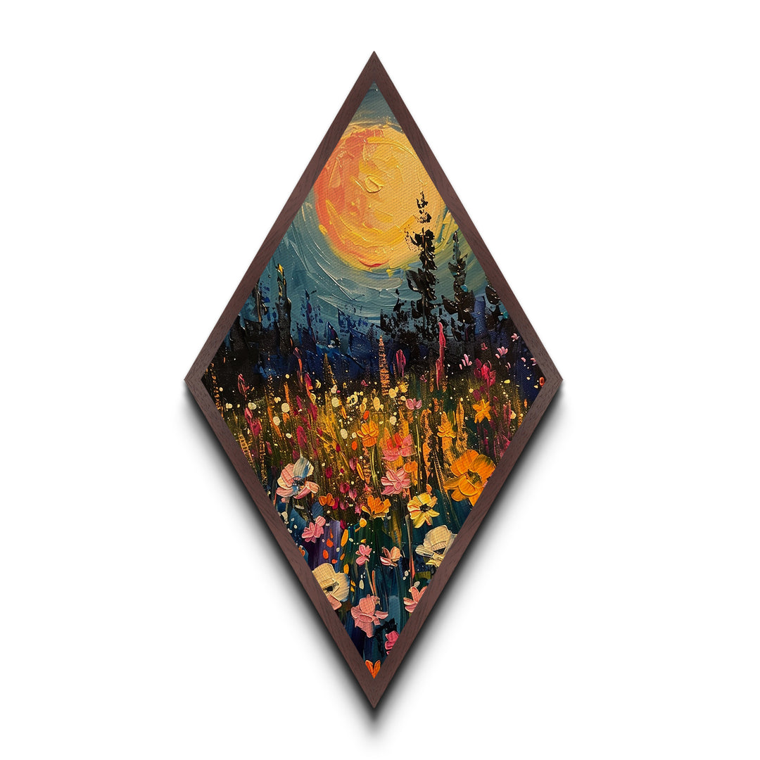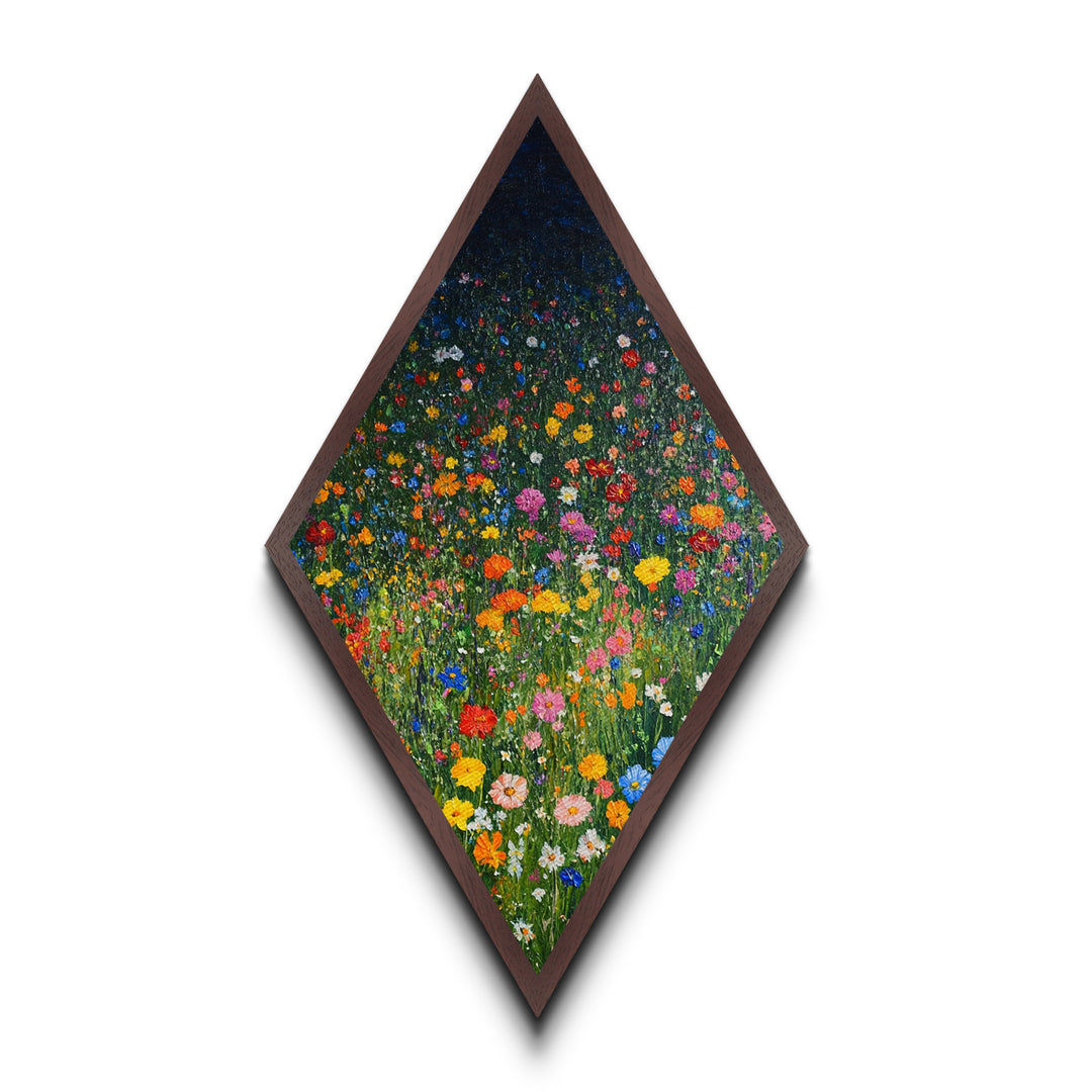 Wildflowers Painting Print, Spring Time Floral Art, Diamond Shaped Art, Canvas Embossed Print, Canvas Texture Wall Art