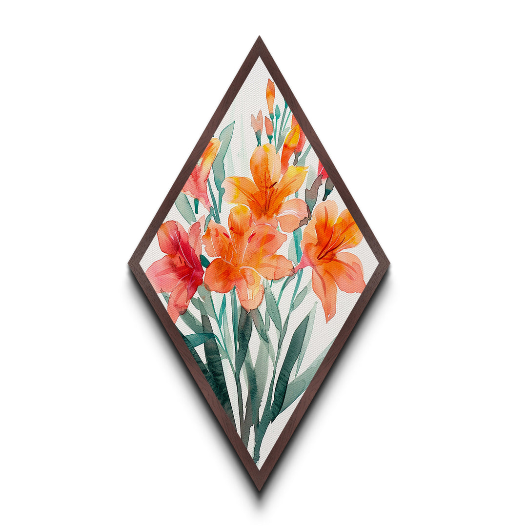Diamond Shaped Tiger Lily Floral Burst, vivid orange red flower Canvas Art Print, expressive watercolor garden decor, botanical wall piece