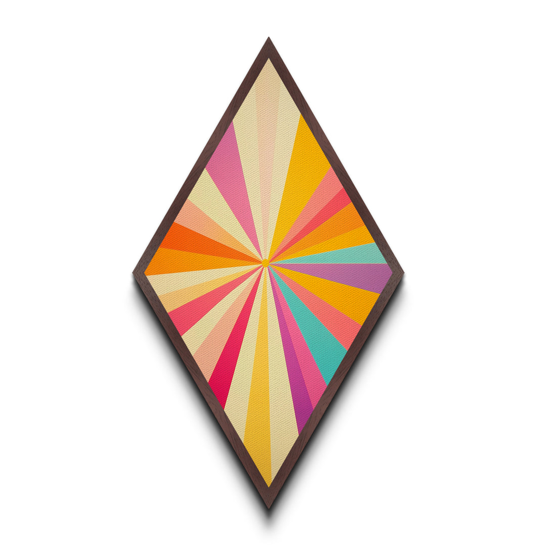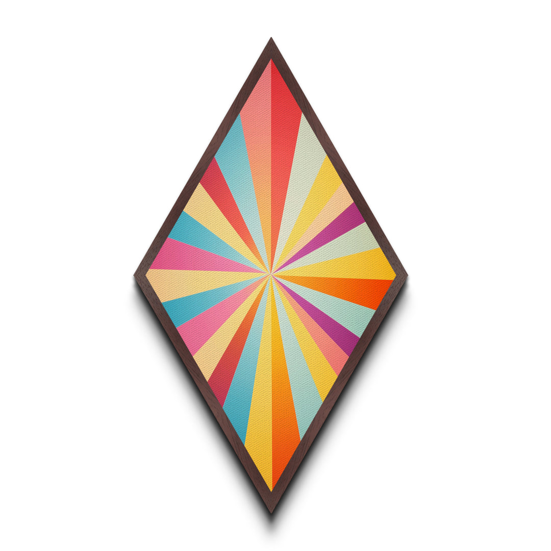Starburst Bright Rays – Diamond Shaped Canvas Textured Print, retro abstract wall art, vibrant geometric design, bold midcentury decor