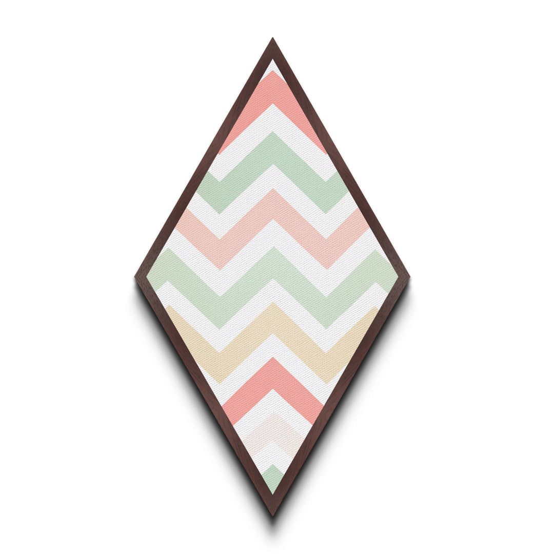Chevron Candy Pop Diamond Shaped Canvas Embossed Print with light pastel rainbow zigzag stripes modern baby room art soft neutral wall pattern