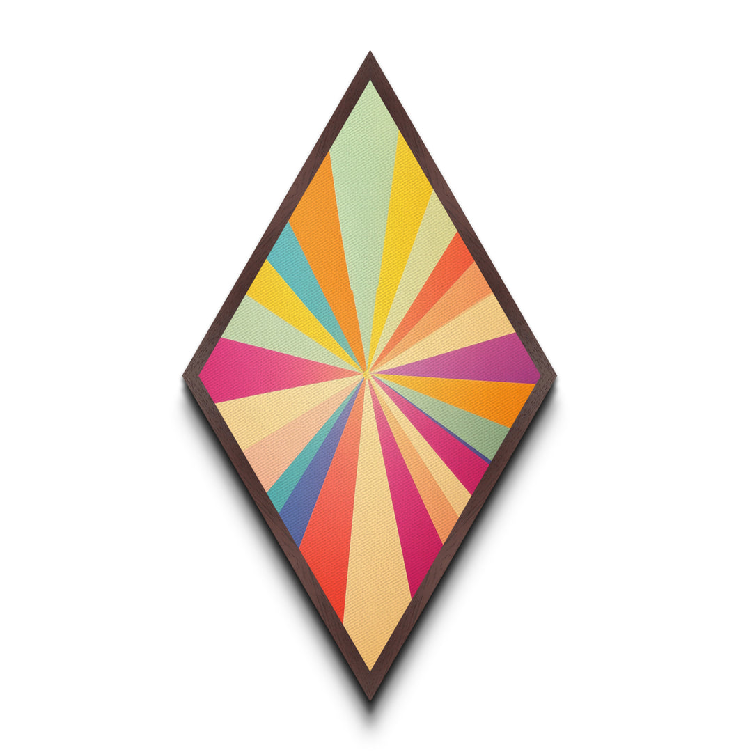 Vintage Retro Rays – Diamond Shaped Canvas Textured Print, colorful abstract artwork, sunbeam inspired wall accent, midcentury pop style