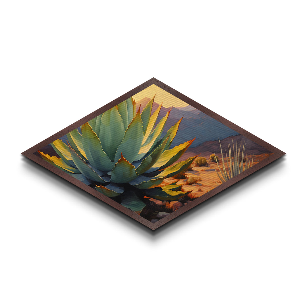 Desert Agave Diamond Shaped Southwestern Canvas Art Print Cactus Landscape Painting Botanical Wall Accent Nature Inspired Decor