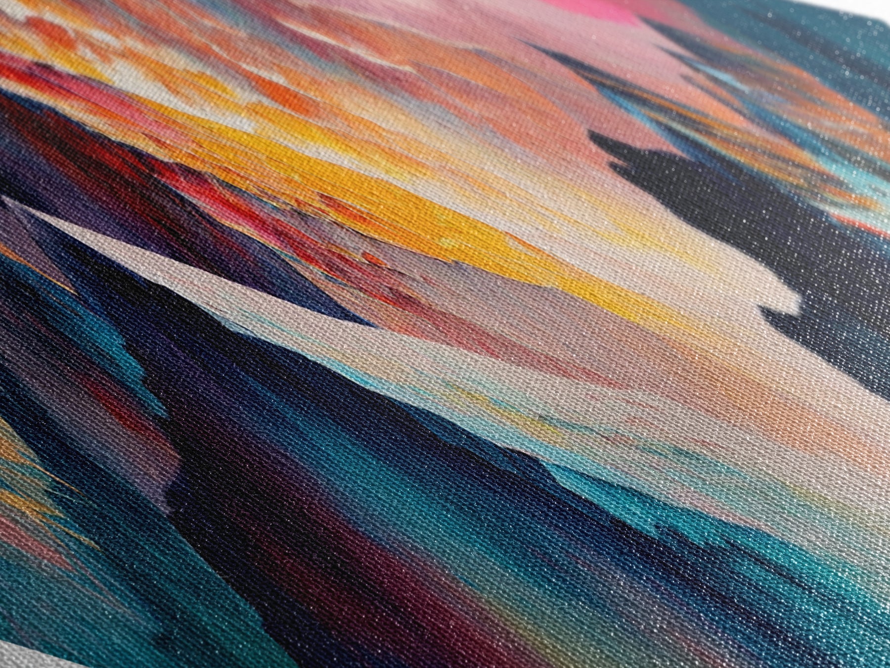 Aurora Range – Diamond Shaped Vibrant Alpine Mountains Canvas Art Print with icy summits, glowing pink sky, and fantasy ridge view