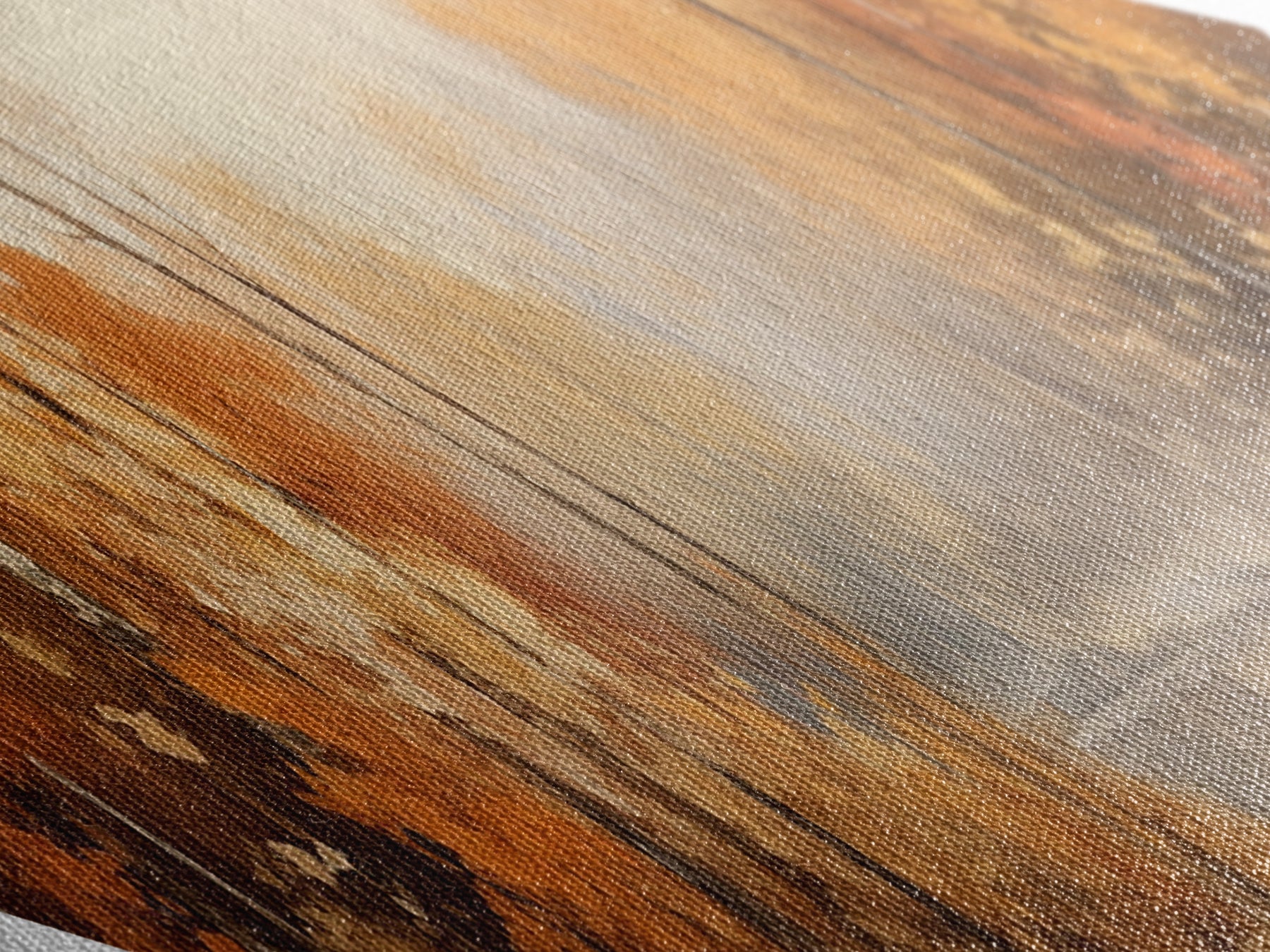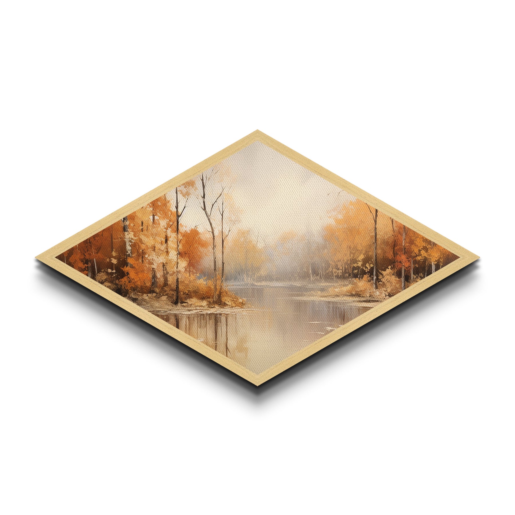 Autumn River Mist Diamond Shaped Canvas Textured Print fall foliage forest lake reflection tranquil landscape nature orange wall decor