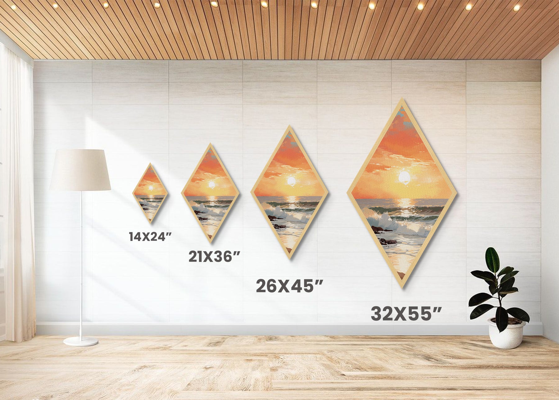 Beautiful Beach Sunset Framed Print, Nautical Painting, Coastal Decor, Diamond Shaped Art, Retro MCM Style Wall Art