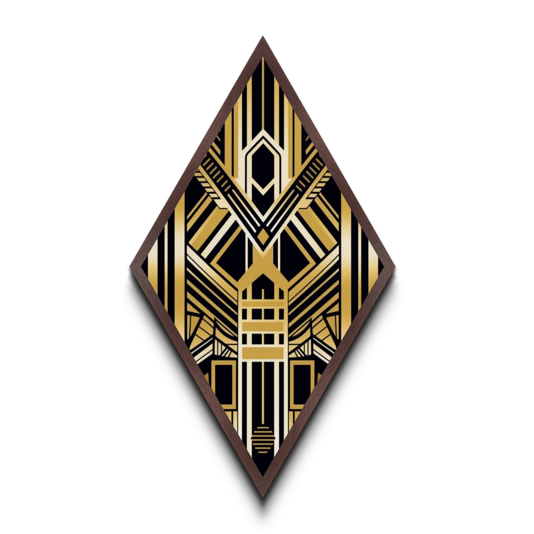 Black and Gold Diamond Shaped Art Deco Canvas Textured Art Print, Diamoned Shaped Wall Art, Retro Style Home Decor