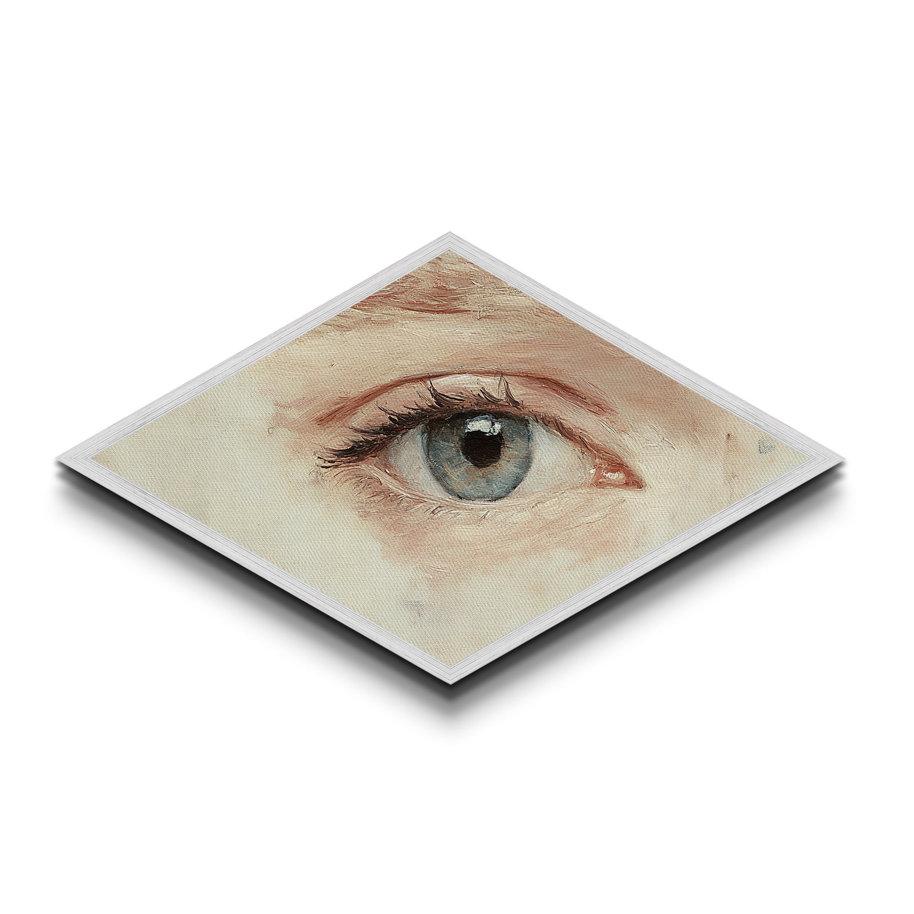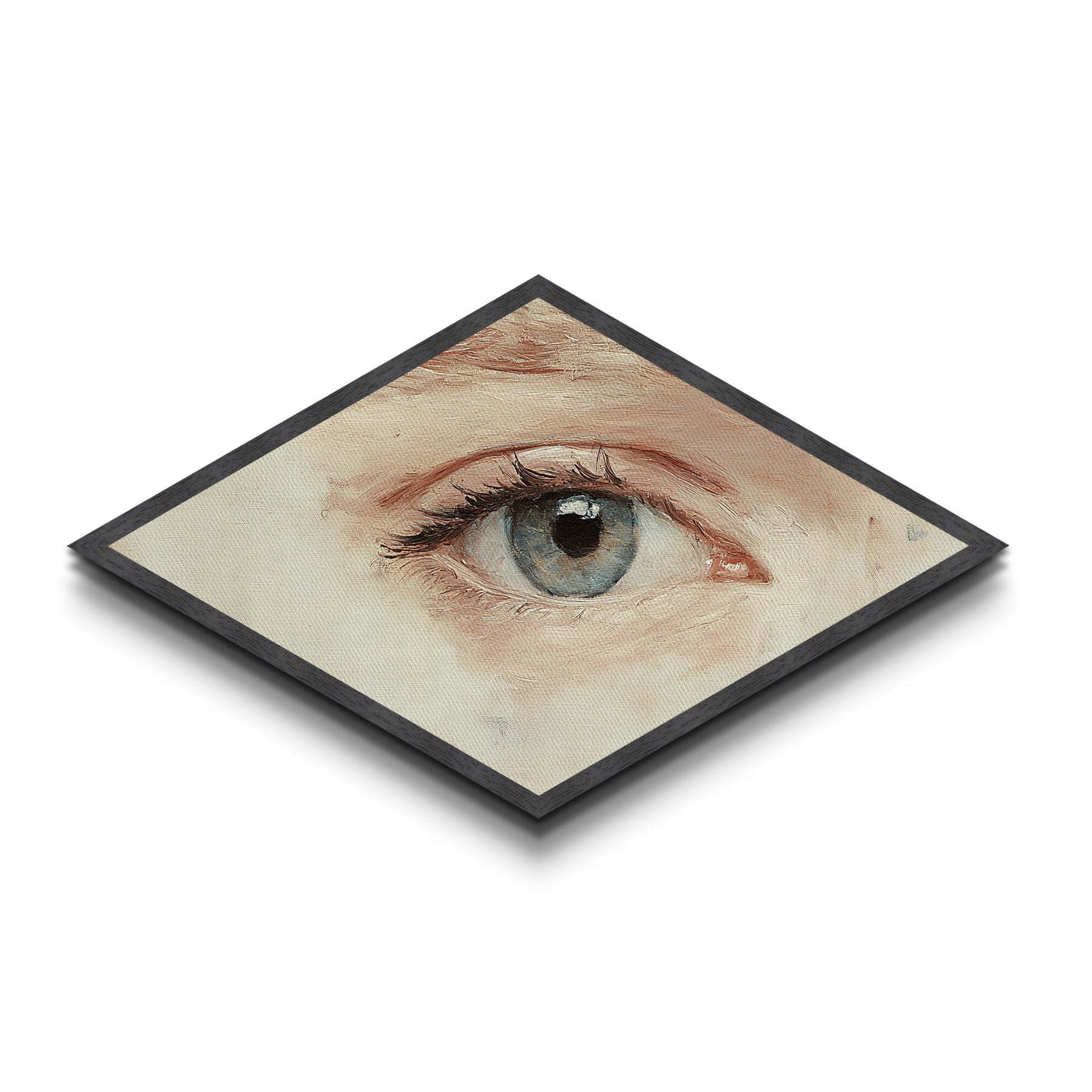 Blue Eye Realism Diamond Shaped Canvas Textured Print Hyperreal Oil Detail Surreal Wall Art Unique Minimalist Modern Bedroom Decor