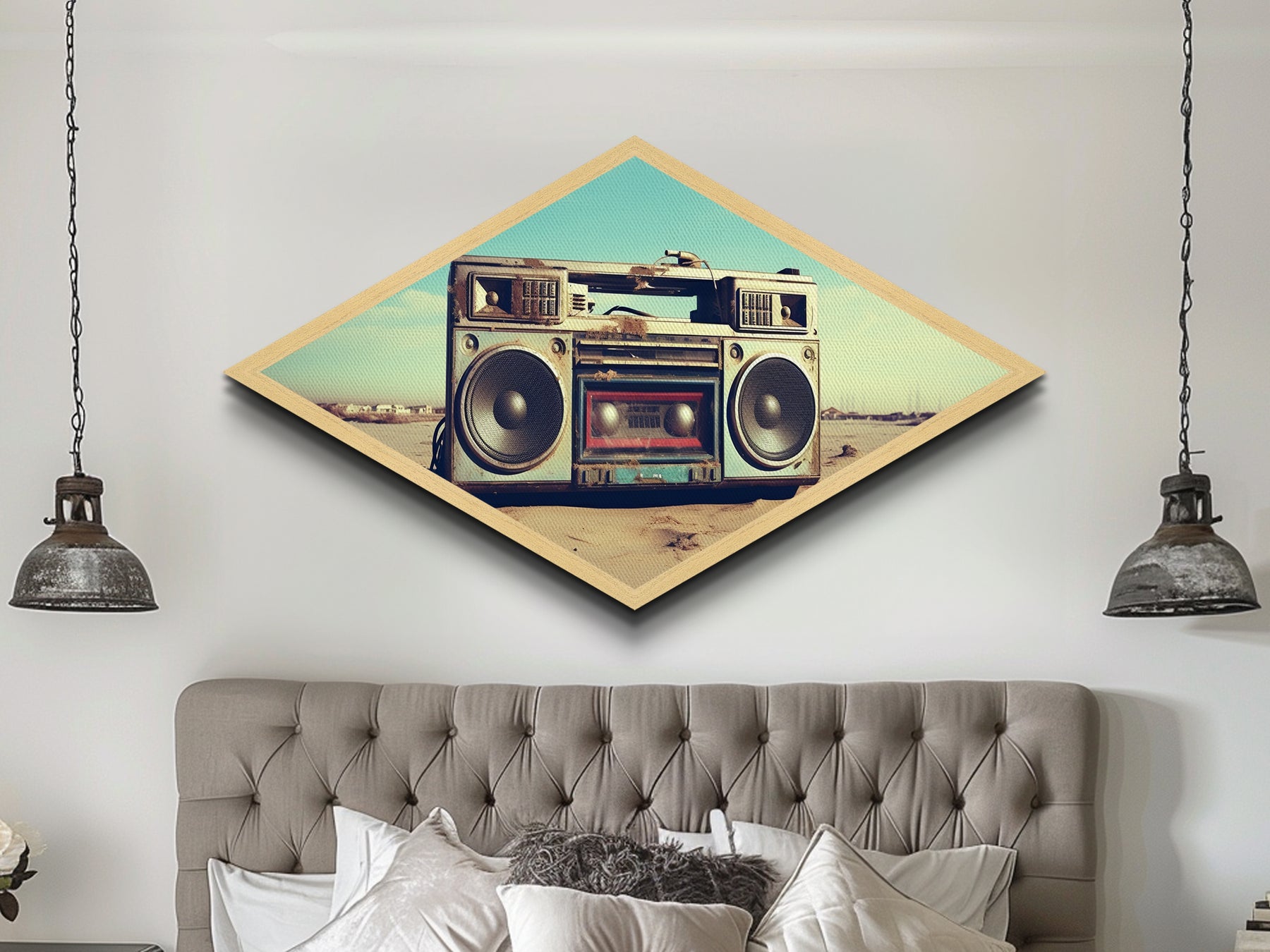 Boombox On Beach Diamond Shaped retro music lover Canvas Textured Print nostalgic 80s vibe beach sound decor man cave or dorm art