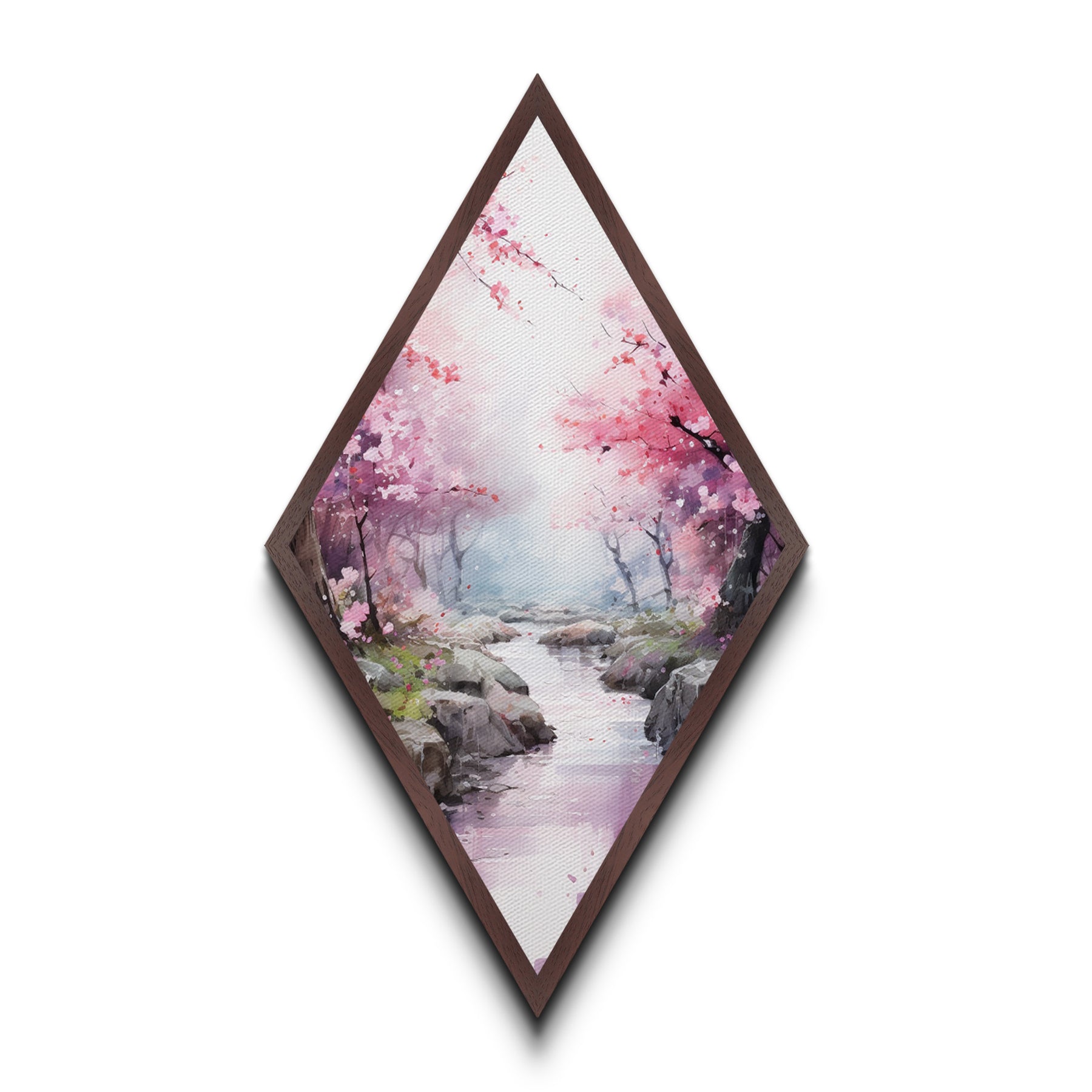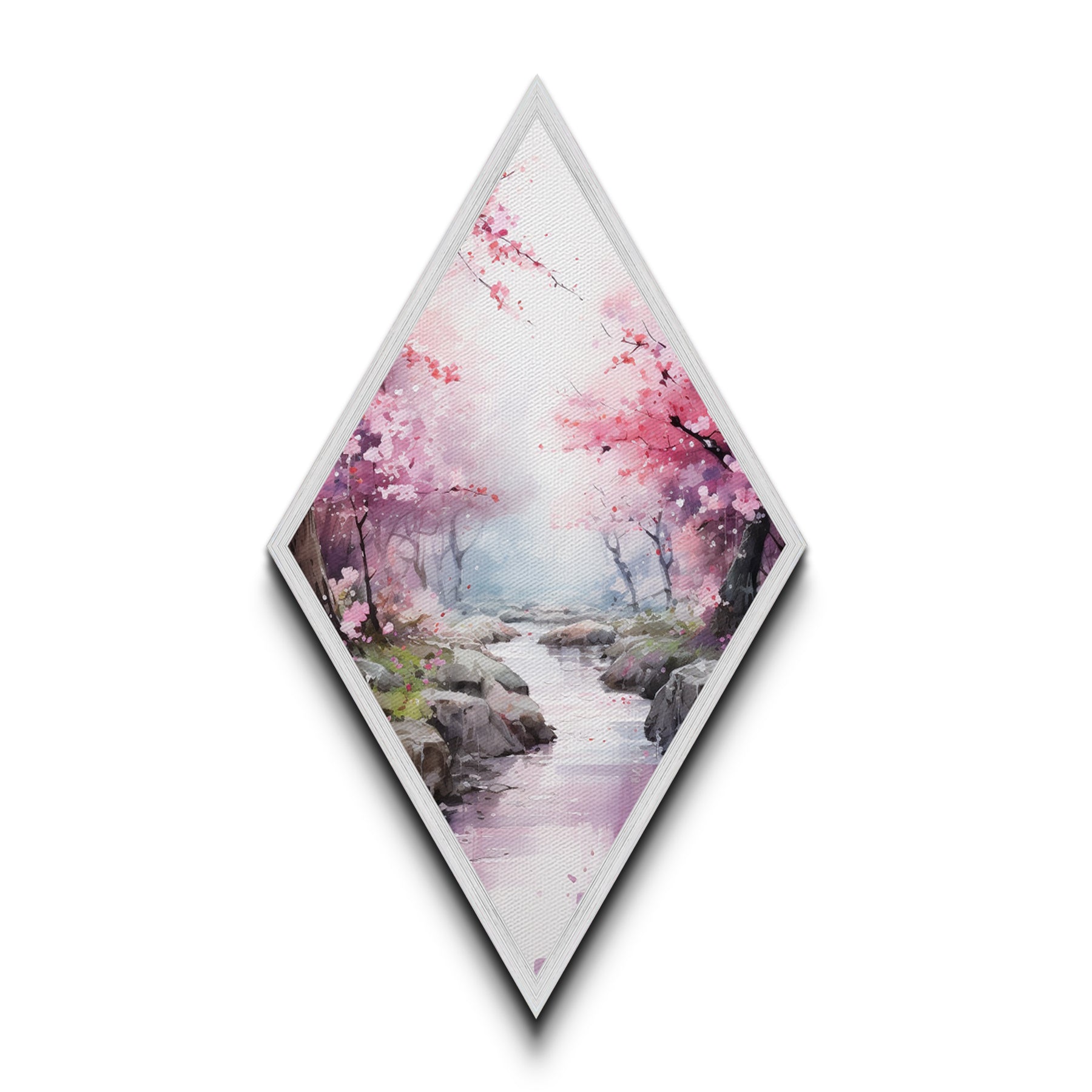 Cherry Blossoms In Spring, Diamond Shaped Canvas Embossed Wall Art, Canvas Texture Art, Japanese Inspired Wall Art, Statement Piece