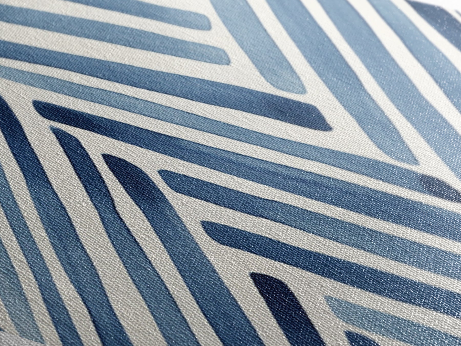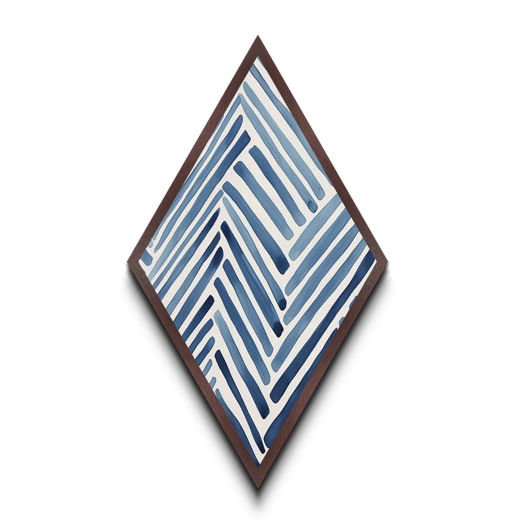 Coastal Stripe Pattern Diamond Shaped Navy Indigo Lines Canvas Embossed Print Modern Abstract Wall Art Nautical Geometric Decor