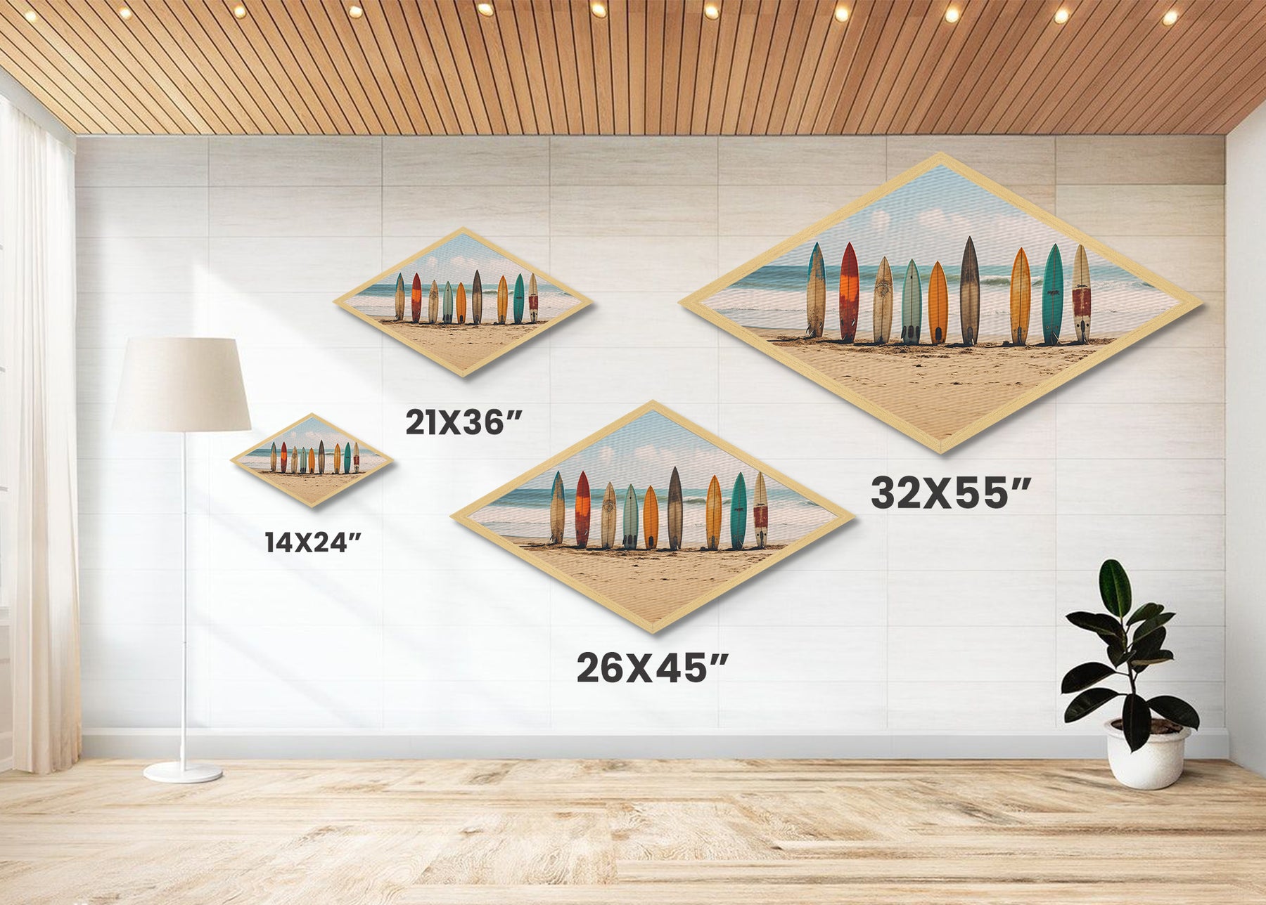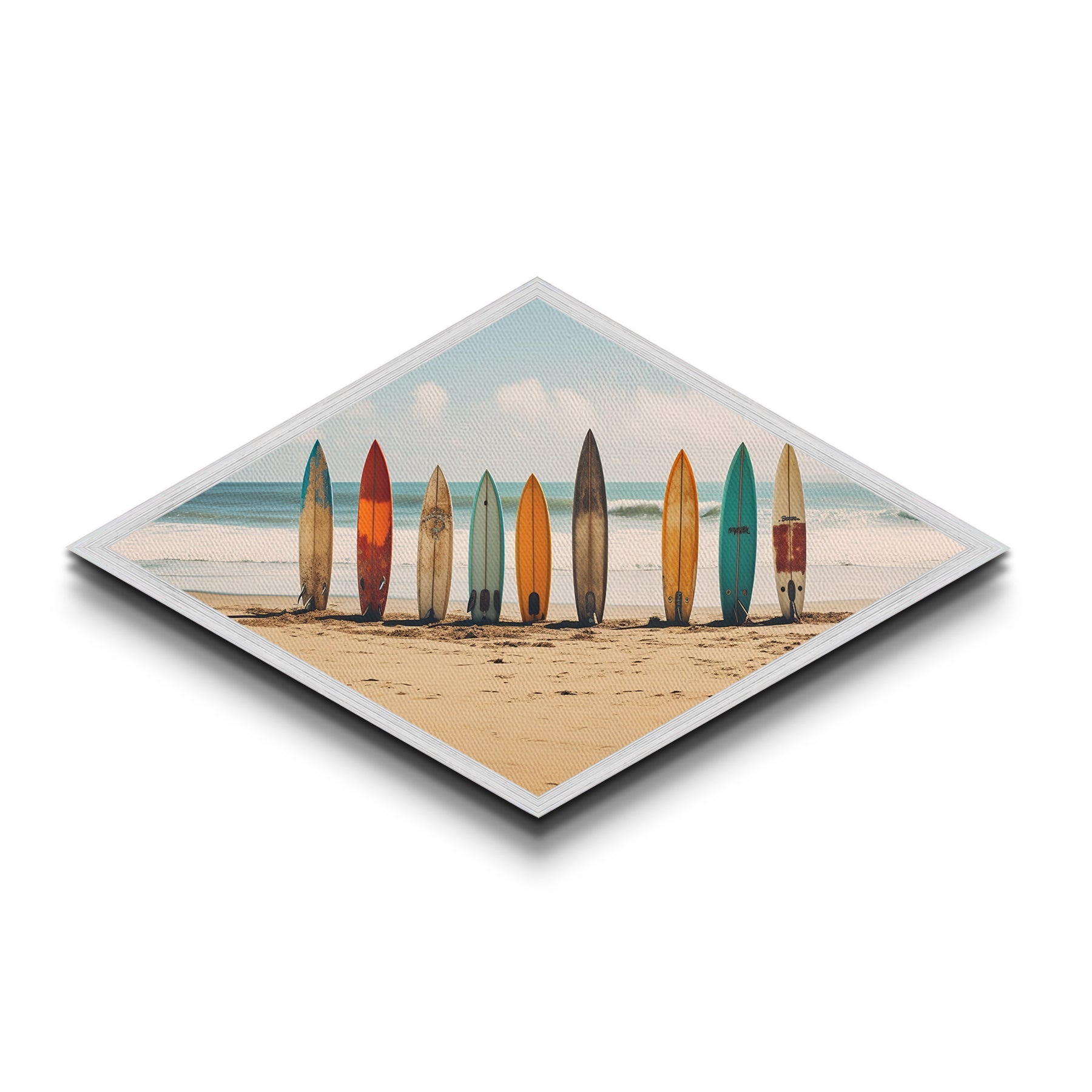 Coastal Surf Vibes Diamond Shaped Beach Canvas Art Print surfboards ocean retro seaside summer surf shack boho wall decor gift idea