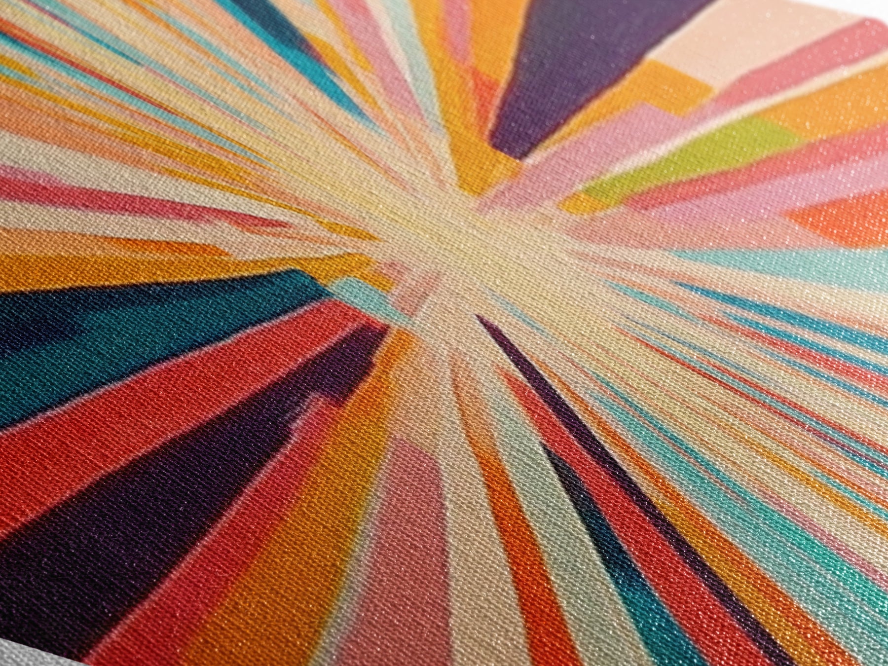 Color Burst Fusion Diamond Shaped Canvas Embossed Print energetic rainbow abstract painting wall art studio accent or creative gift idea