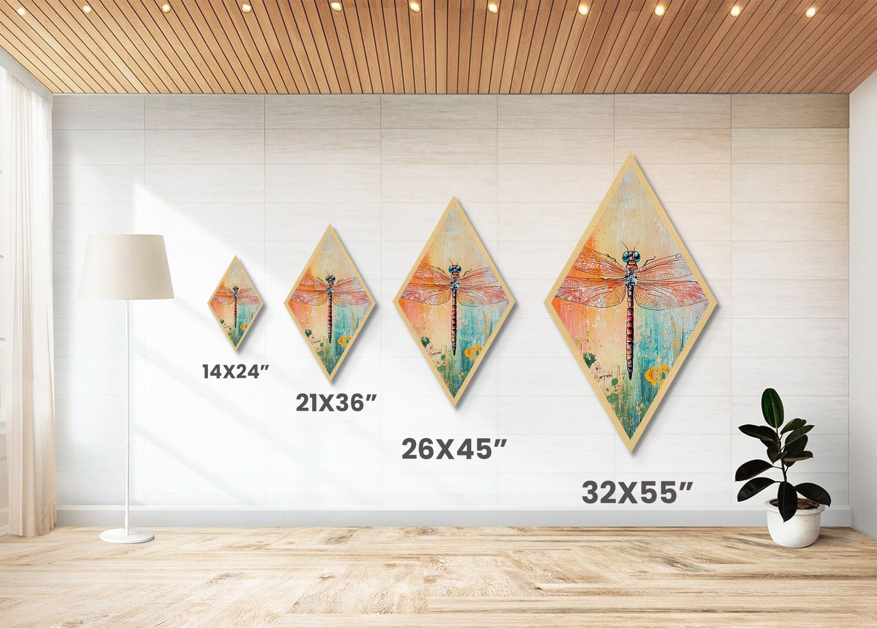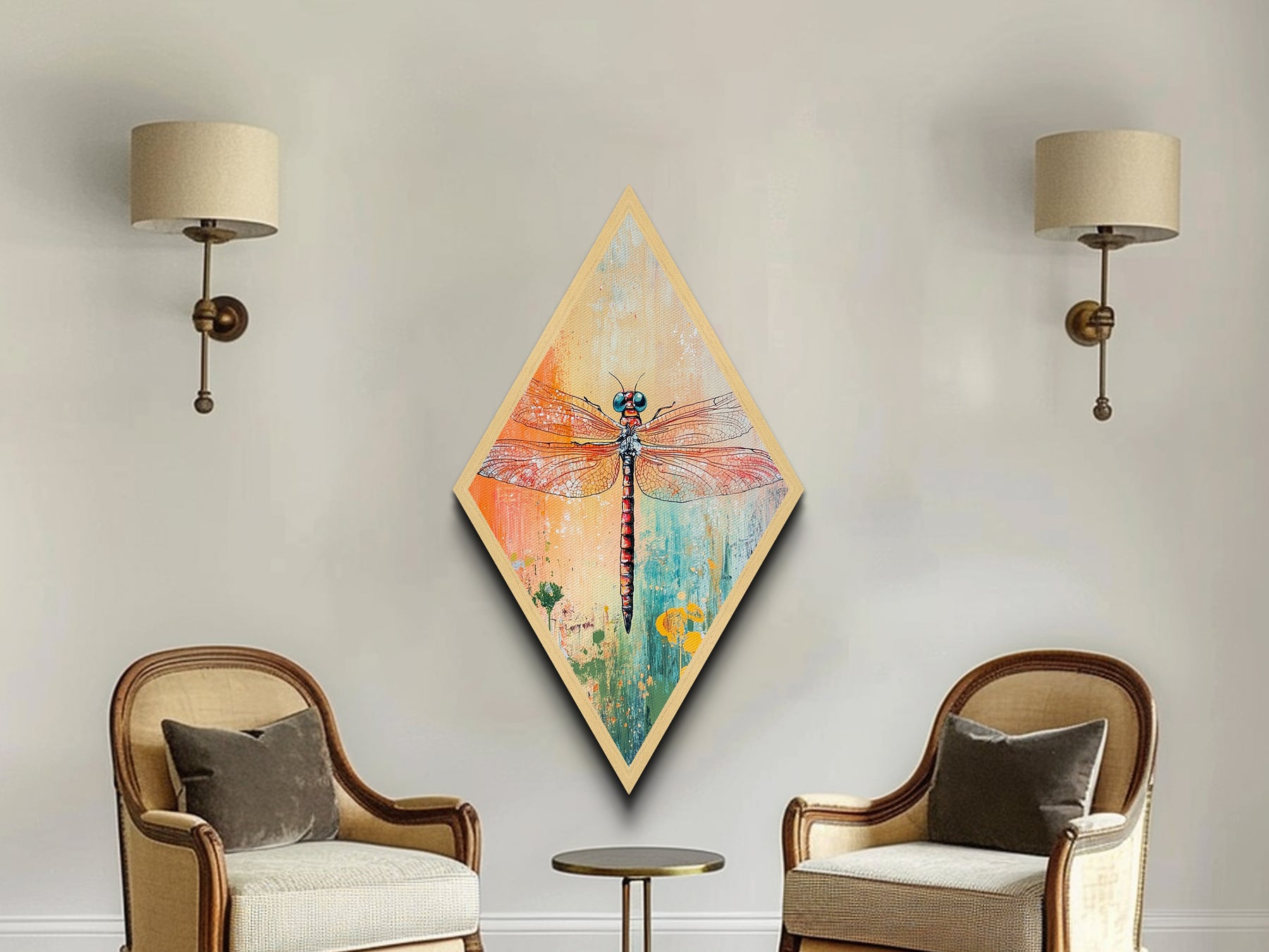 Colorful Dragonfly Closeup Diamond Shaped Canvas Textured Print, Boho Insect Wall Art, Nature Illustration, Bug Lover Gift Idea