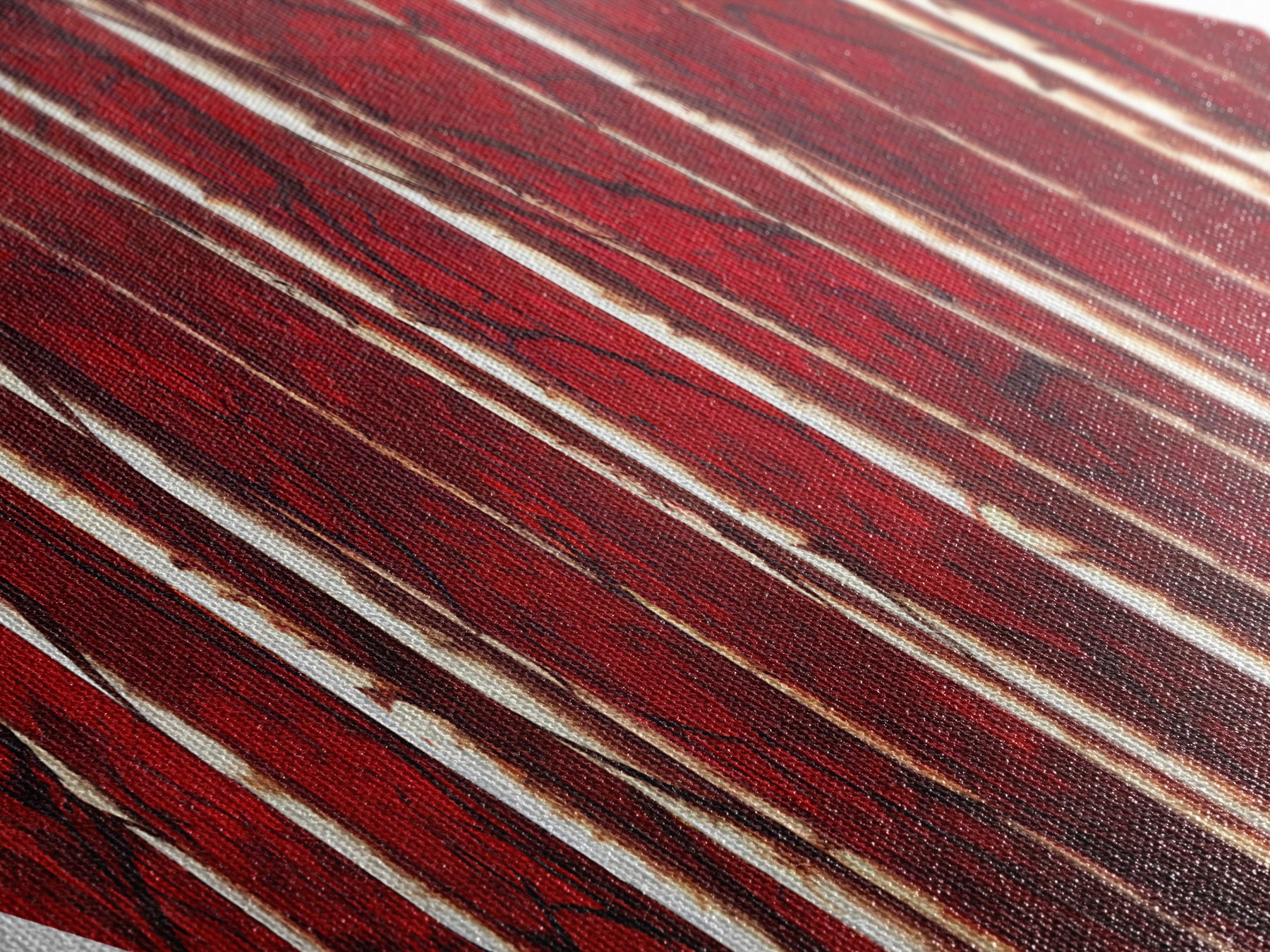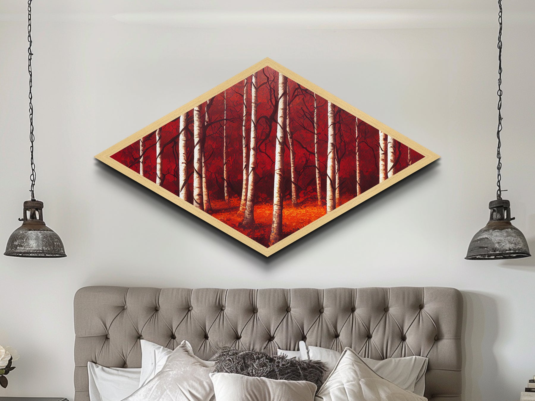 Crimson Birch Serenity Diamond Shaped Canvas Textured Print woodland red forest wall art nature painting rustic decor autumn tree scene