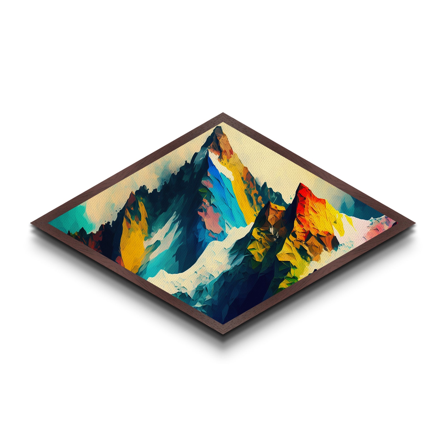 Crystalline Alps – Diamond Shaped Abstract Rainbow Peaks Canvas Textured Print with polygonal mountain terrain, bold geometric strokes