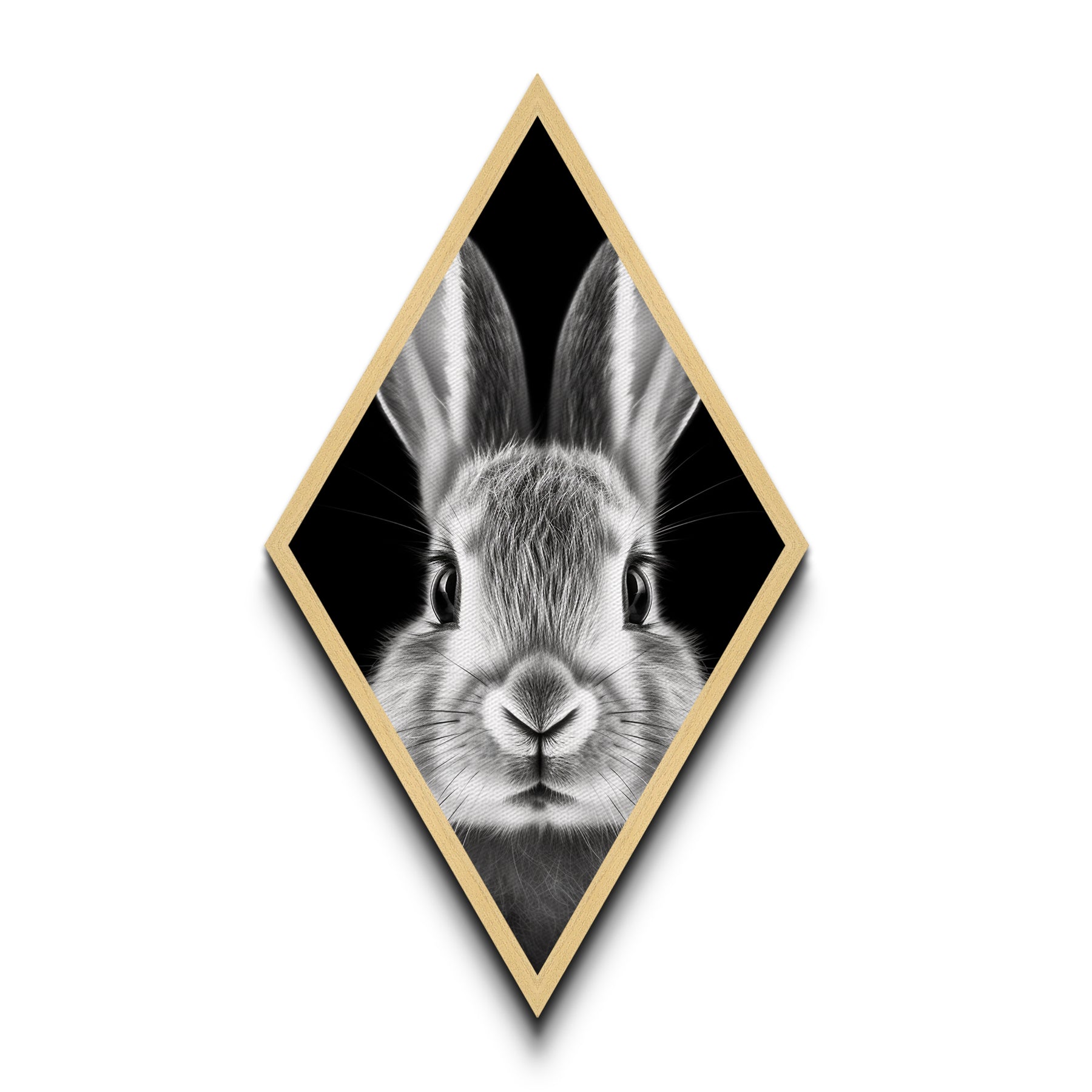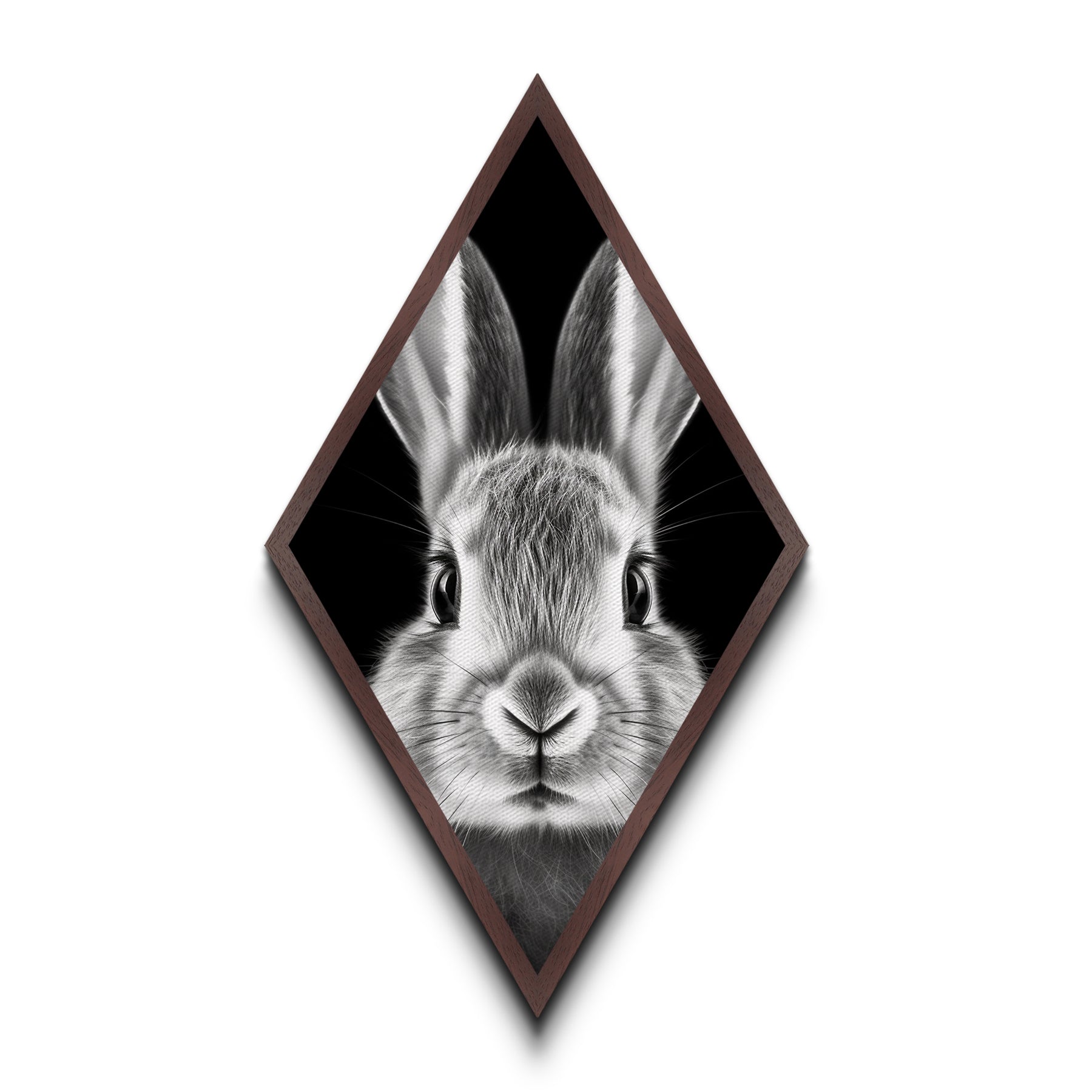 Curious Bunny Face Diamond Shaped Canvas Textured Print, Black and White Rabbit Animal Art, Minimalist Pet Lover Wall Decor
