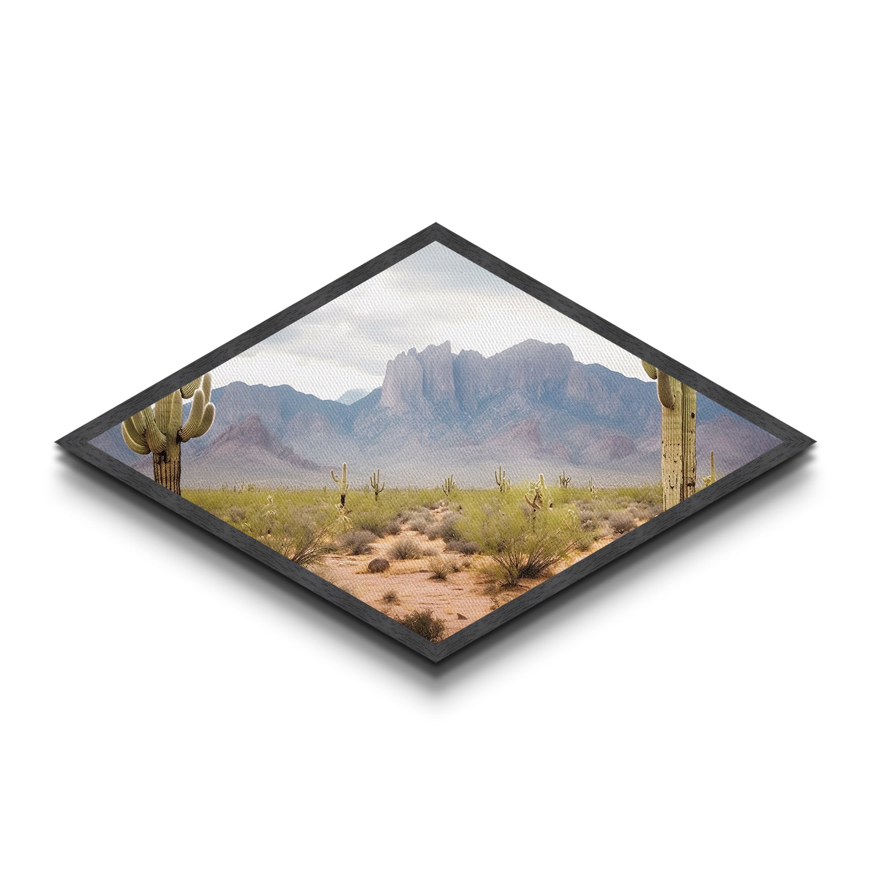 Desert Mountain Cactus View Diamond Shaped Canvas Textured Print southwestern desert landscape wall art rustic home decor gift
