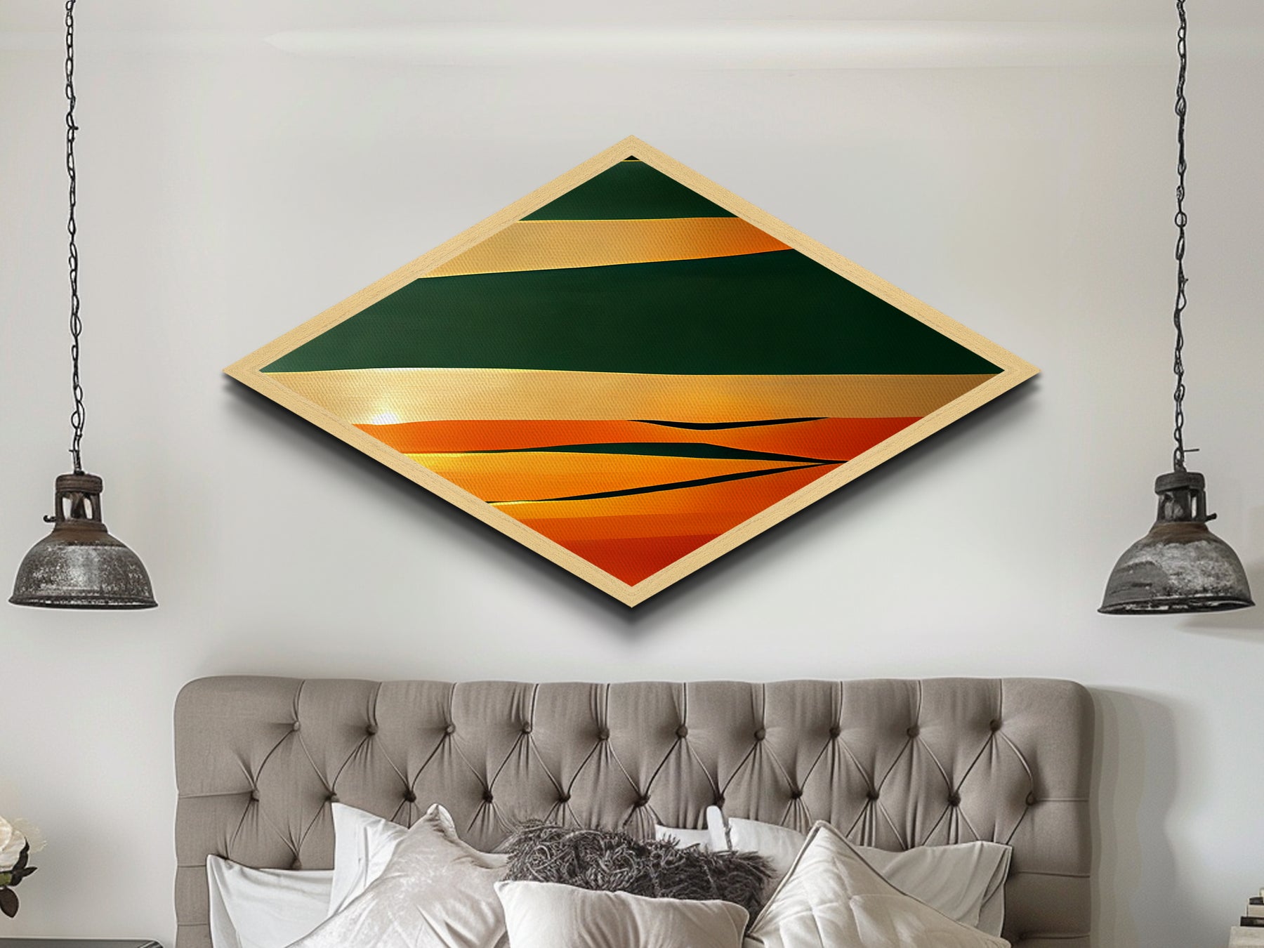 Diamond Shaped Desert Layers — Abstract Minimalist Landscape Canvas Art Print, Bold Sunset Palette Wall Decor, Modern Art Gift