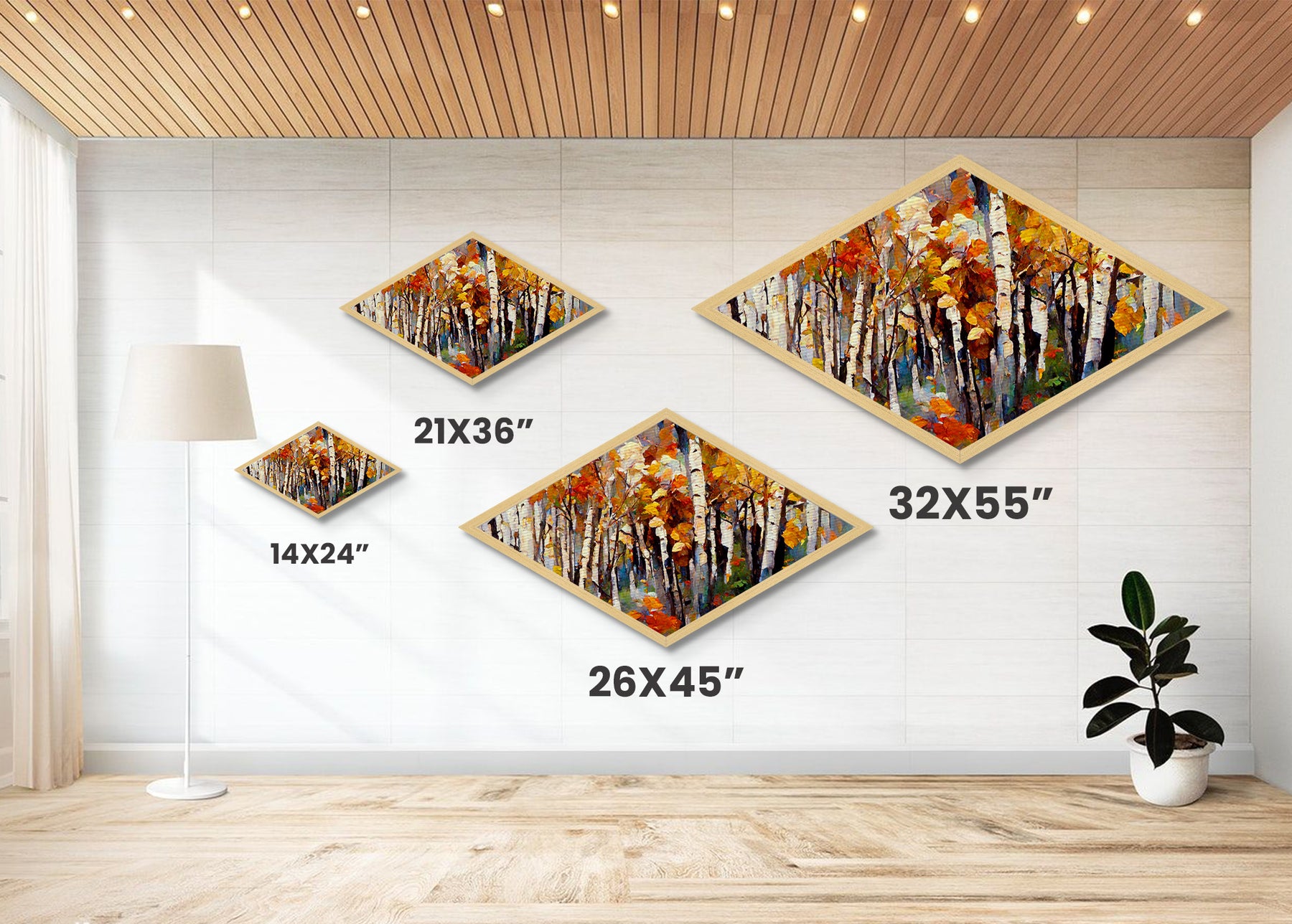 Diamond Shaped Large Birch Trees Canvas Print Boho Wall Decor Autumn Birch Forest Art Silver Birch Trees Wall Decor Wall Art Fall