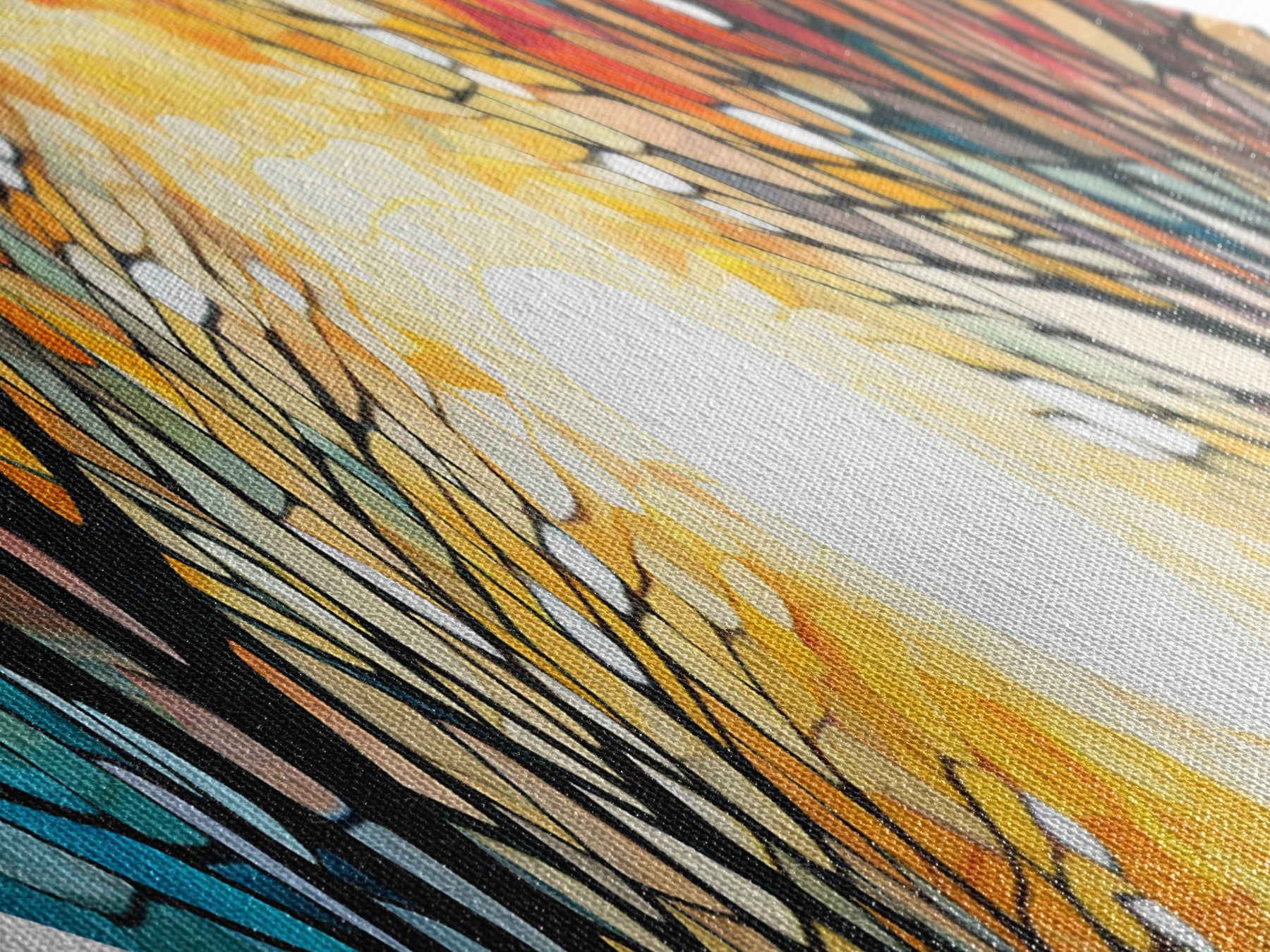 Diamond Shaped Sunset Tree Light Canvas Embossed Print Autumn Forest Stained Glass Style Landscape Wall Art Golden Hour Illumination