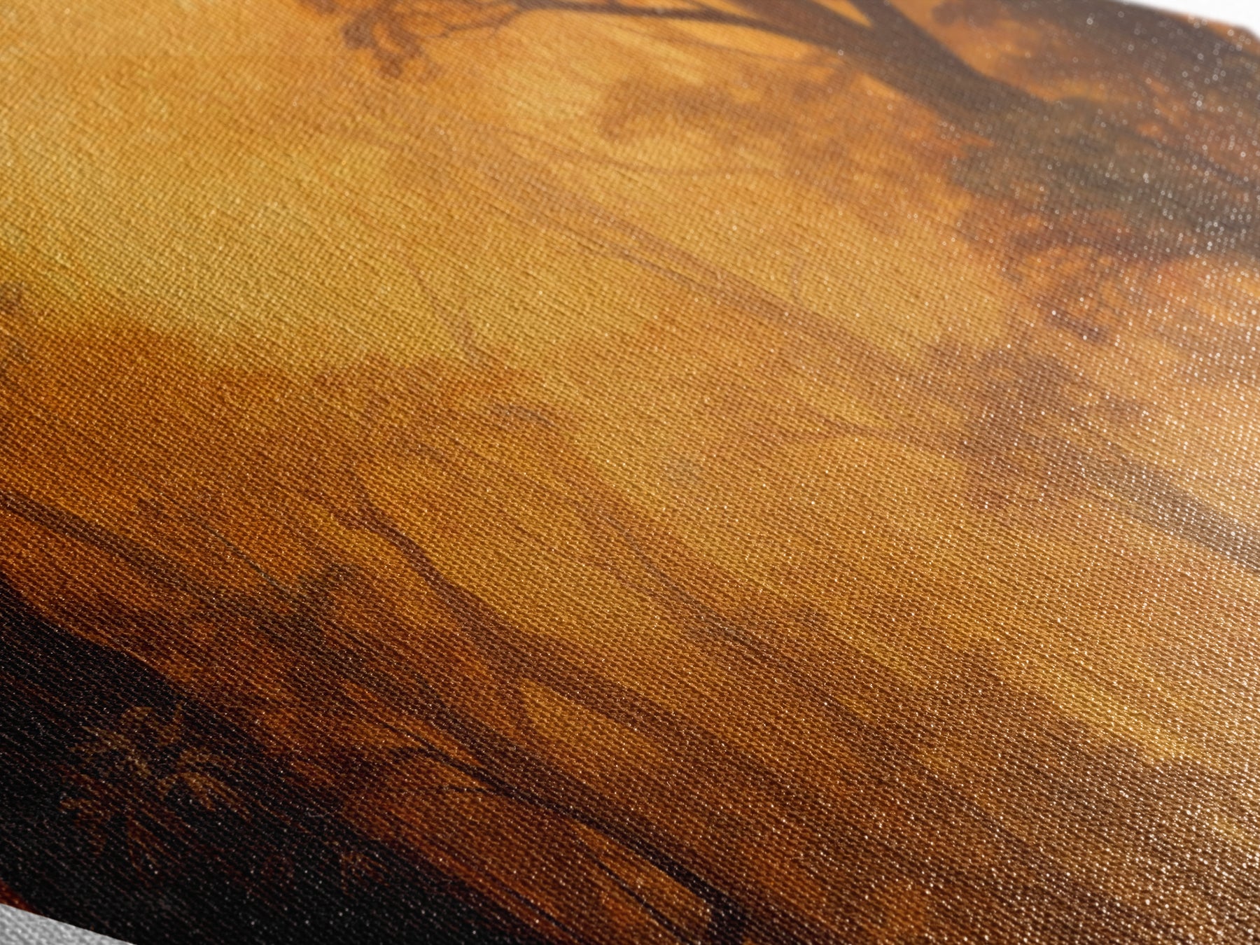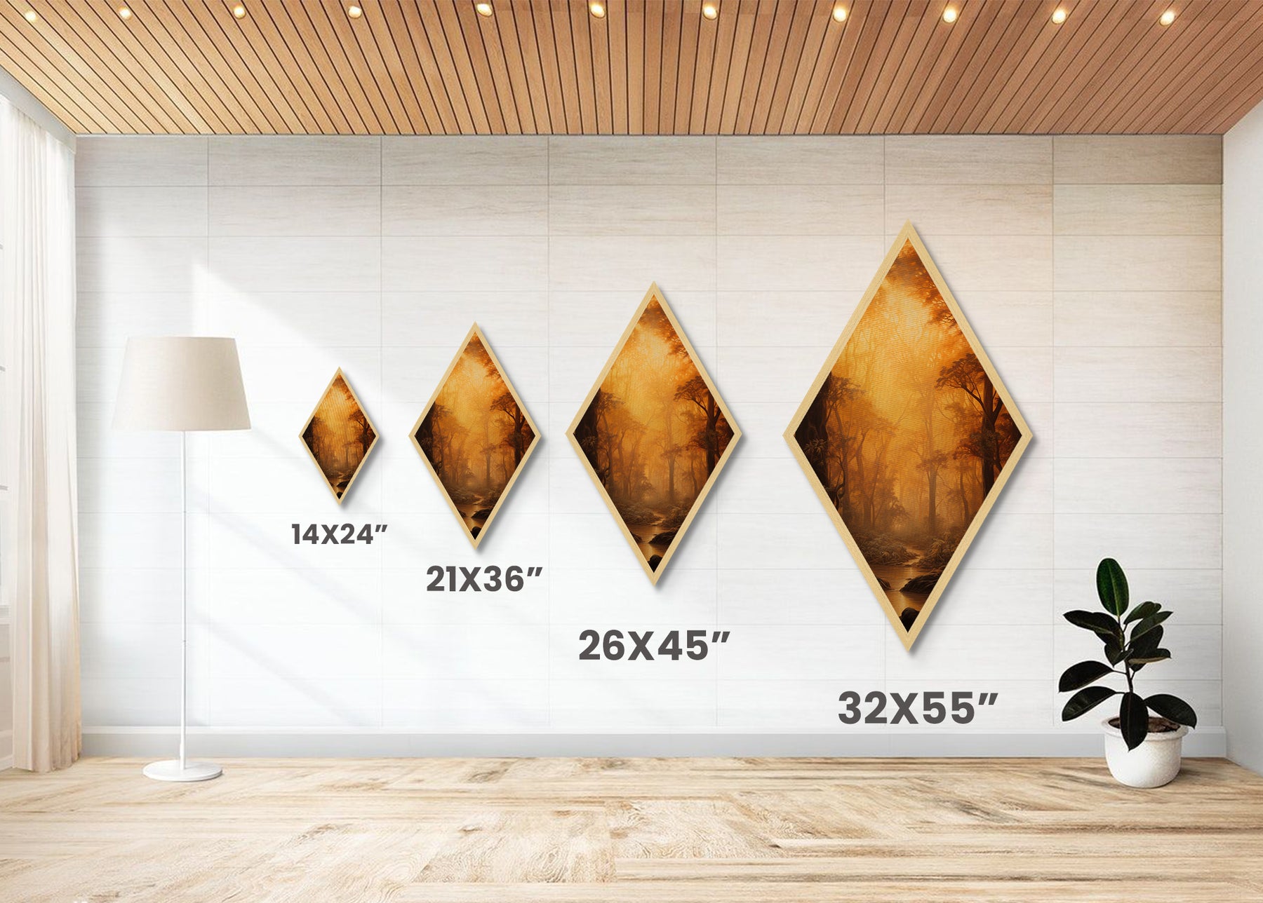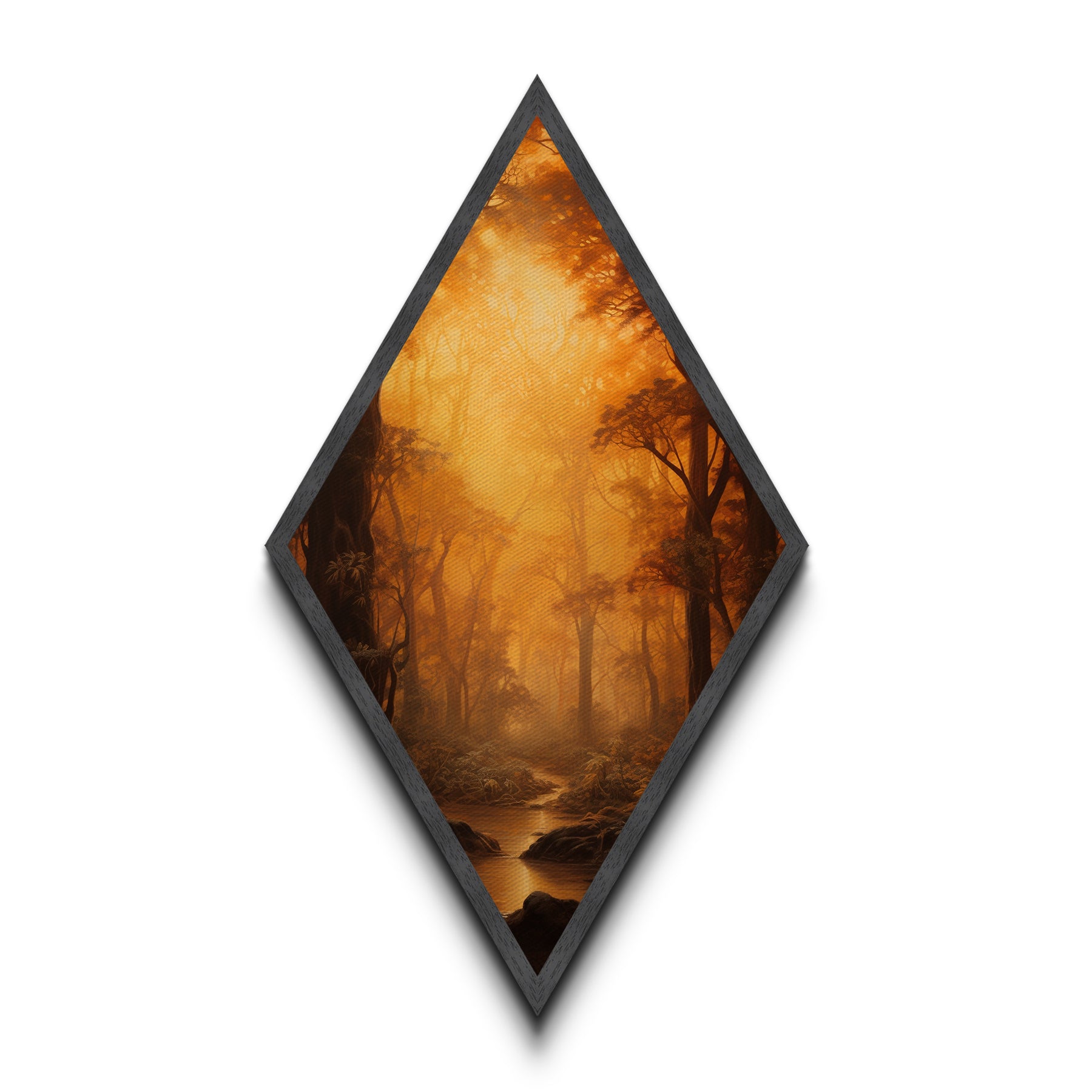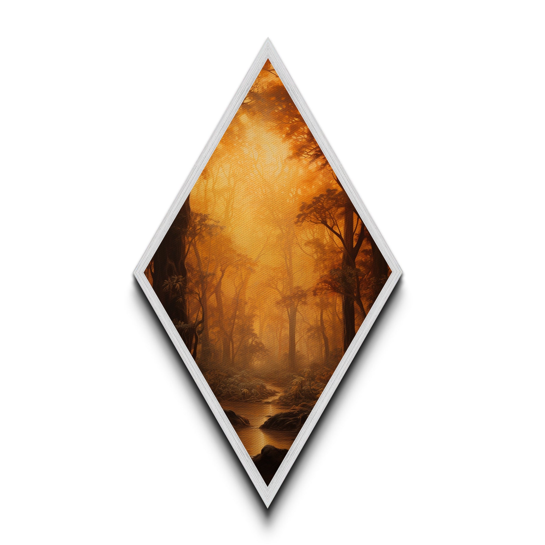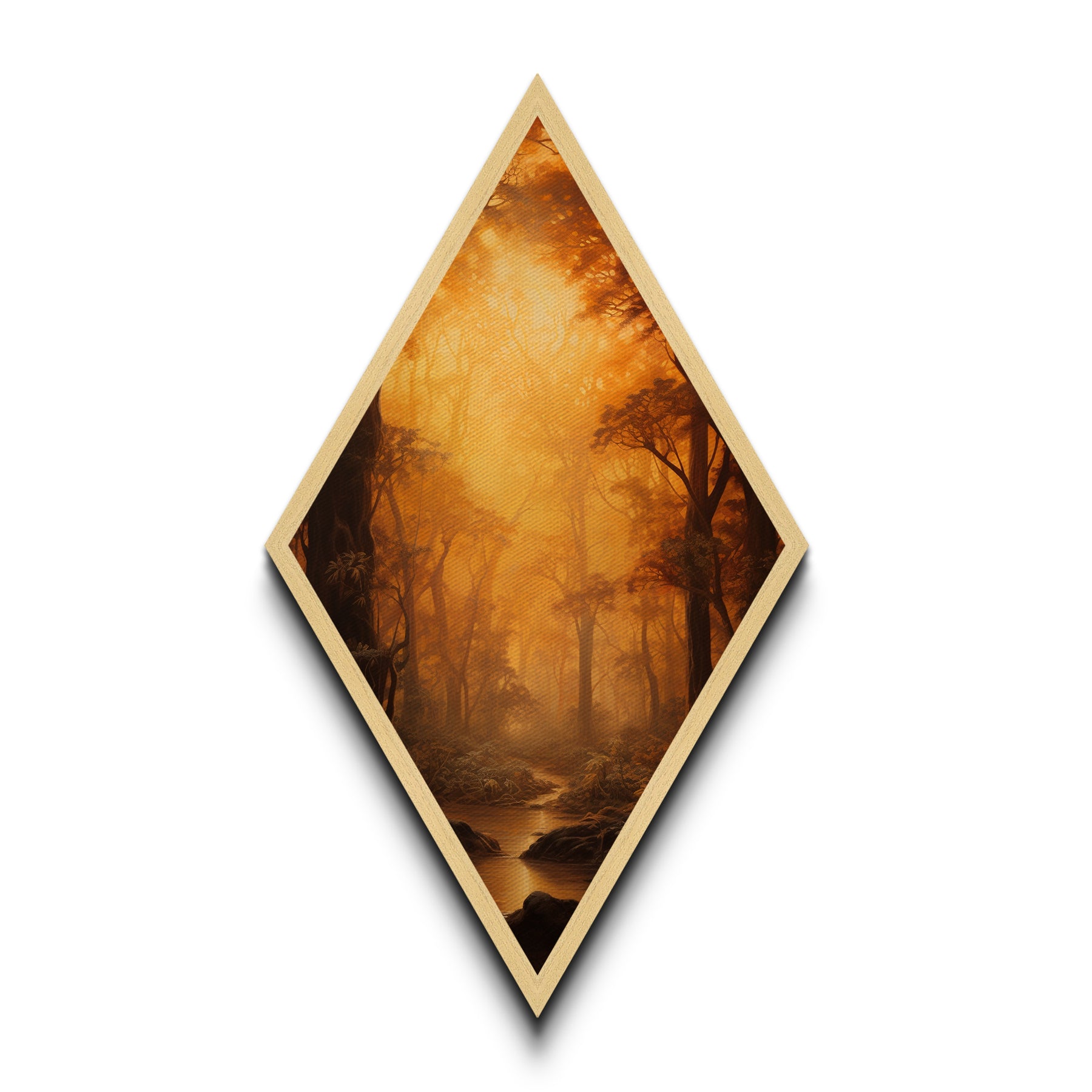 Fall In The Forest, Canvas Textured Print, Diamond Shaped Landscape Painting, Retro Home Decor, Nature Painting